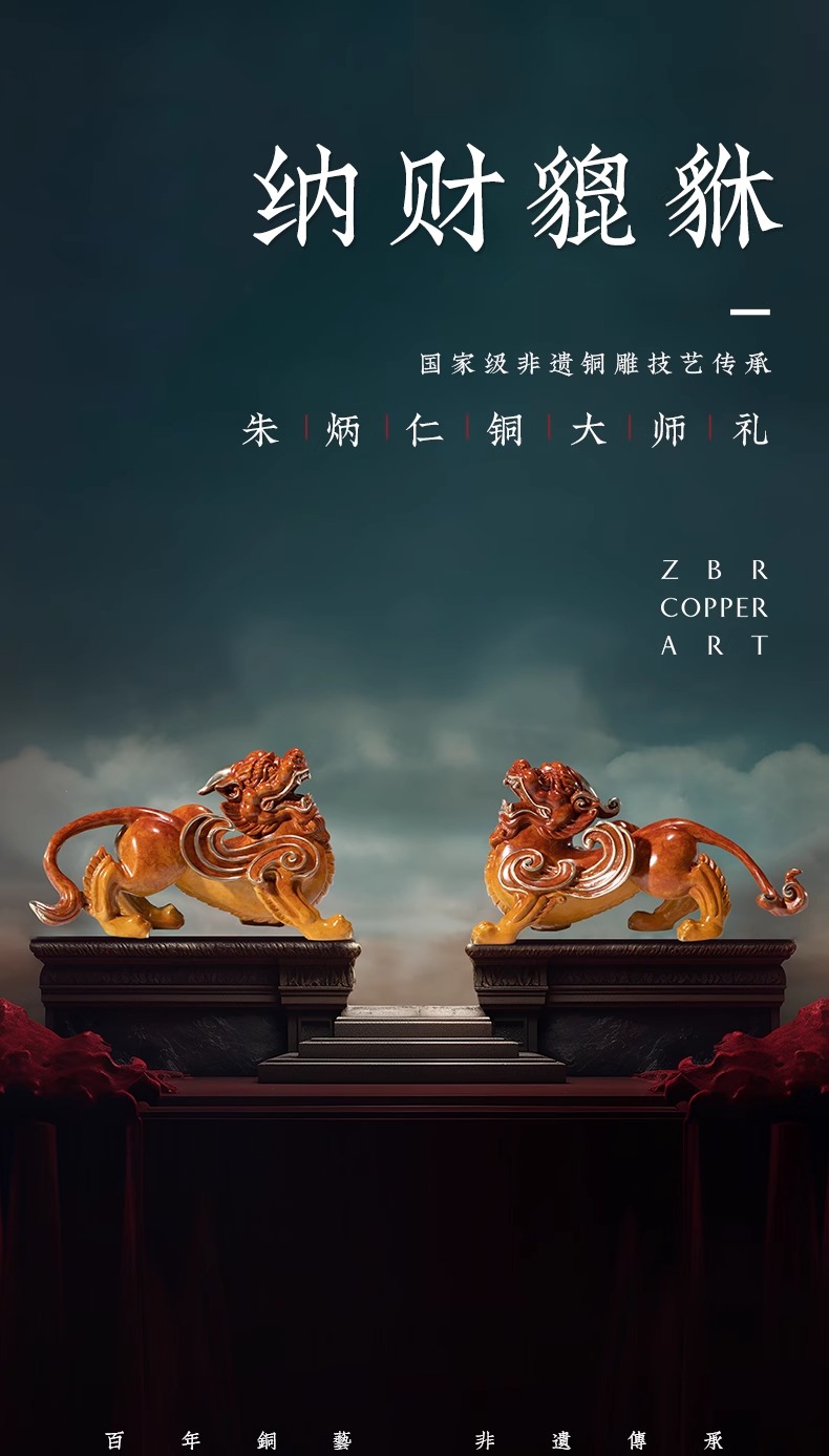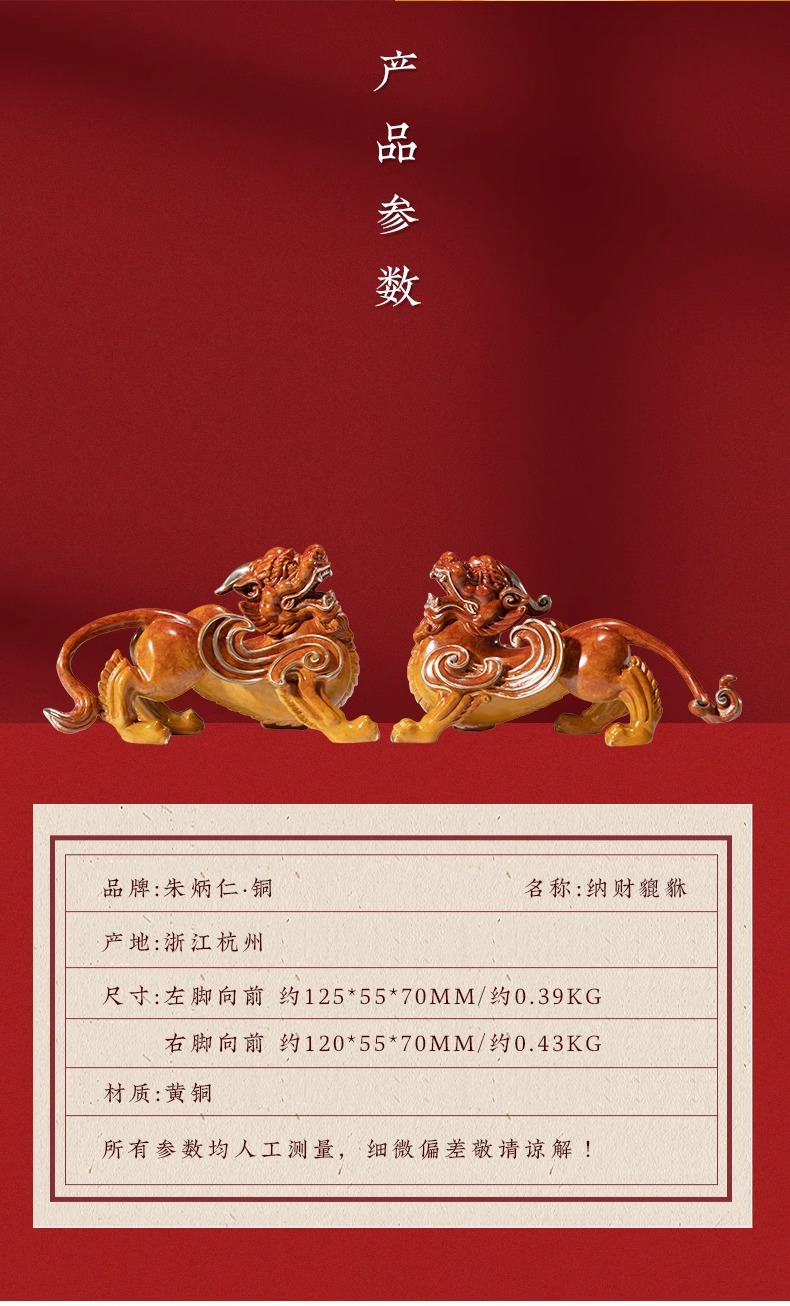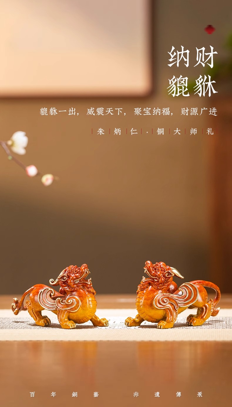 <有书独家>朱炳仁铜 纳财貔貅摆件装饰工艺品礼品家居招财中式铜貔貅