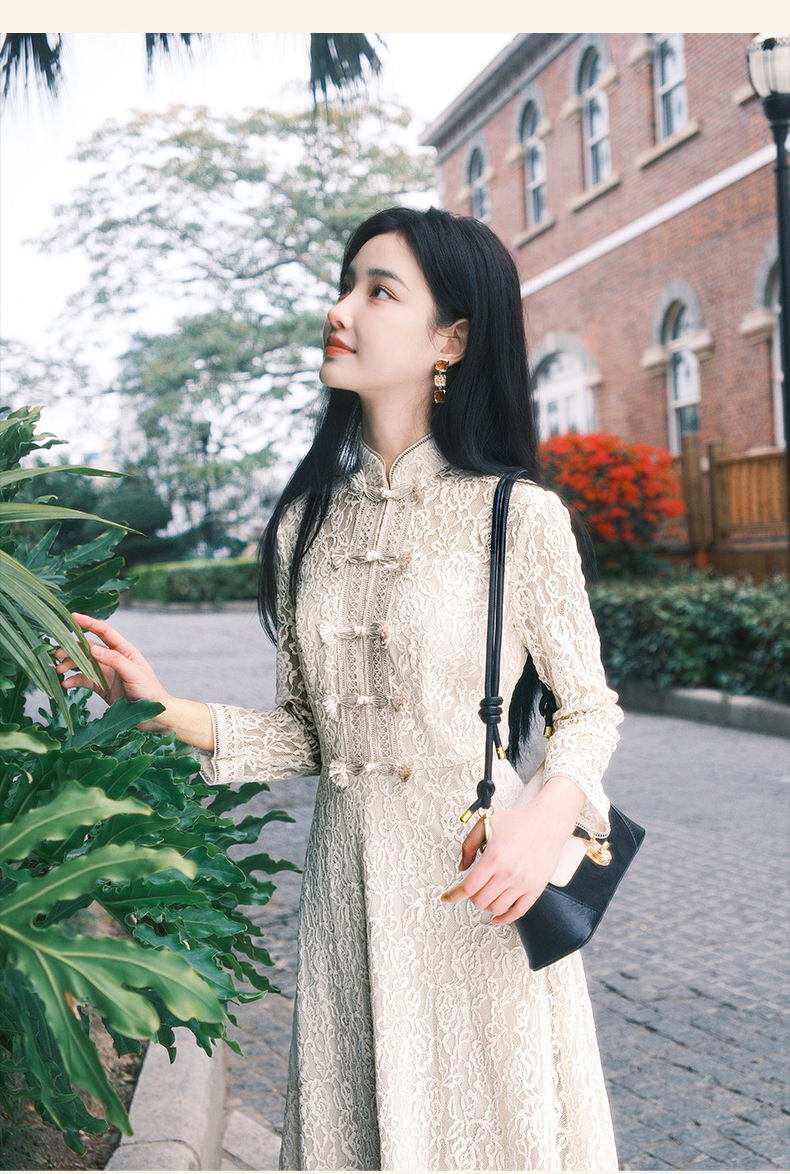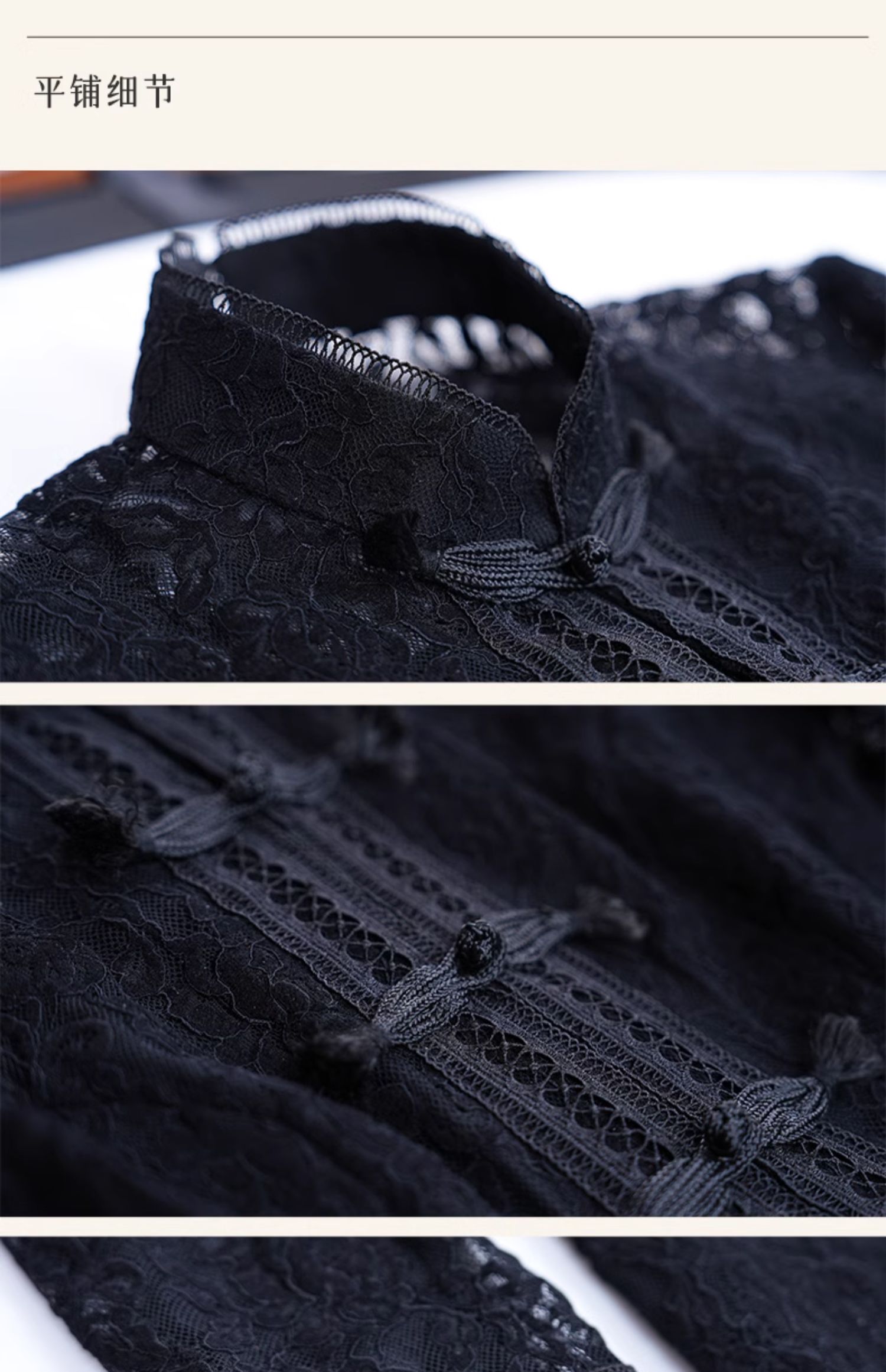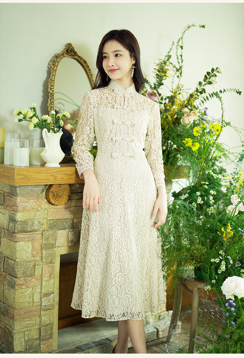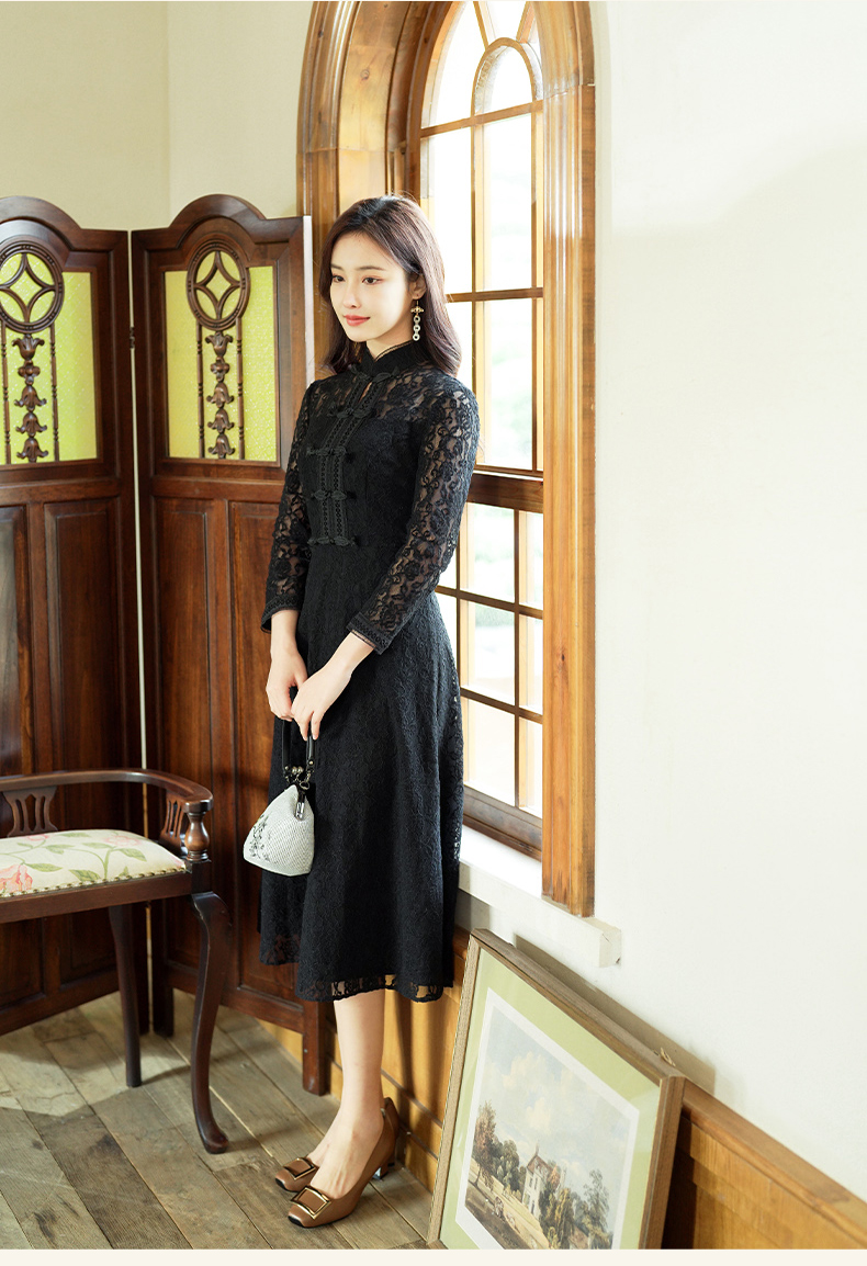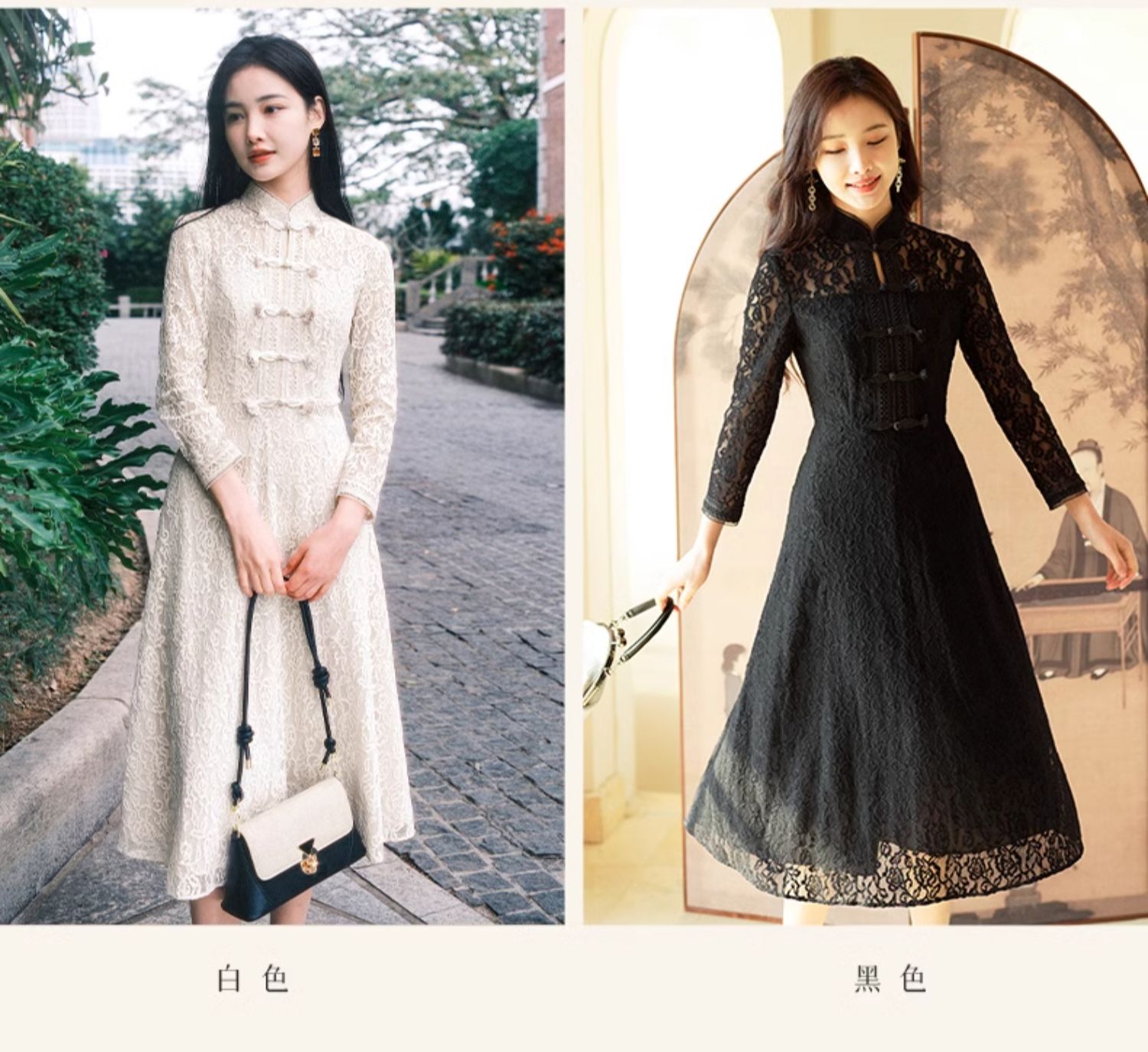 温柔暴击!!进口绒蕾丝中式连衣裙