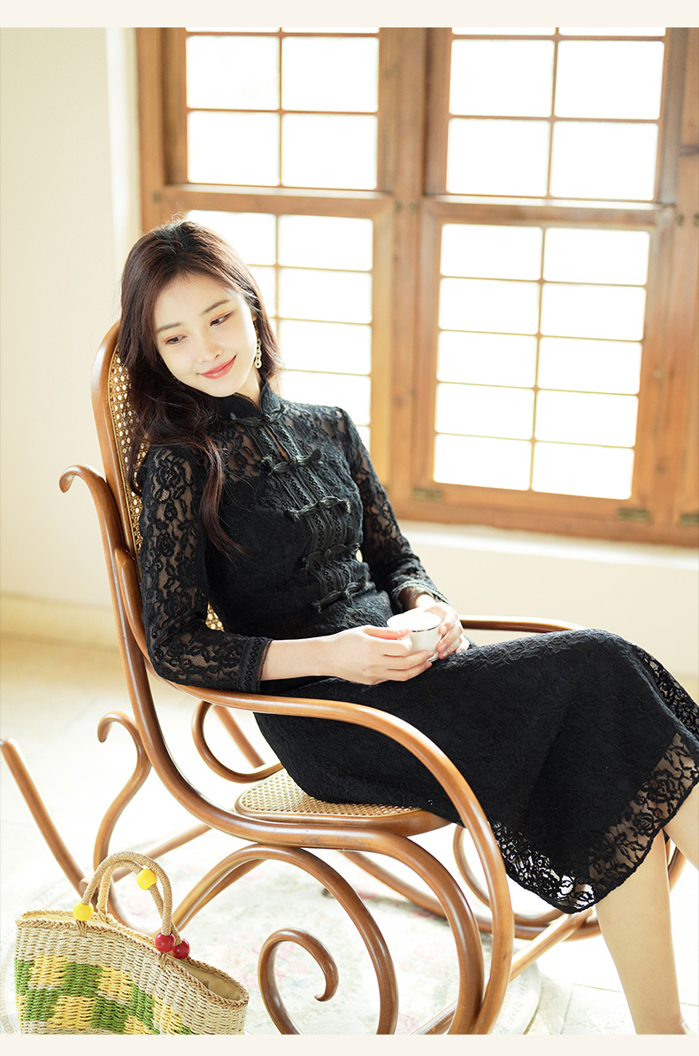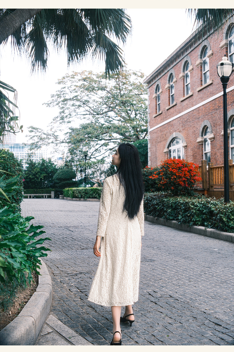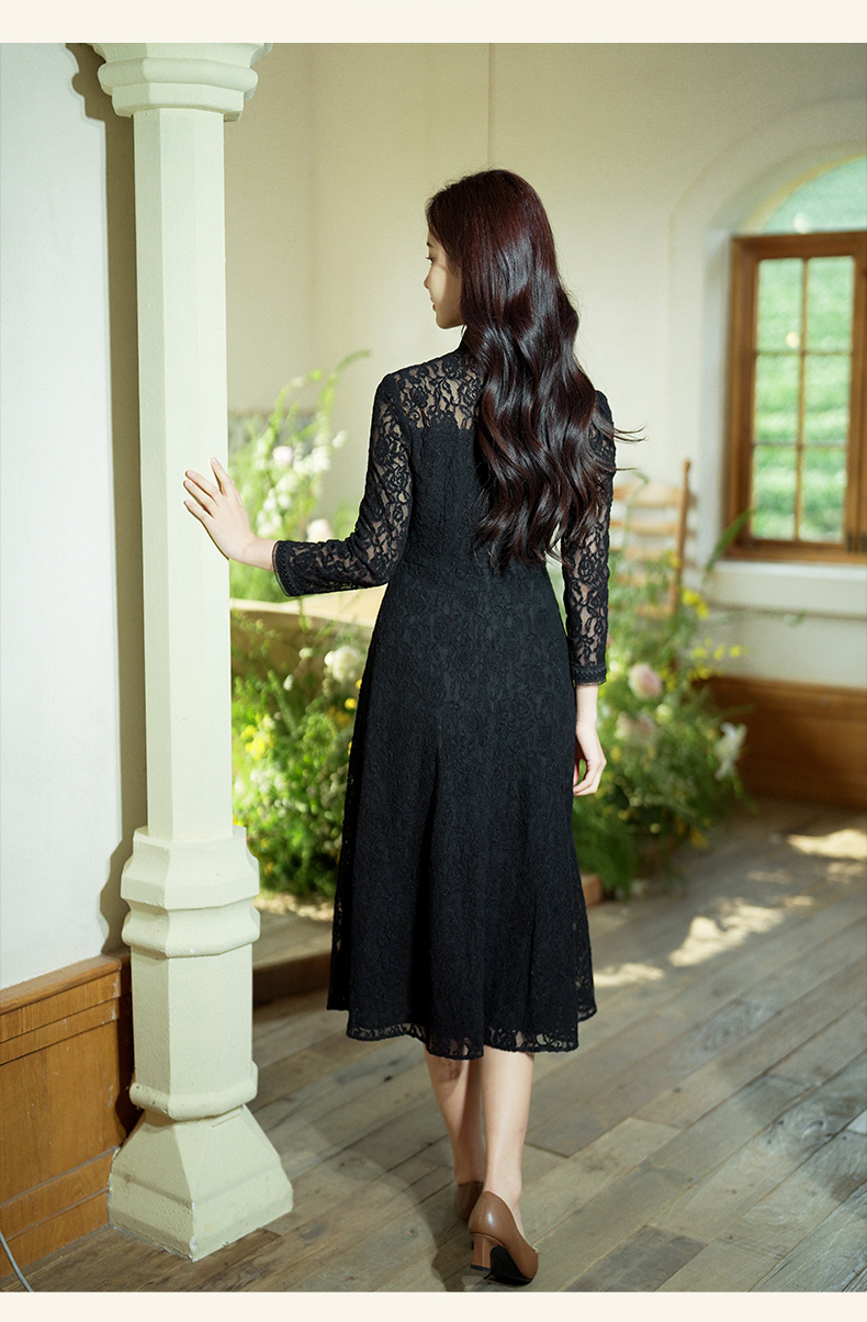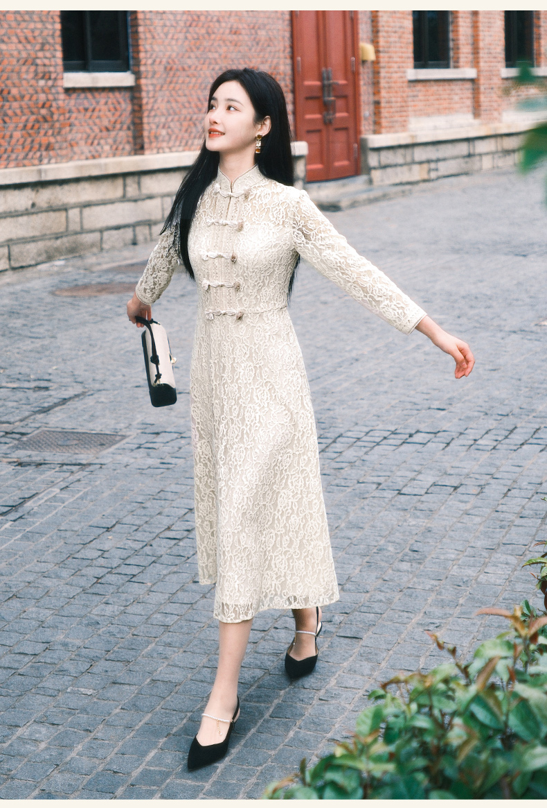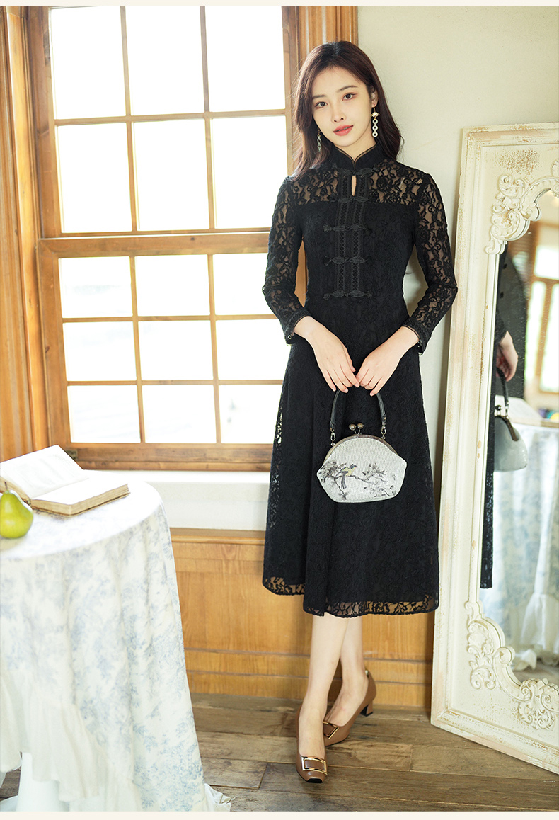 温柔暴击!!进口绒蕾丝中式连衣裙