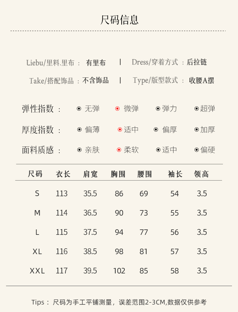 💠腰部微收,下摆是A字大摆,轻松遮肉柔美洒脱之气韵倾刻显现,拉长比例更显瘦显高。