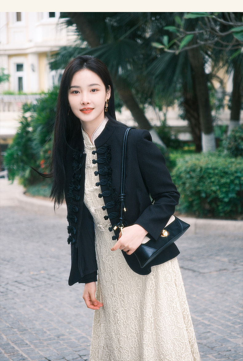 💠前胸五颗装饰盘扣更显精致,增添一抹东方韵味,属于悠远东方文化的时尚便呈现在眼前。