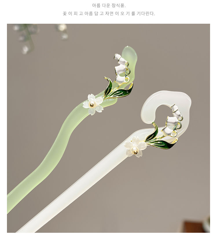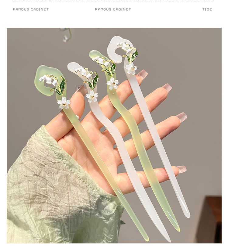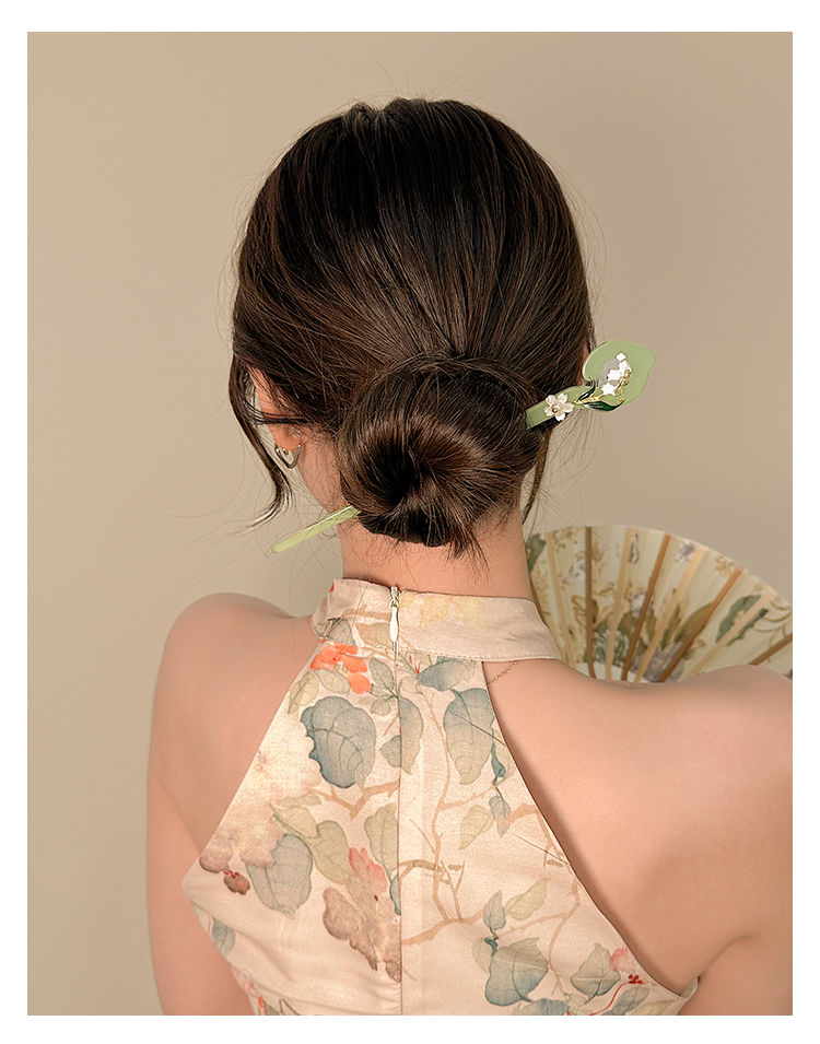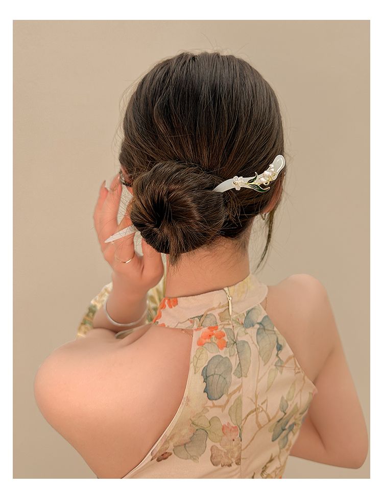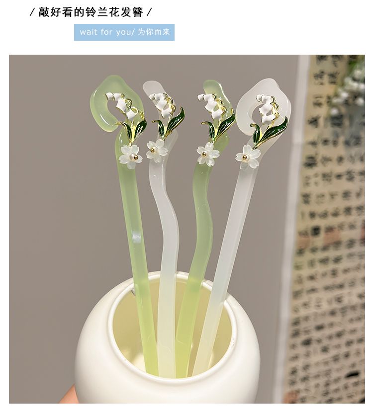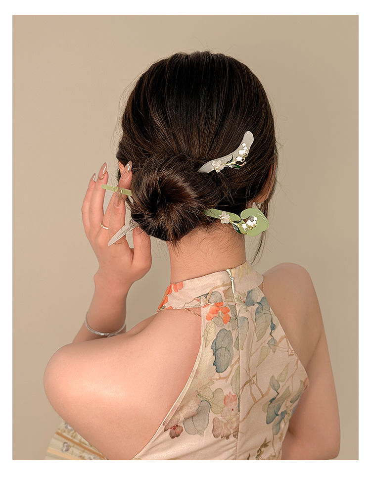 【2件套】仙铃兰花发簪女夏后脑勺盘发簪子古风配旗袍汉服发钗子头饰简约