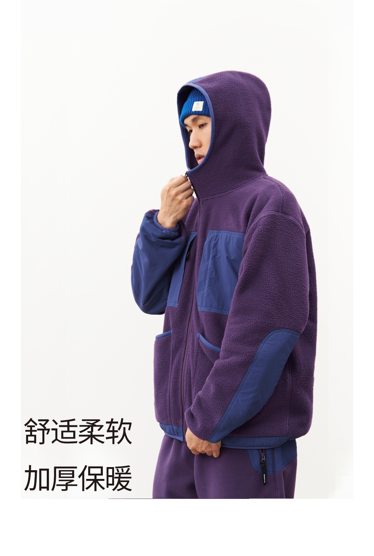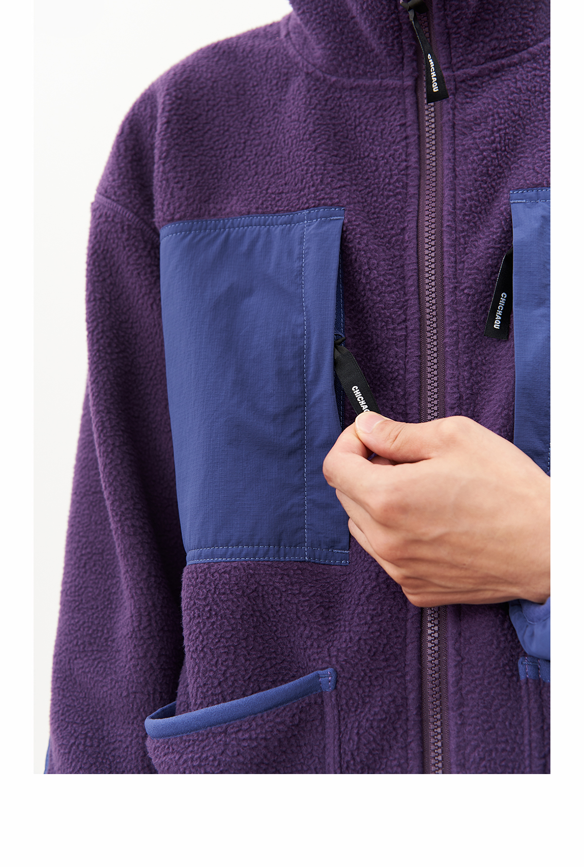 吃茶去chichaqu24秋冬抓绒摇粒绒带帽外套户外保暖加厚复古山系