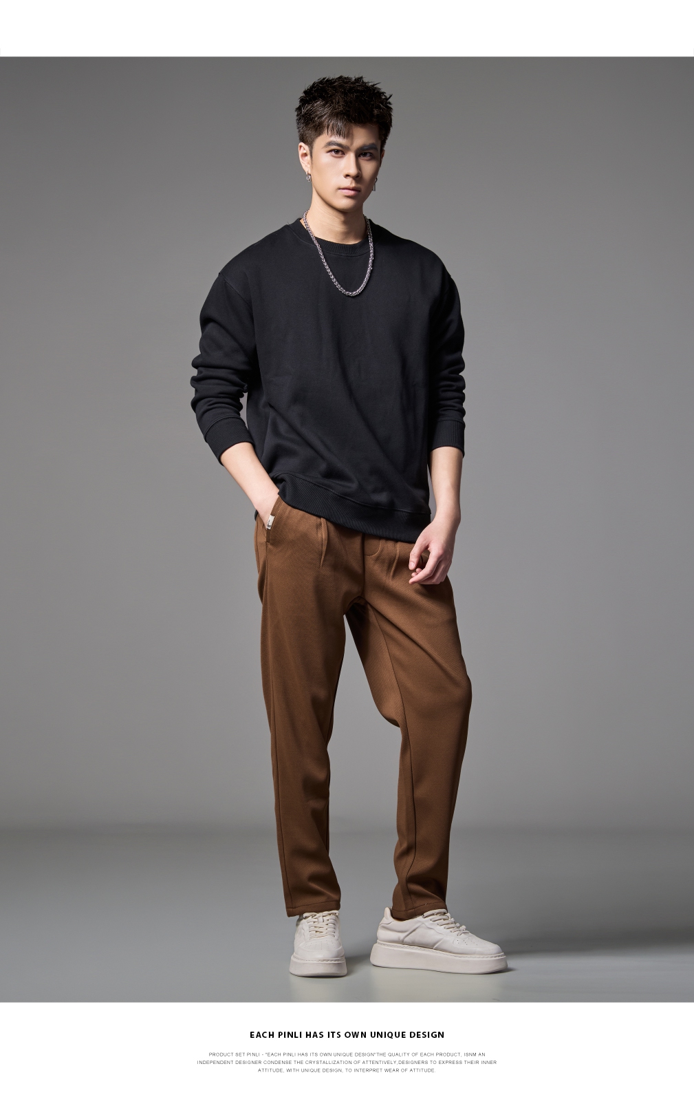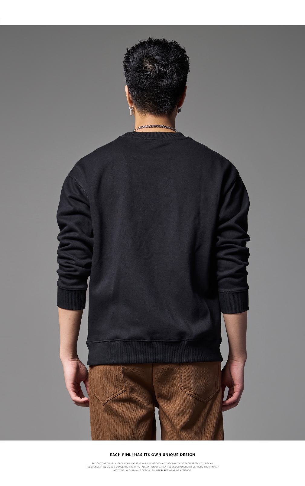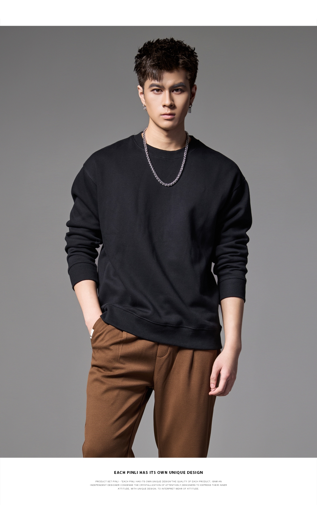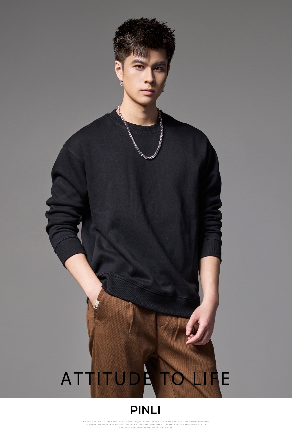 PINLI品立秋装新款纯色套头长袖卫衣男士宽松百搭休闲上衣潮GD223309324