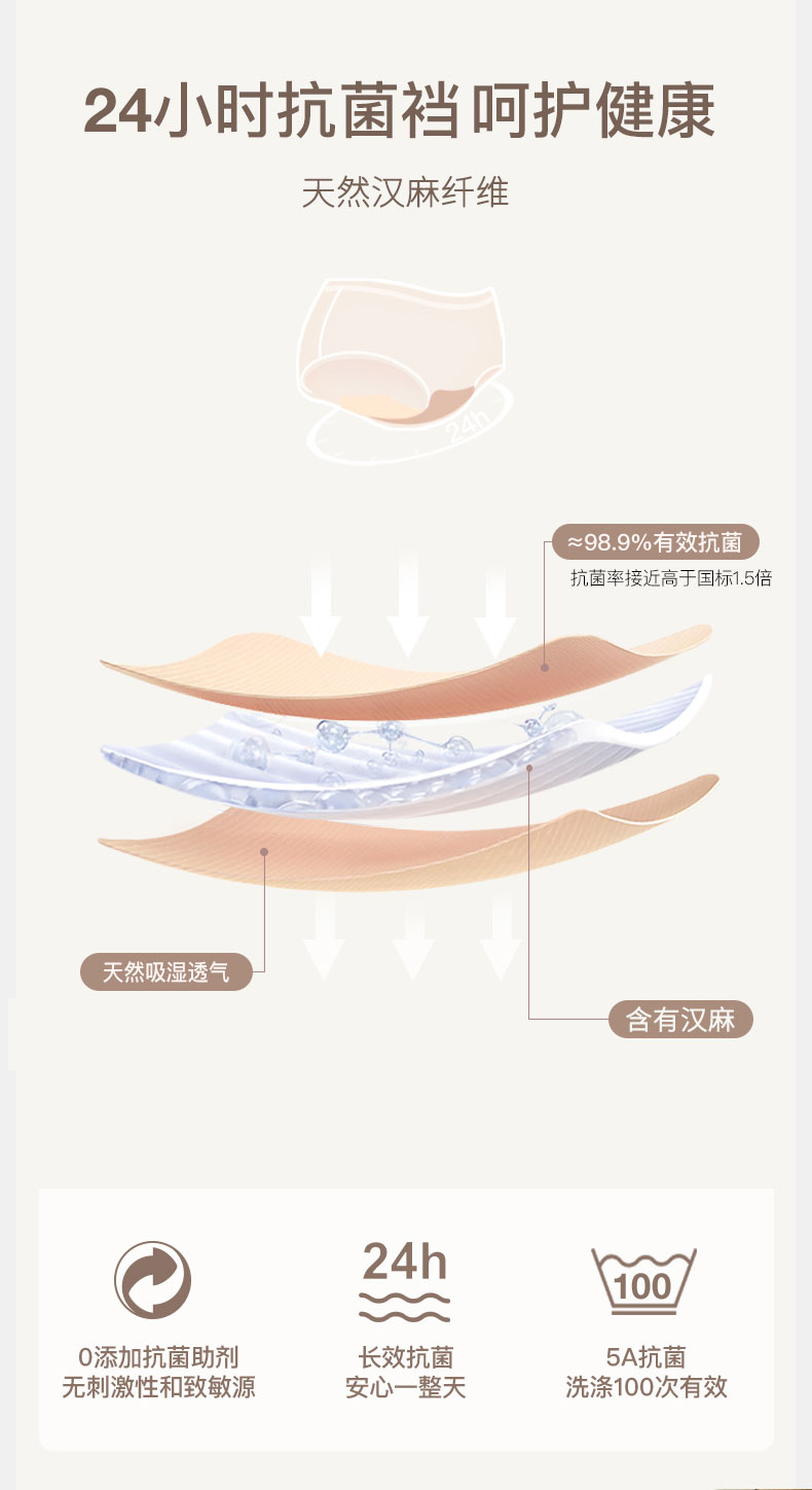 限时特惠6条【85-135斤】Basiclive 汉麻科技女款轻薄爽滑内裤