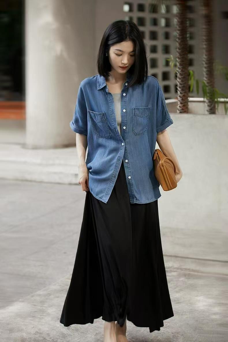 亲肤吸汗不粘身,走路带风的感觉,包容各种身型,百搭显瘦显高,英国高士线+不卷边工艺。环保水洗,裸感丝滑,垂坠感强,巨软巨舒服~
