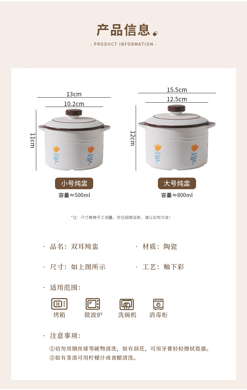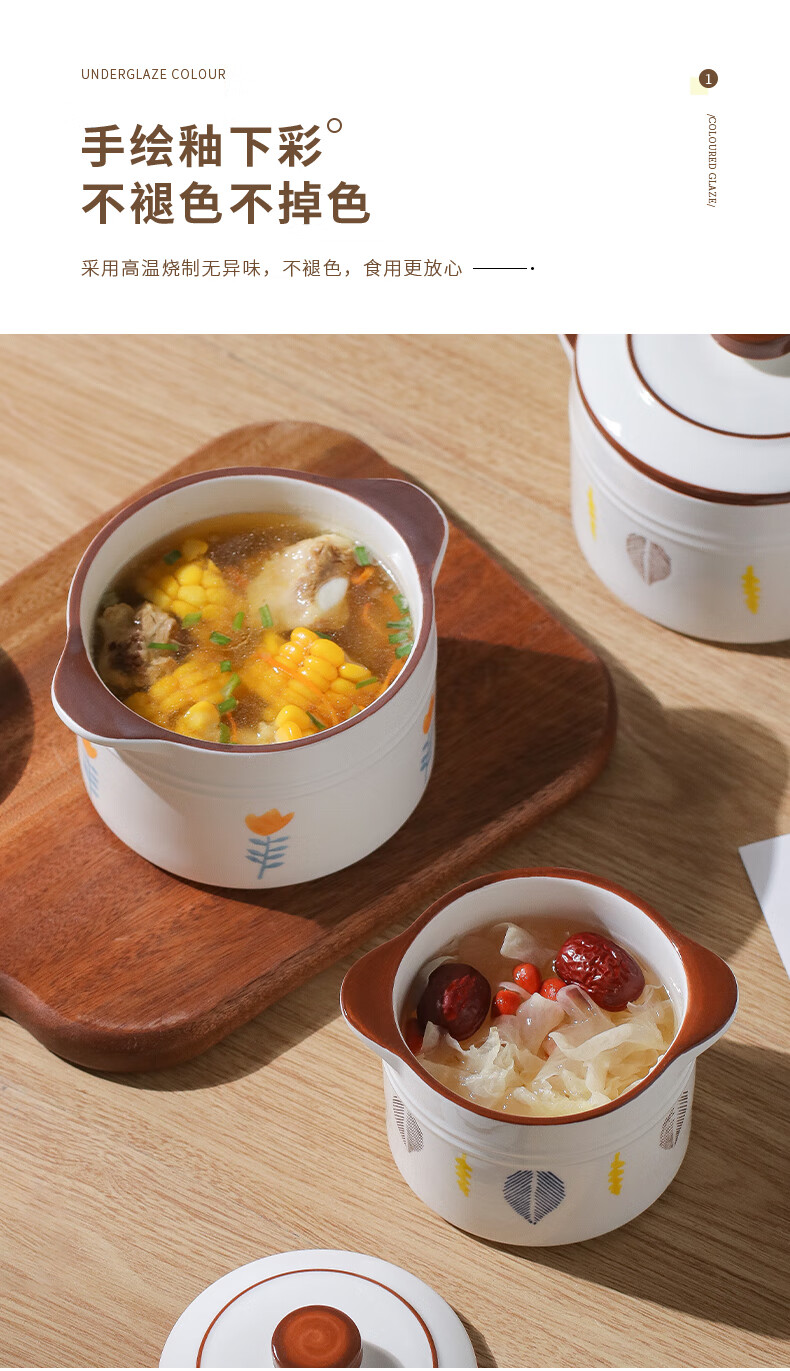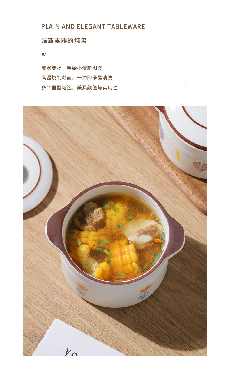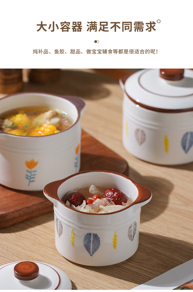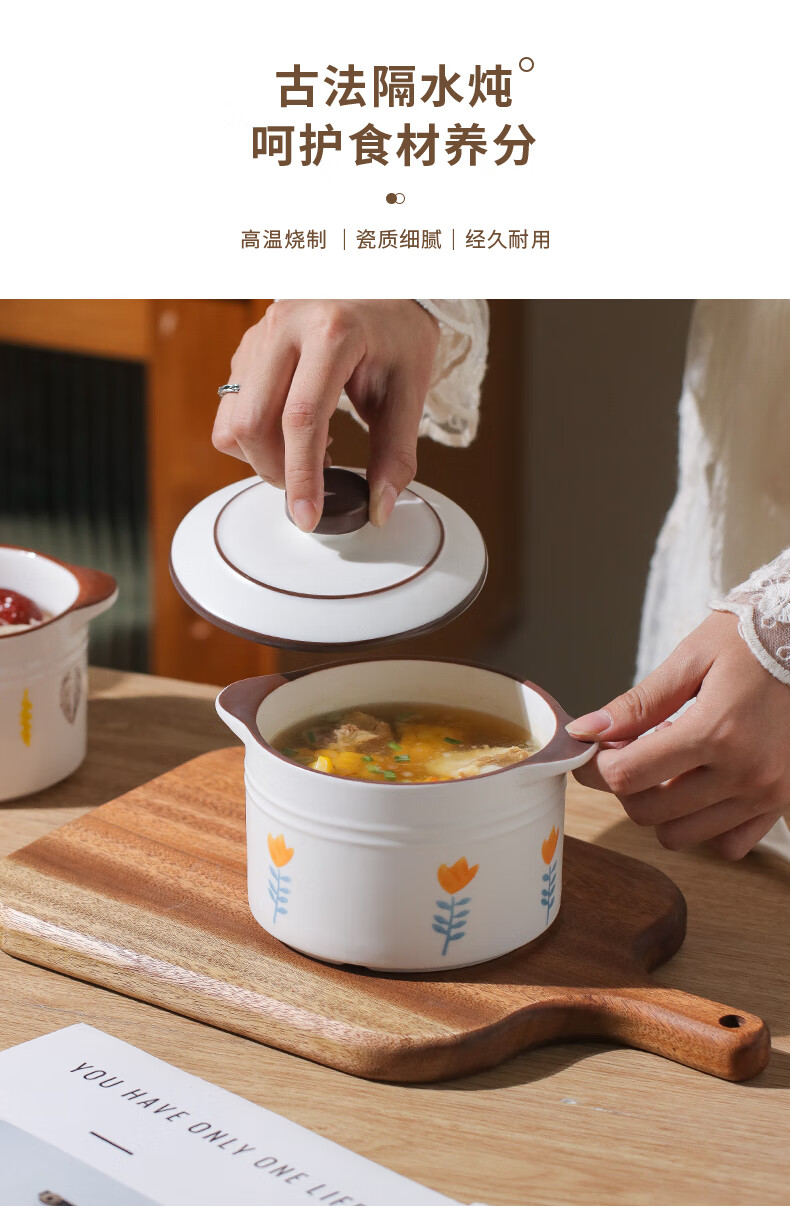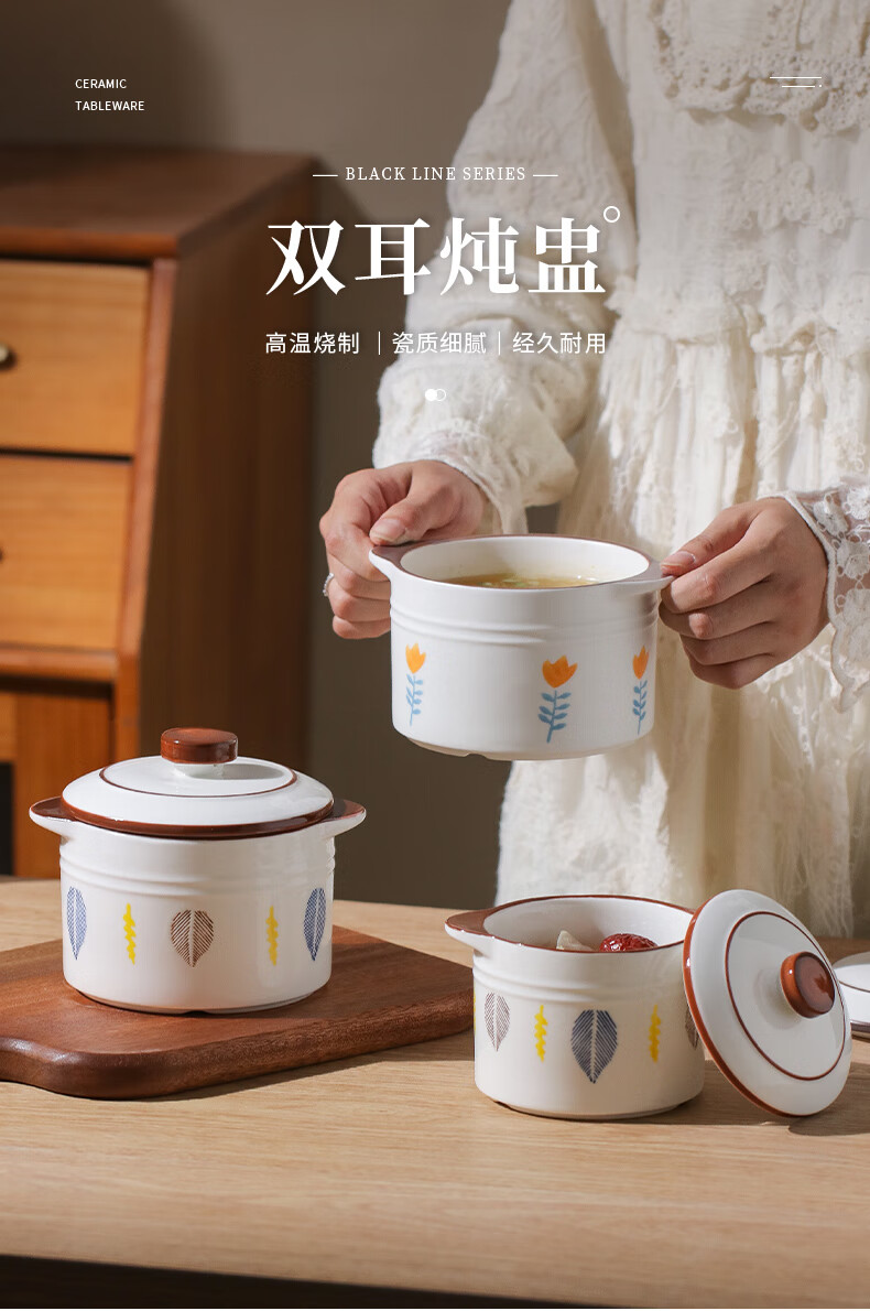 【千叶小黄花双耳炖盅】陶瓷隔水炖盅家用带盖燕窝盅蒸蛋盅煨汤小瓦罐婴儿辅食汤盅一人食