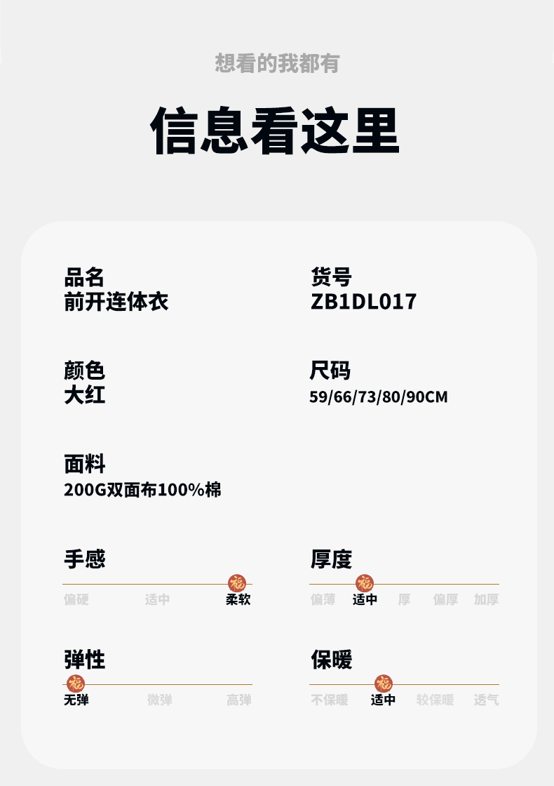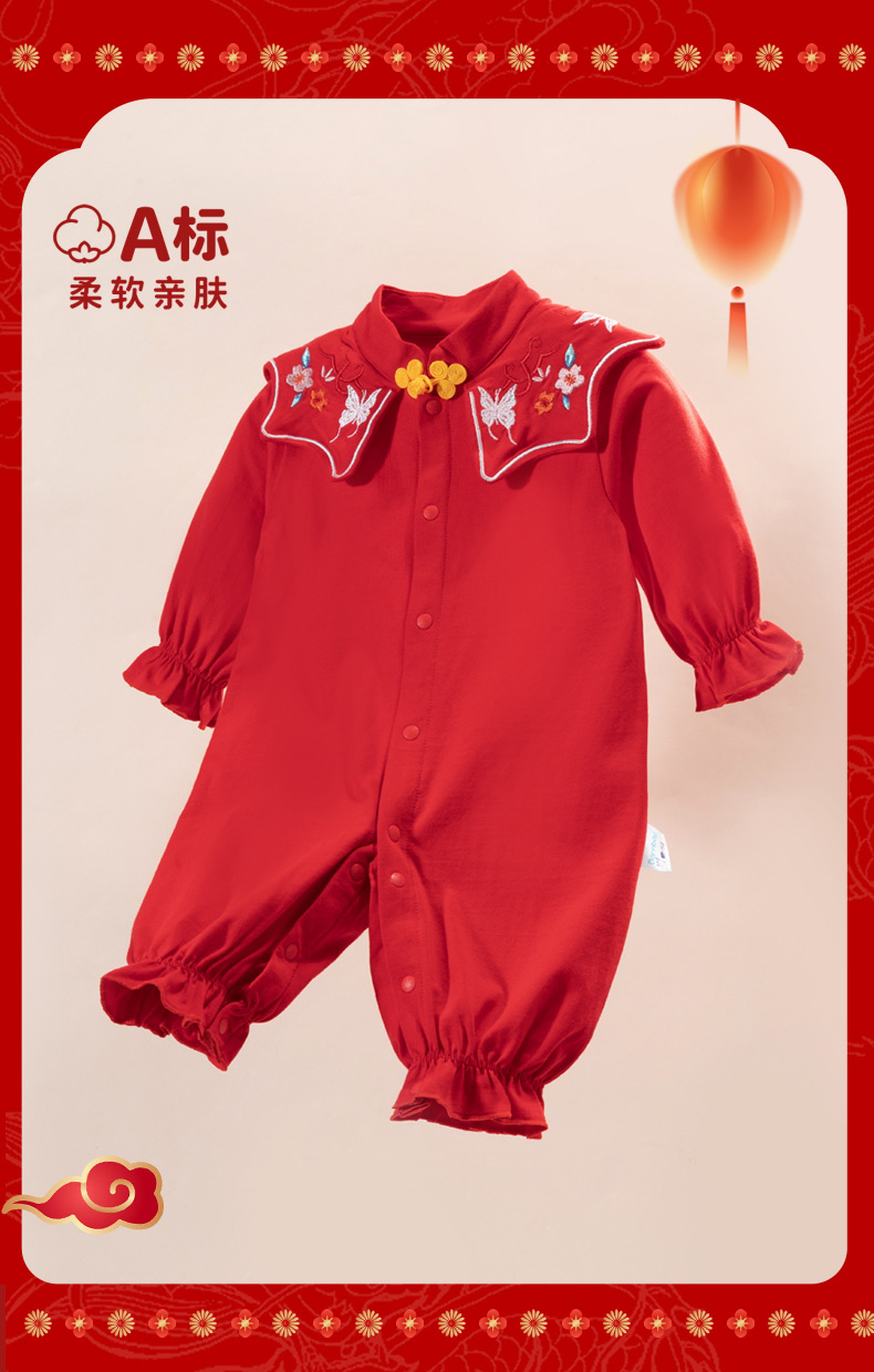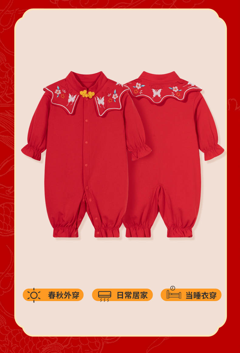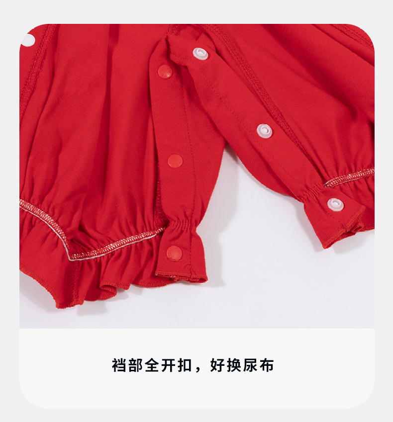 贝贝怡春秋男女童大红前开连体衣ZB1DL017
