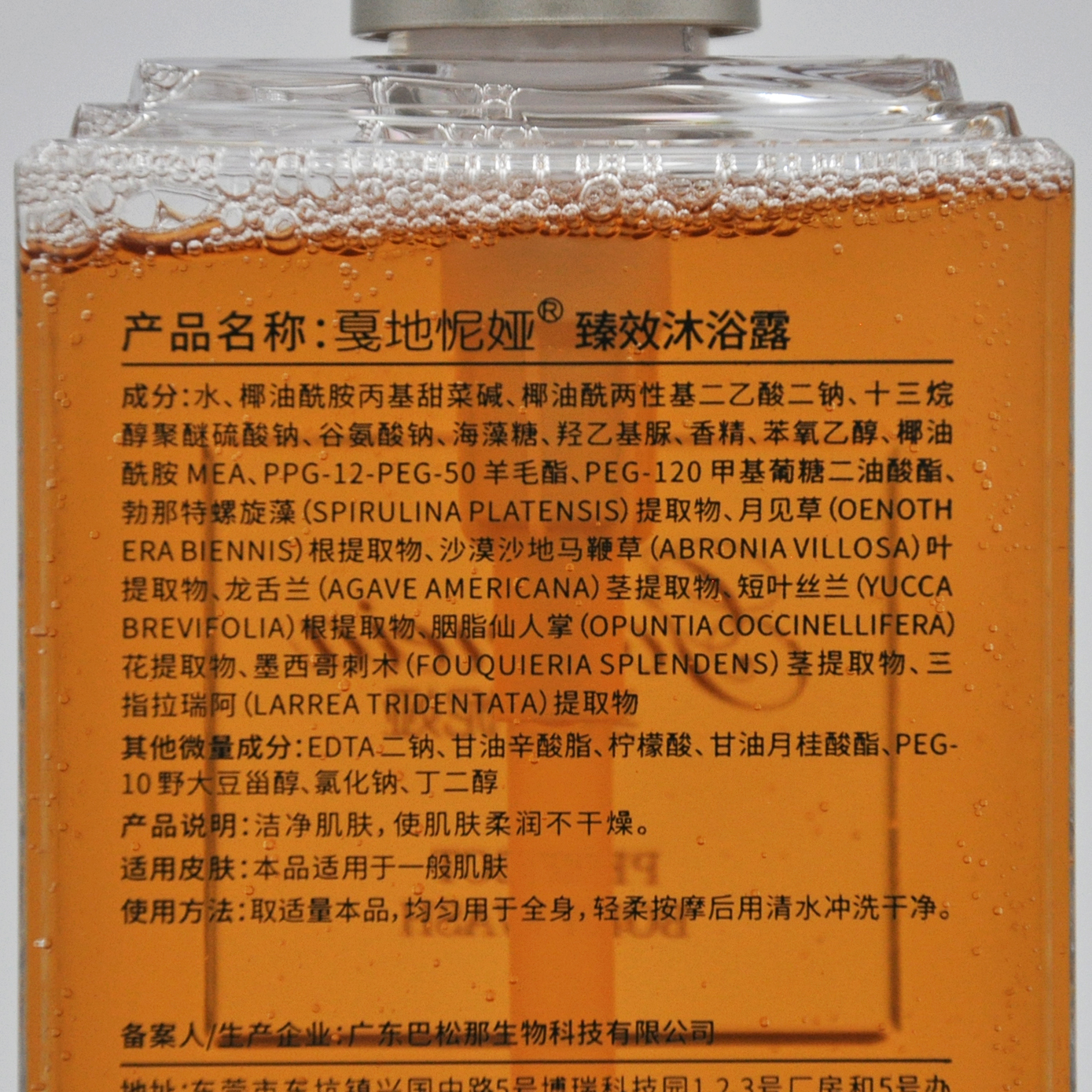 使用方法:取适量本品,均匀用于全身,轻柔按摩后用清水冲洗干净。