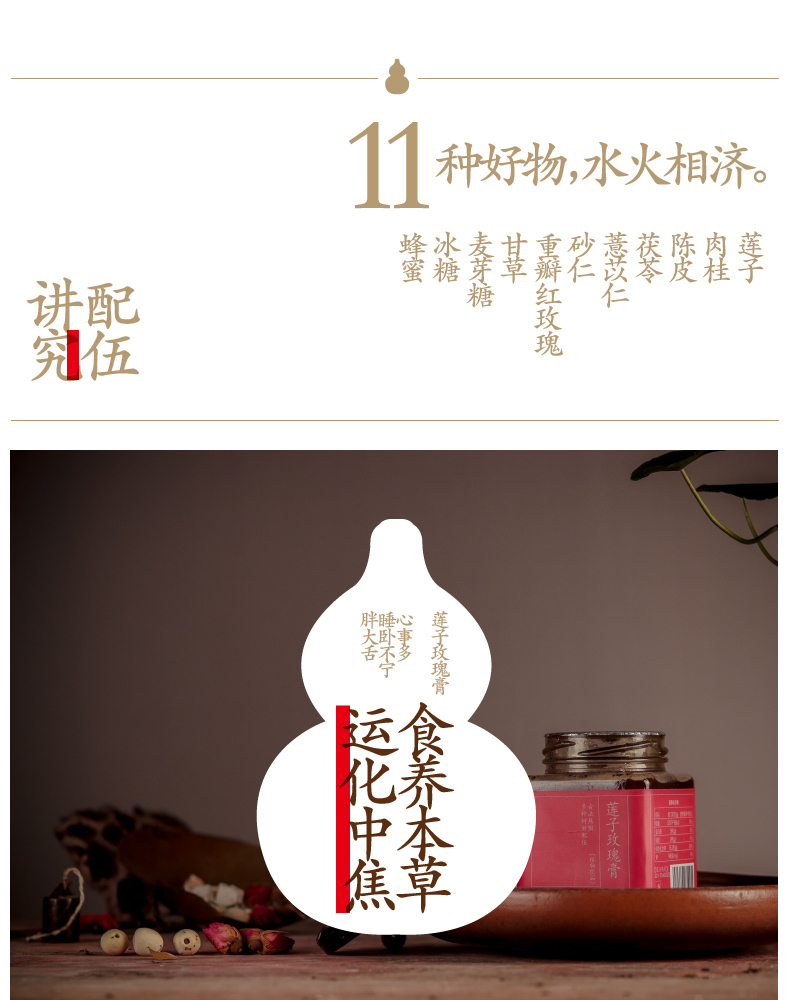 莲子玫瑰膏| 上热下寒疏中焦。十一味植物中式食养调配膏方传统熬制工艺