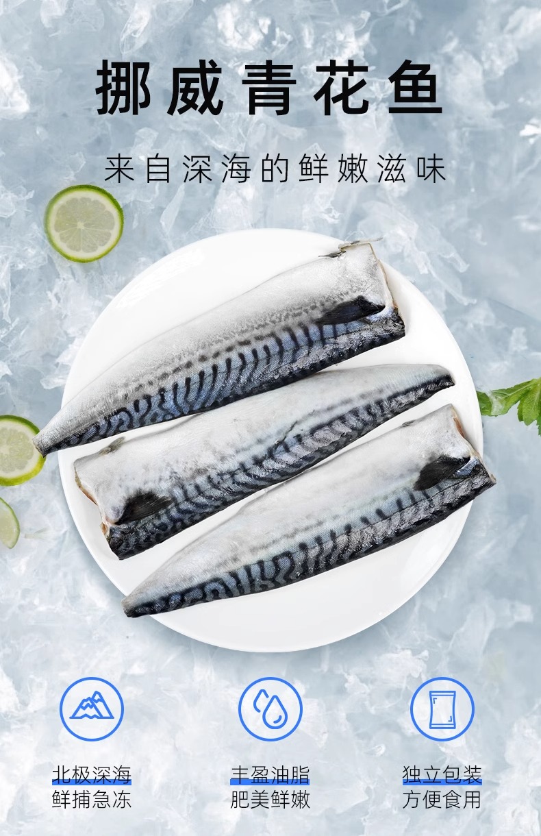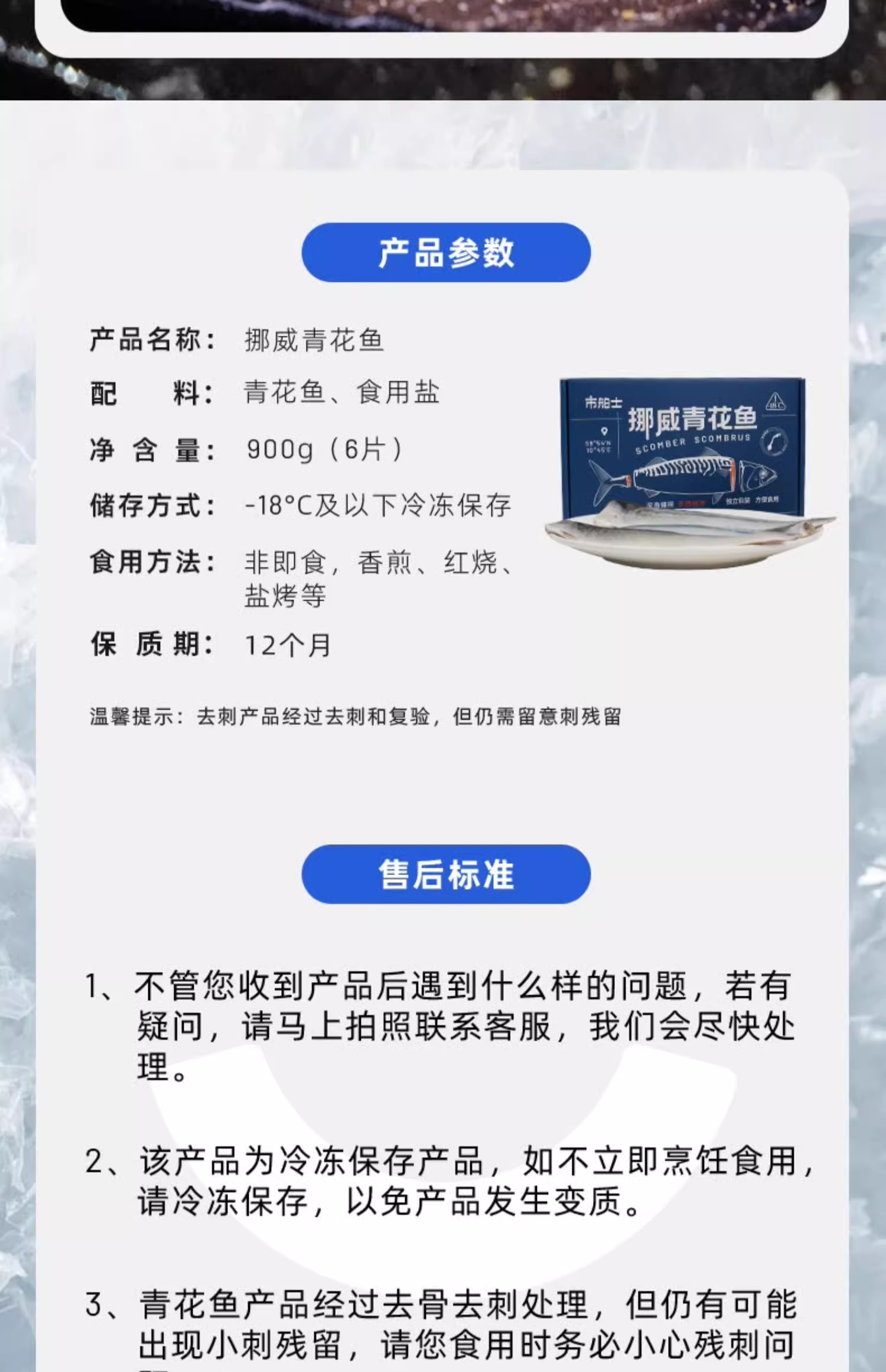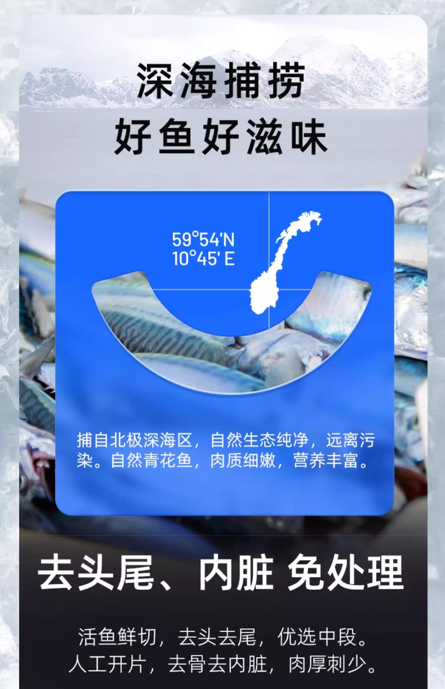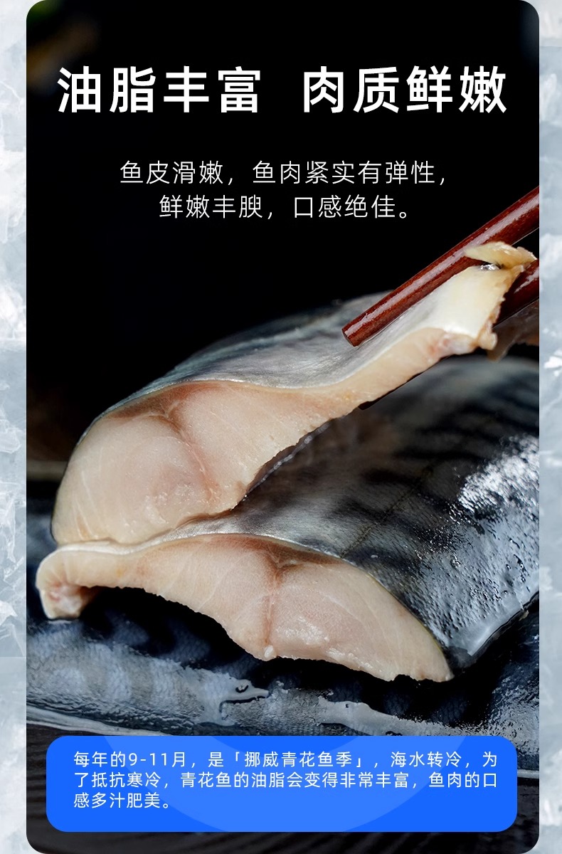 【萌萌姐专属】市舶士 挪威进口纯净深海捕捞青花鱼 冷冻海鲜水产鲭鱼900g/盒