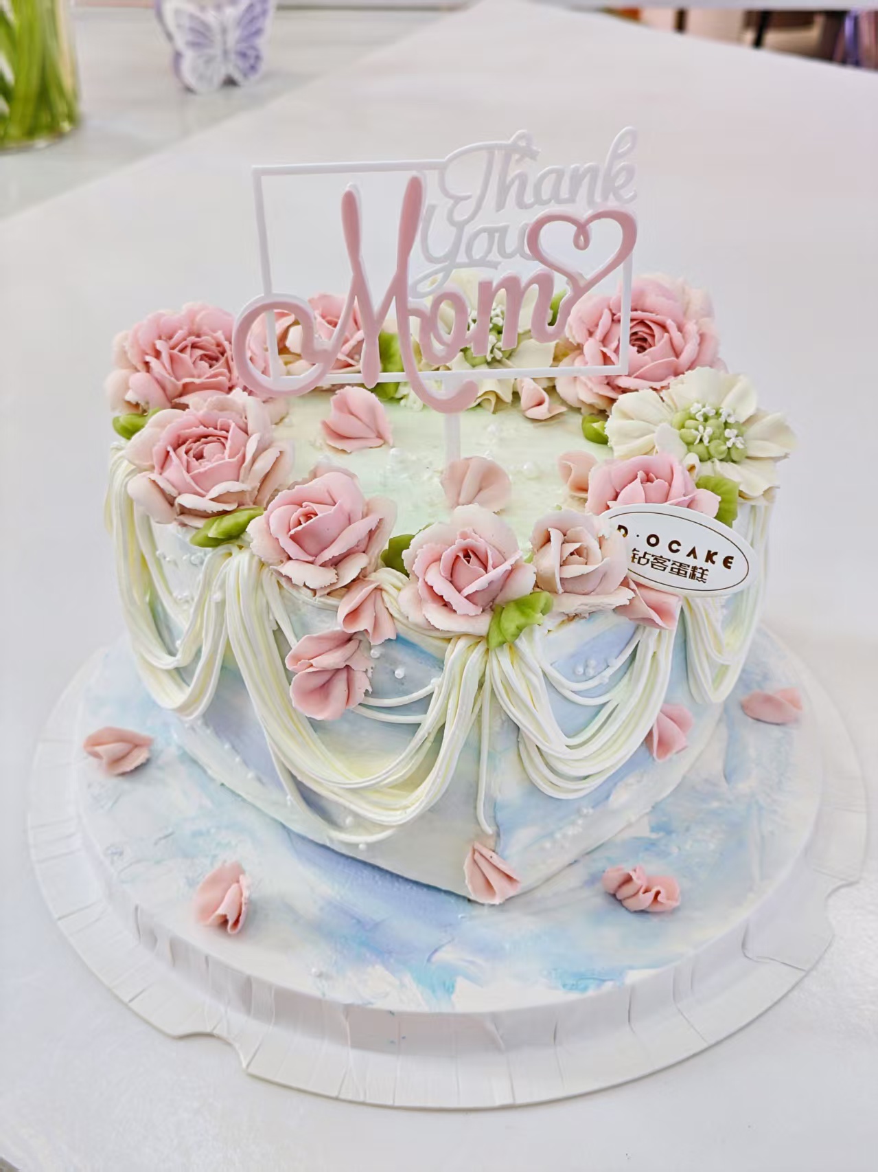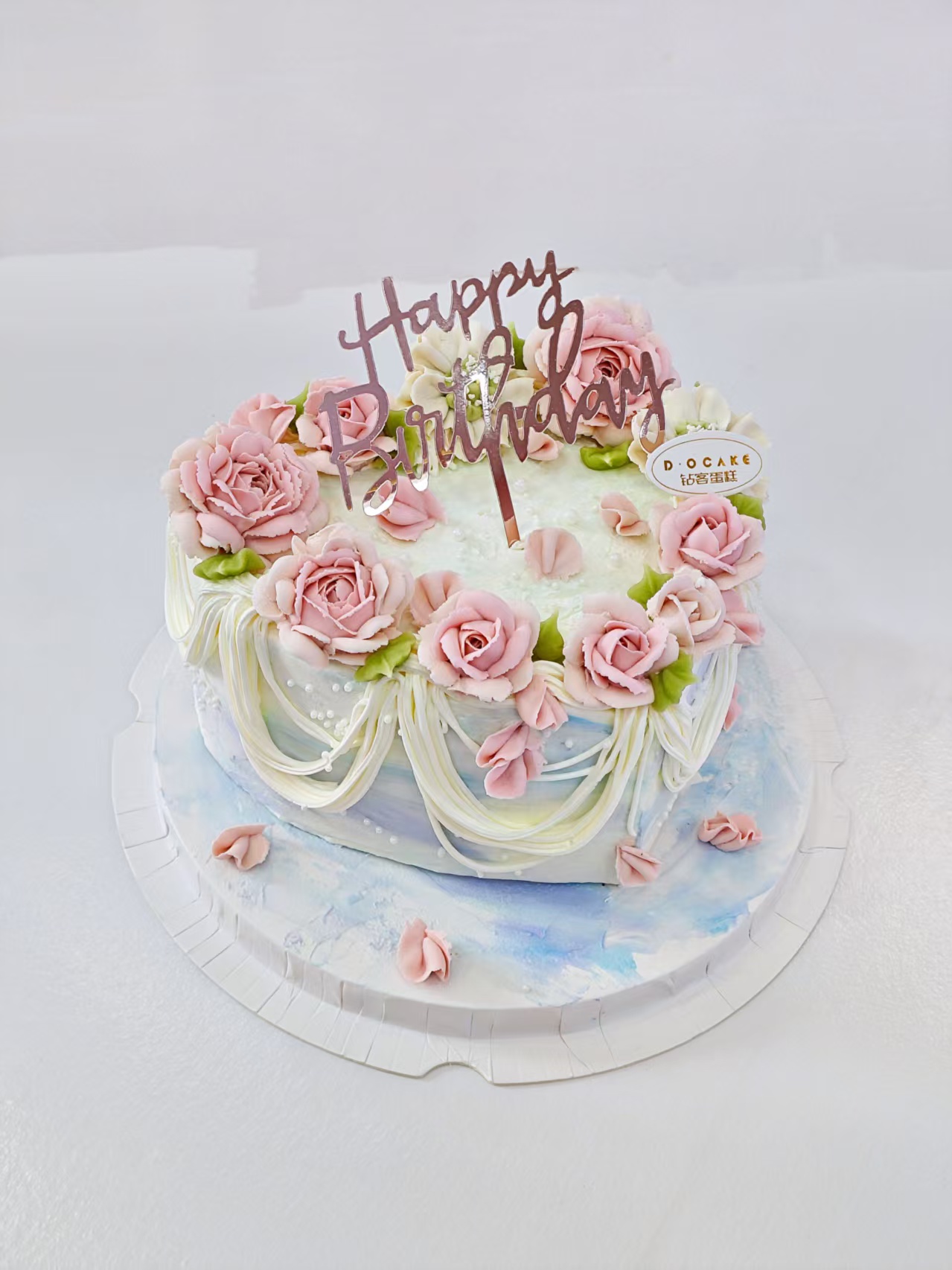 韩式裱花款 外面一层抹面:韩式黄油,侧边渐变蓝紫色 内层: 新鲜水果 纯动物奶油夹层