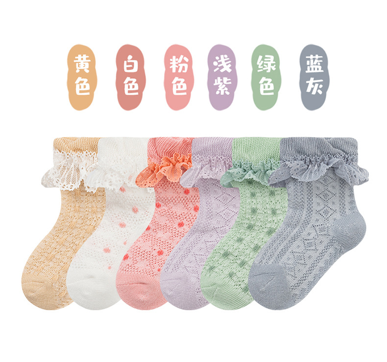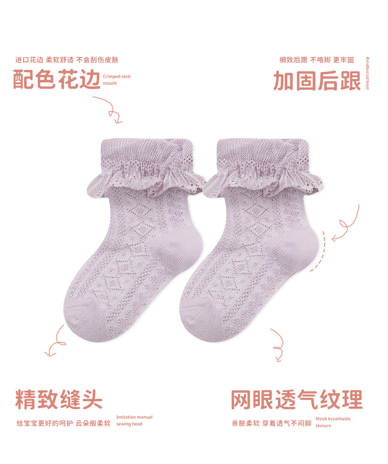 【3双装 甜系网眼花边袜】零线头韩版薄棉糖果公主袜宝宝婴幼儿小中童袜子