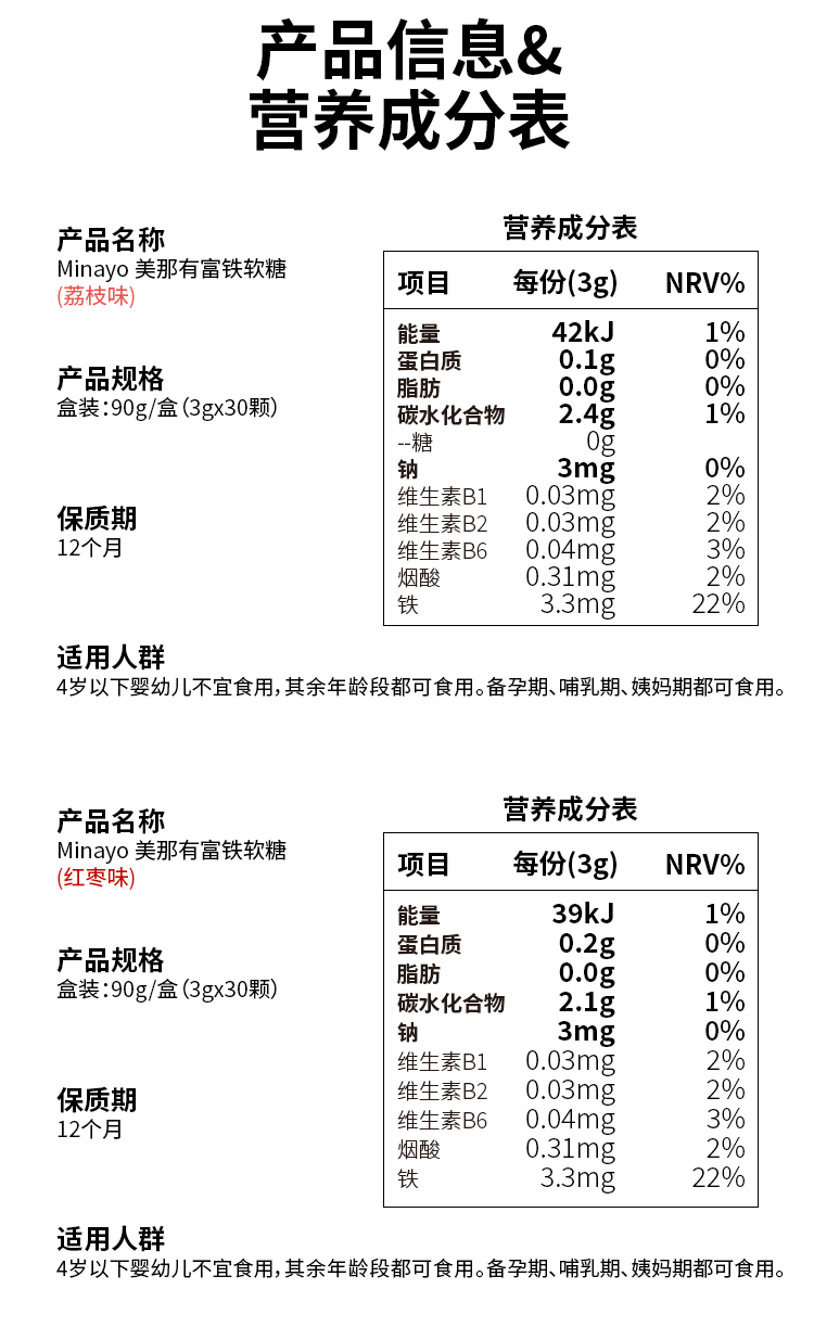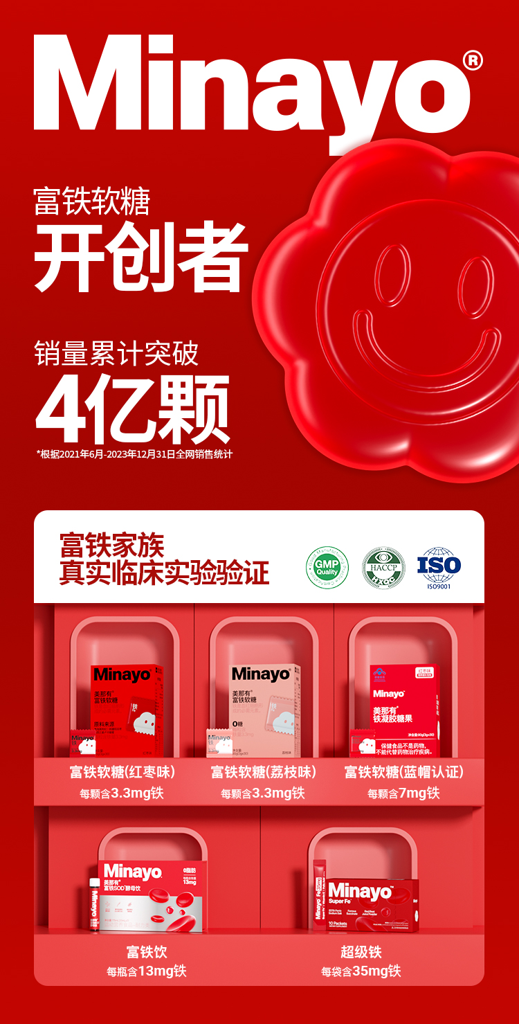 美那有Minayo补铁软糖富铁软糖补铁成人女性孕妇哺乳期保健铁元素90g/盒