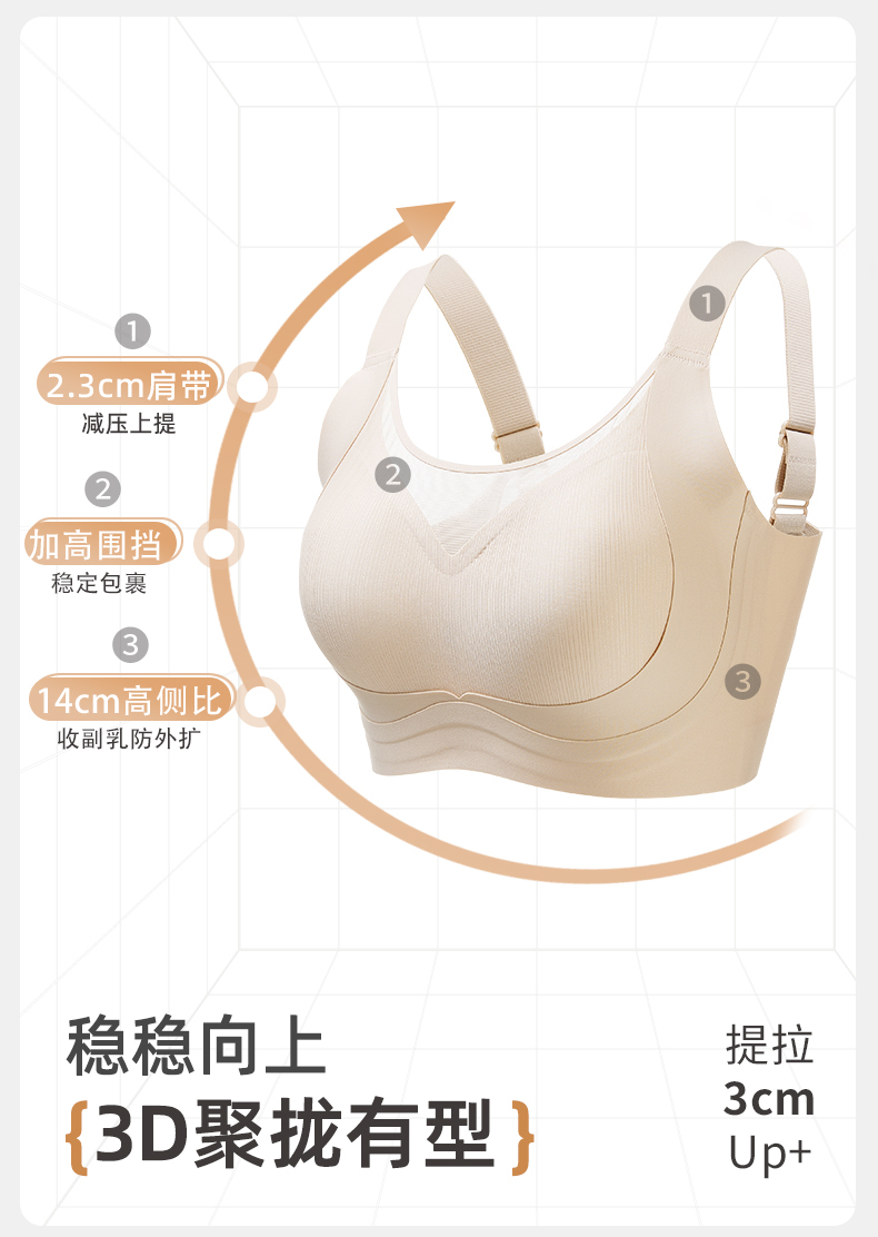雅黛俪女士文胸大胸显小显瘦反重力提拉防下垂内衣U型美背无痕胸罩