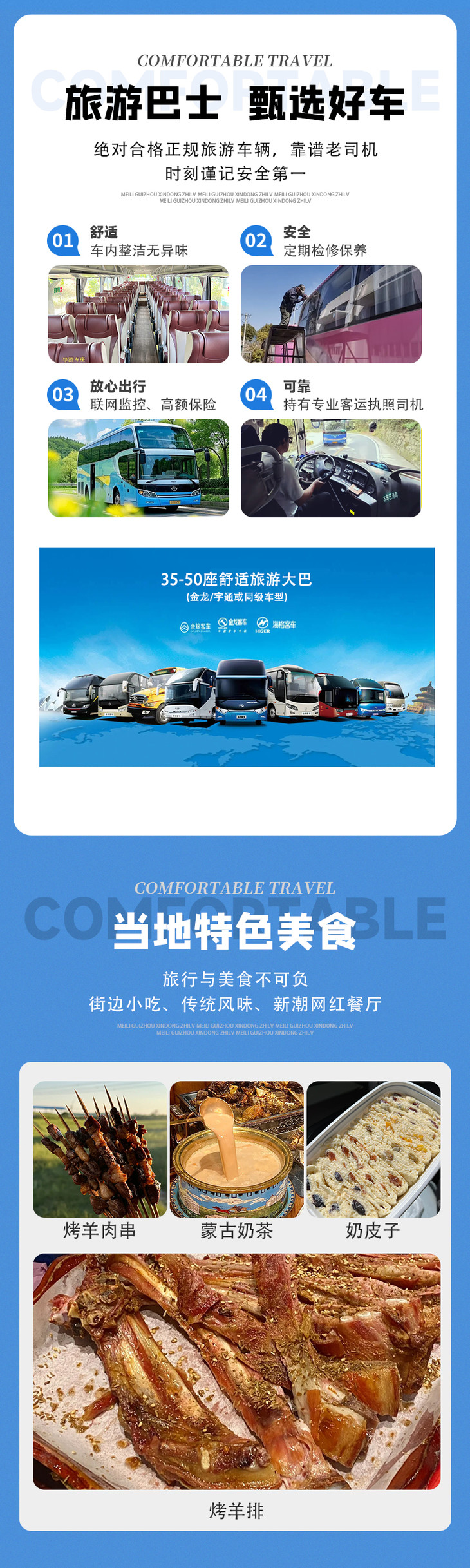 - 下午徒步结束后,我们乘车前往乌丹酒店办理入住,晚上继续品尝内蒙当地的特色美食。