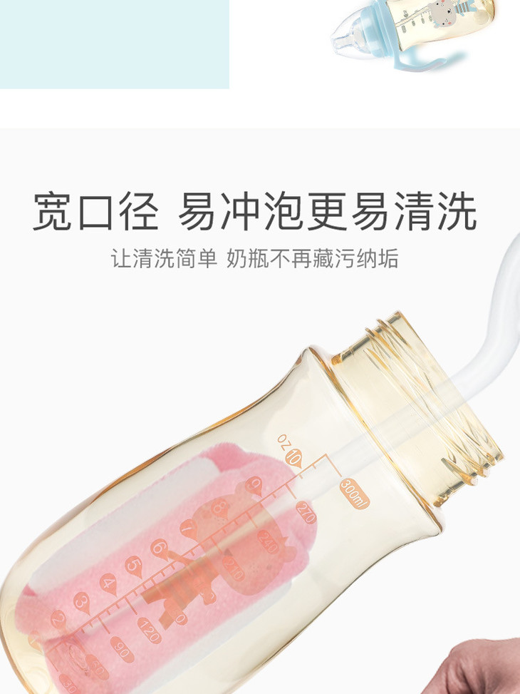 【婴儿用品】创意婴儿宽口手柄PPSU奶瓶 300ml防摔奶嘴瓶母婴
