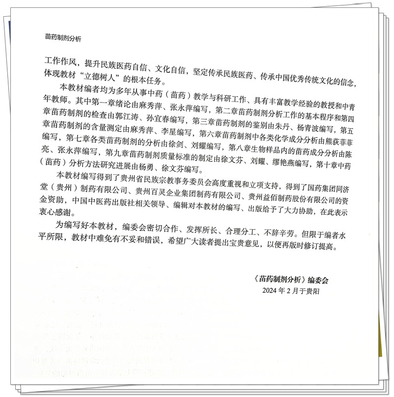 苗药制剂分析 徐文芬 张永萍 主编 全国中医药行业高等教育十四五创新教材