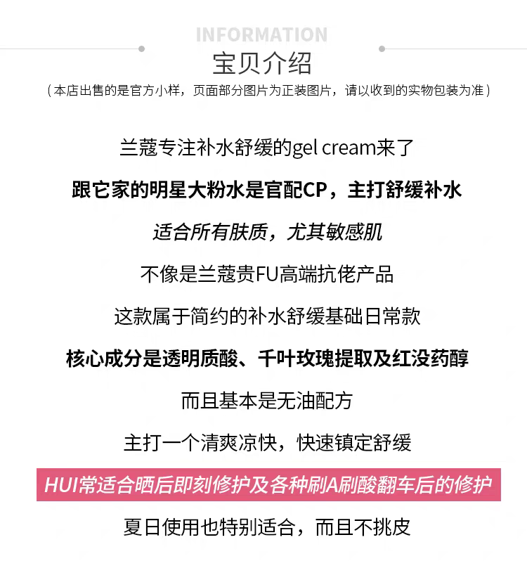 超值小样!新品~兰蔻水源舒缓乳霜15ml中小样试用装清爽维稳补水滋润保湿霜