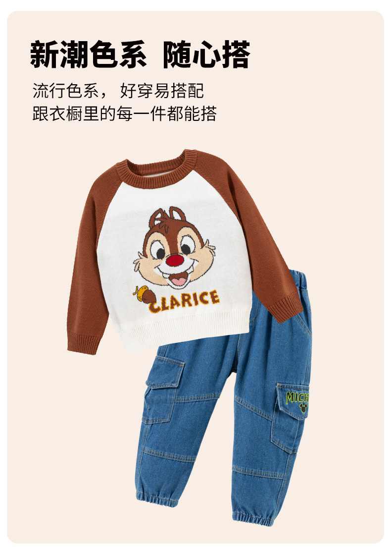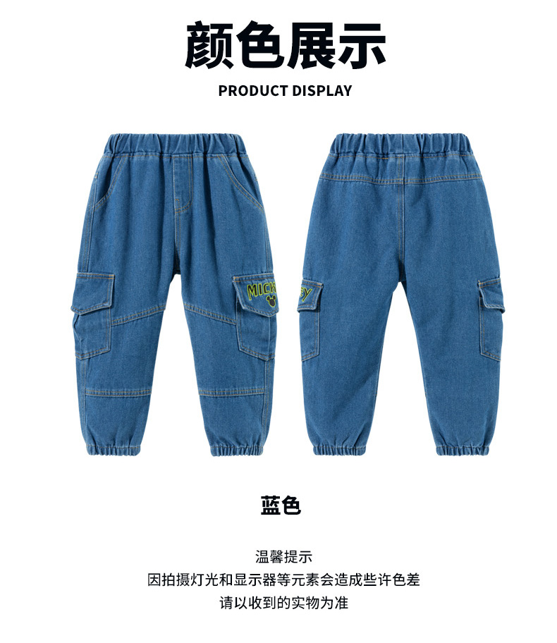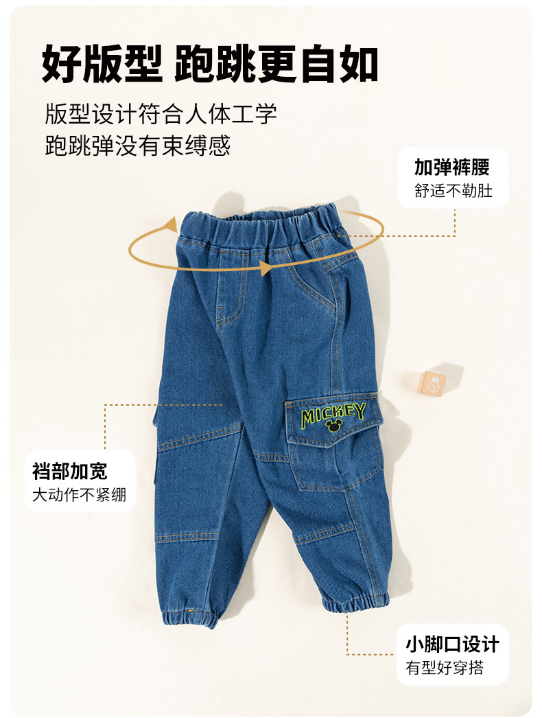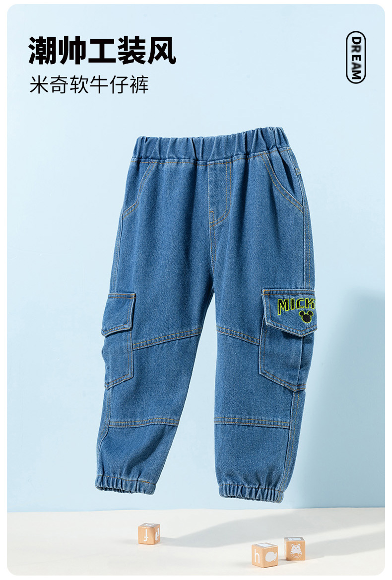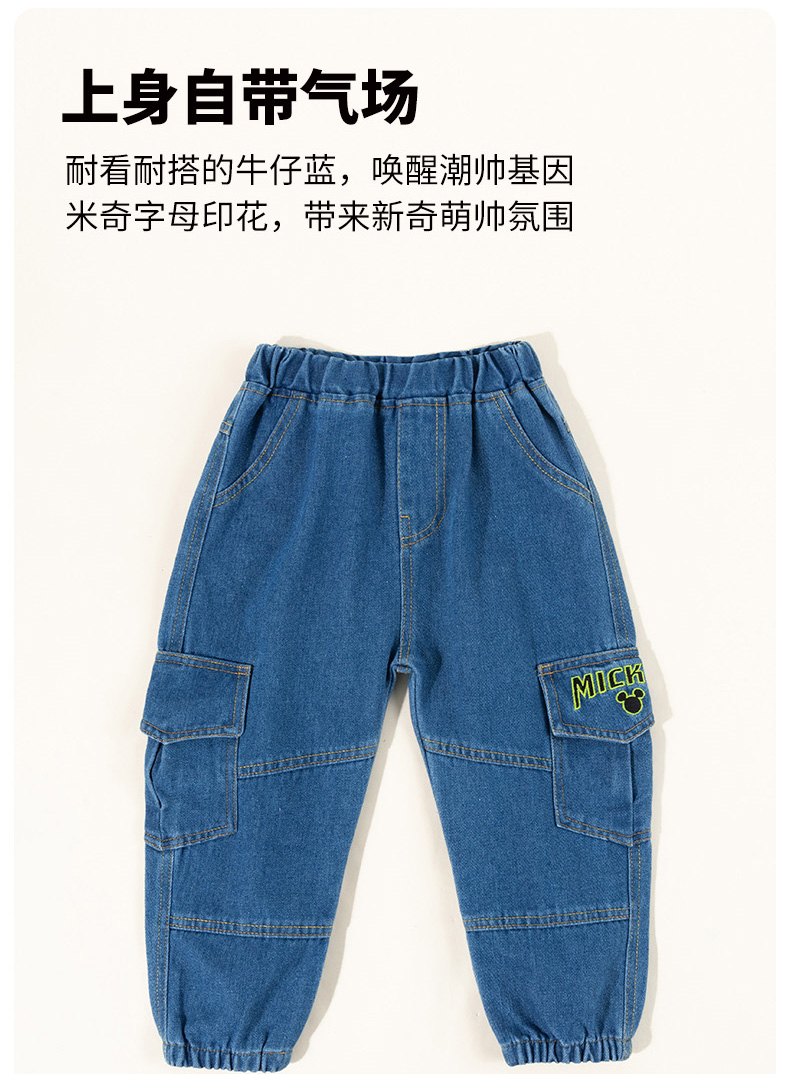 迪士尼【多口袋米奇牛仔裤】24秋季新款男童运动休闲束脚裤百搭学生裤ZD3DK026