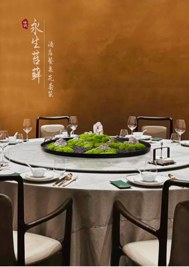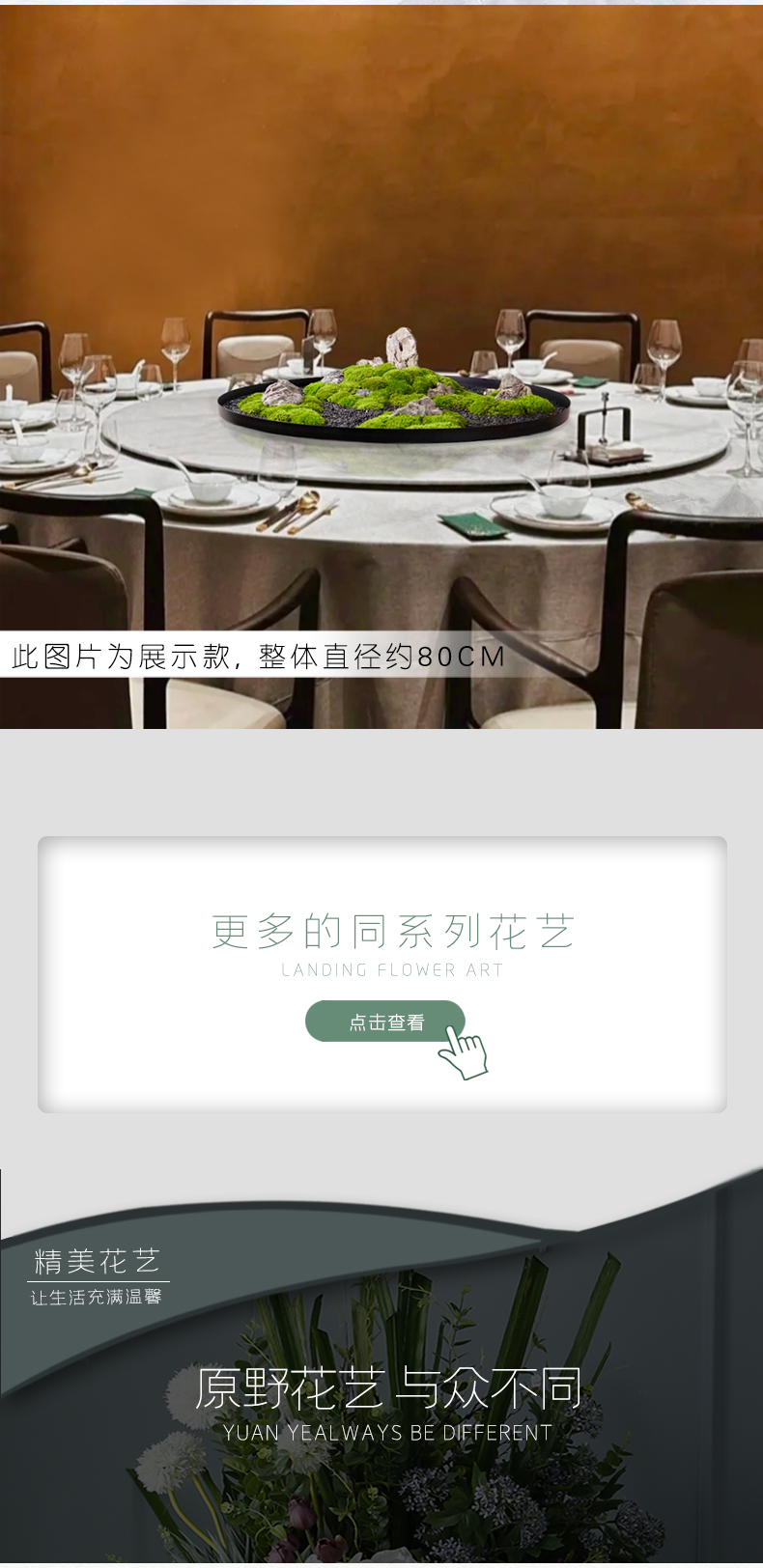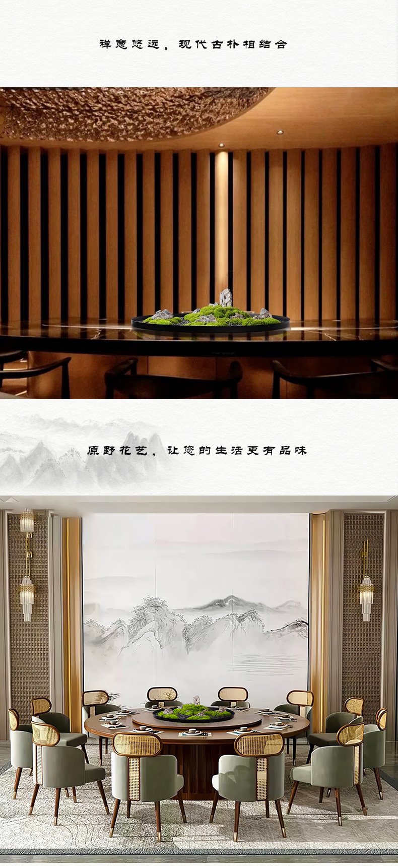 酒店餐桌花摆花高端永生苔藓大圆桌装饰摆设件餐厅转盘中式微景观