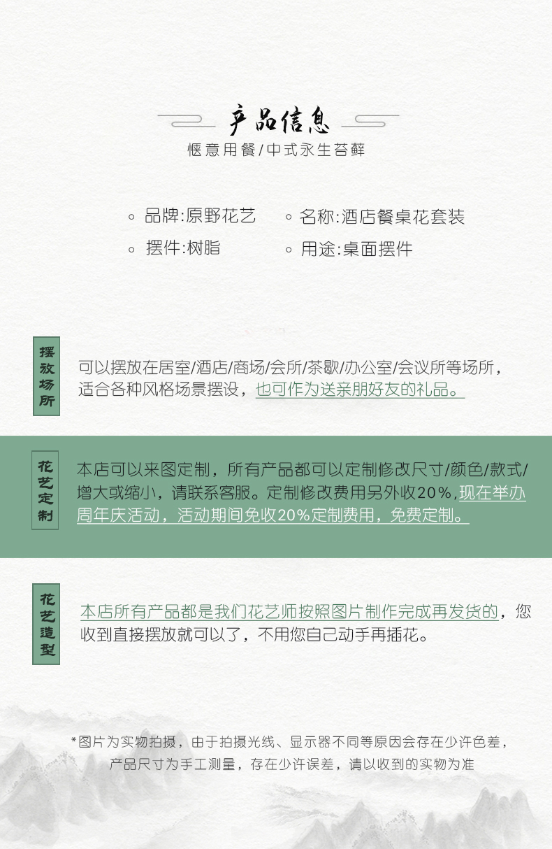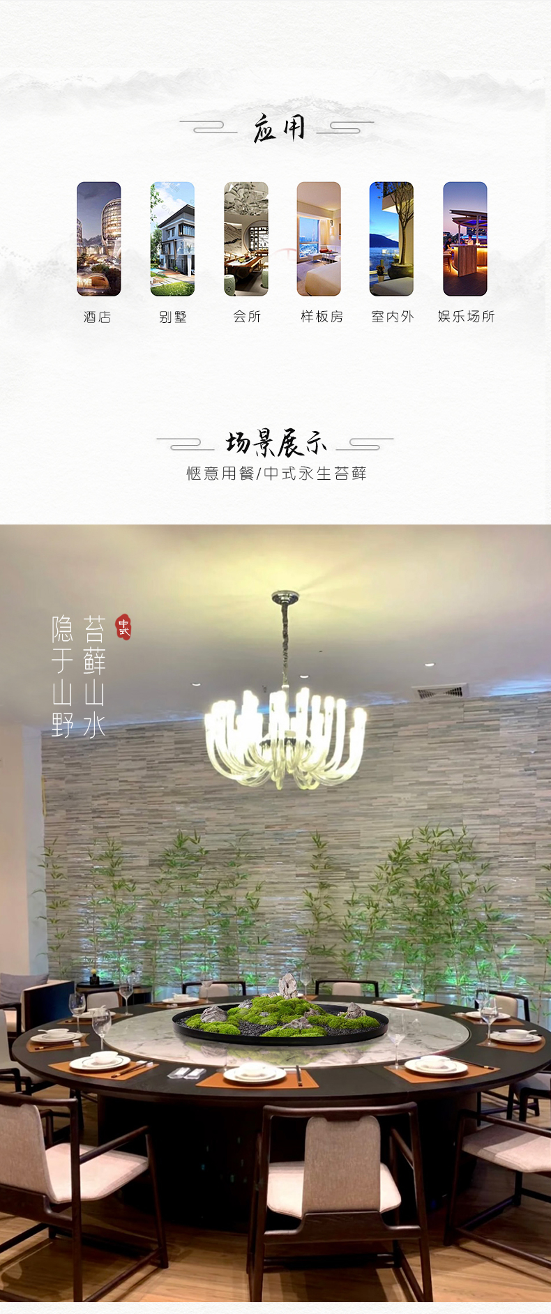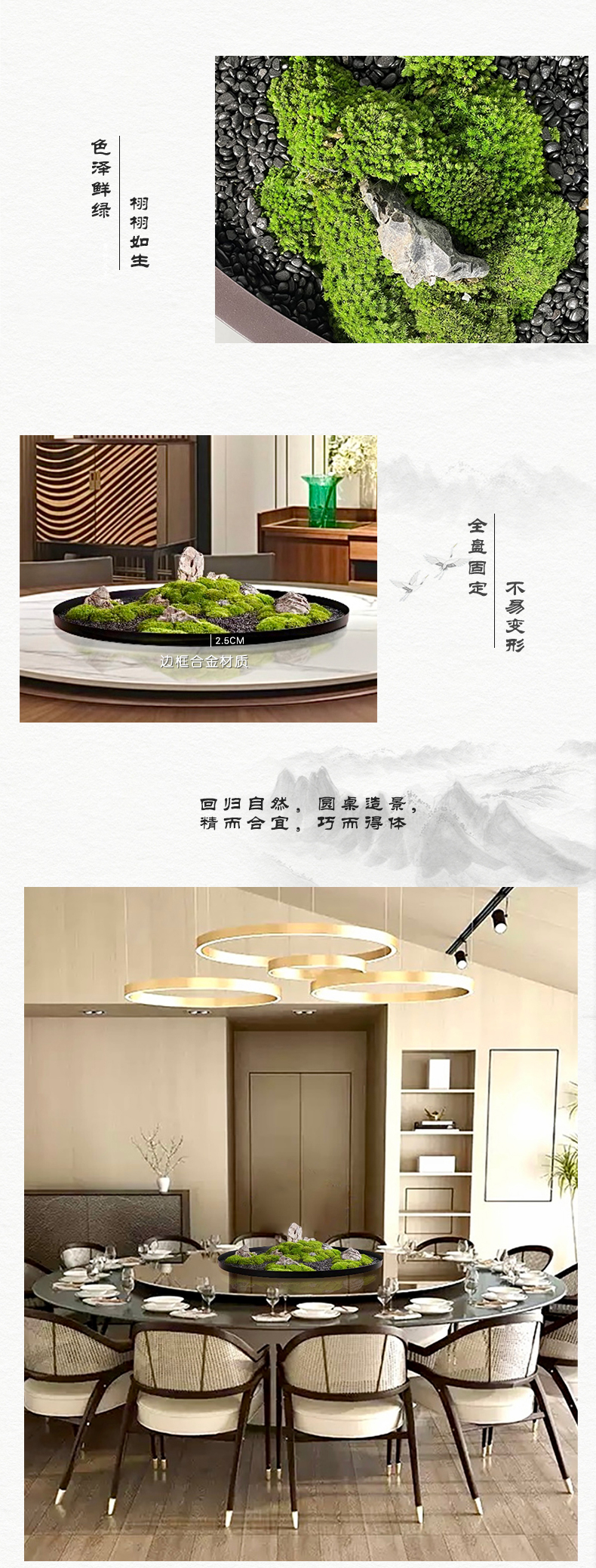 酒店餐桌花摆花高端永生苔藓大圆桌装饰摆设件餐厅转盘中式微景观