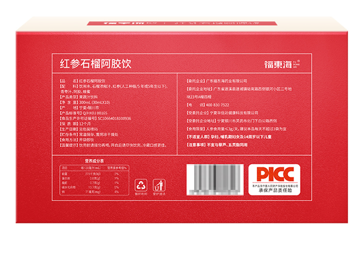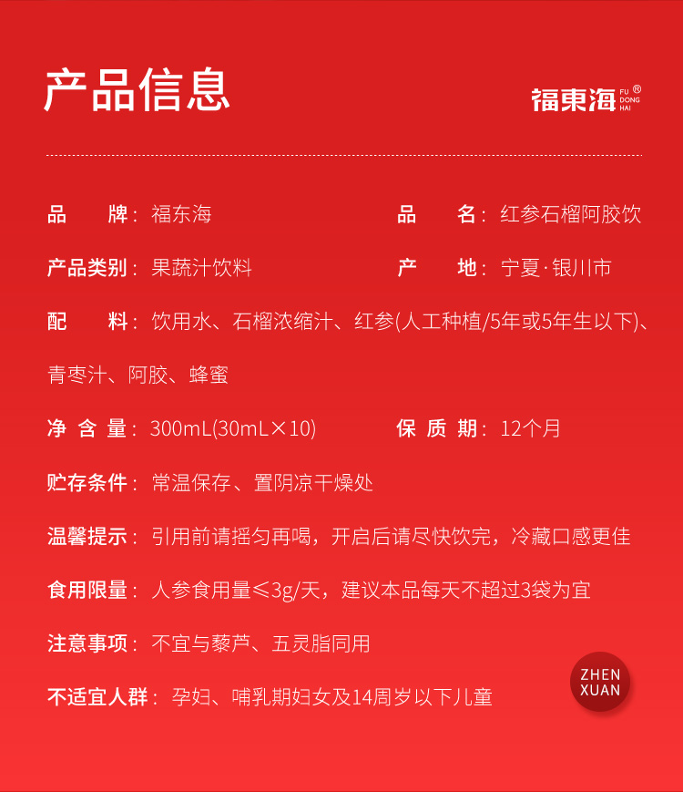 【福东海】红参石榴阿胶饮300ml 浓缩液甄选红参 阿胶 真材实料植物饮料独立小包装开袋即饮