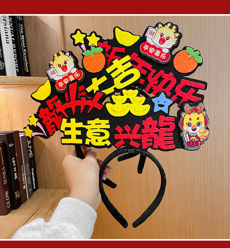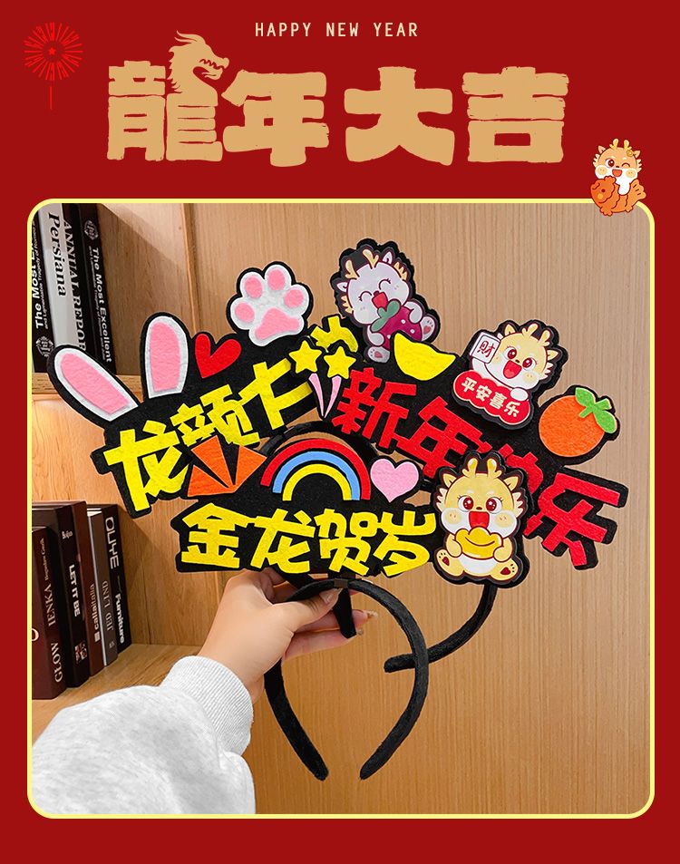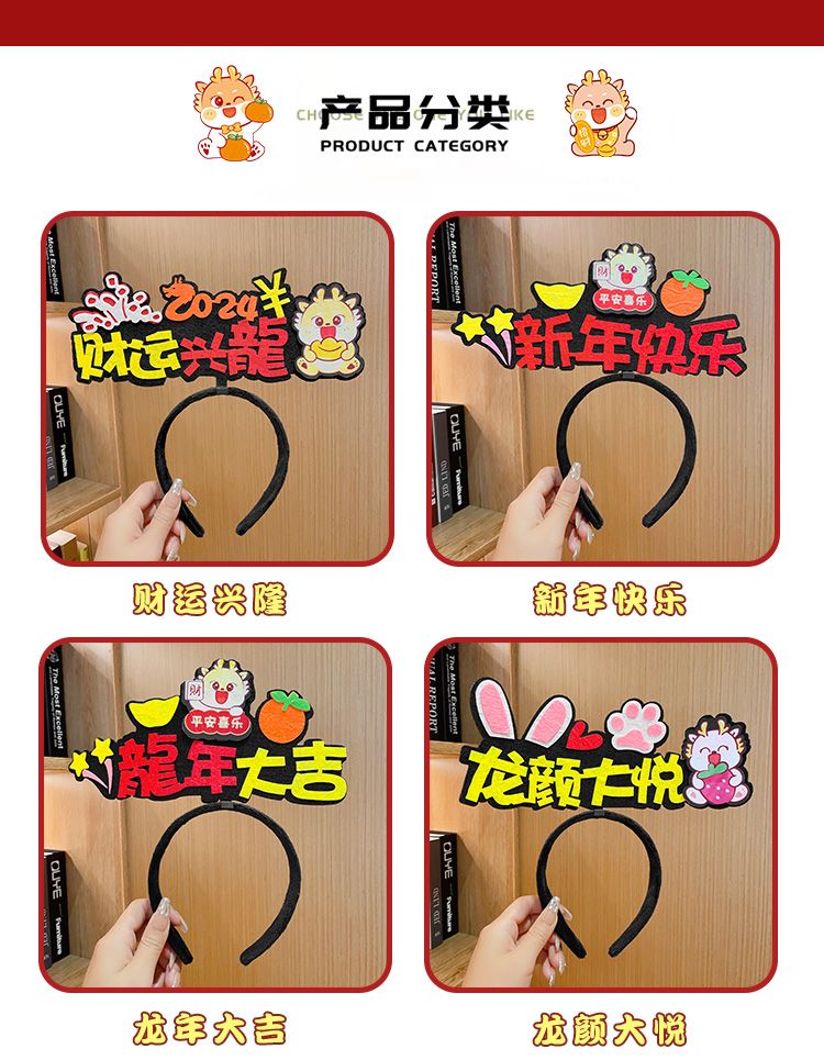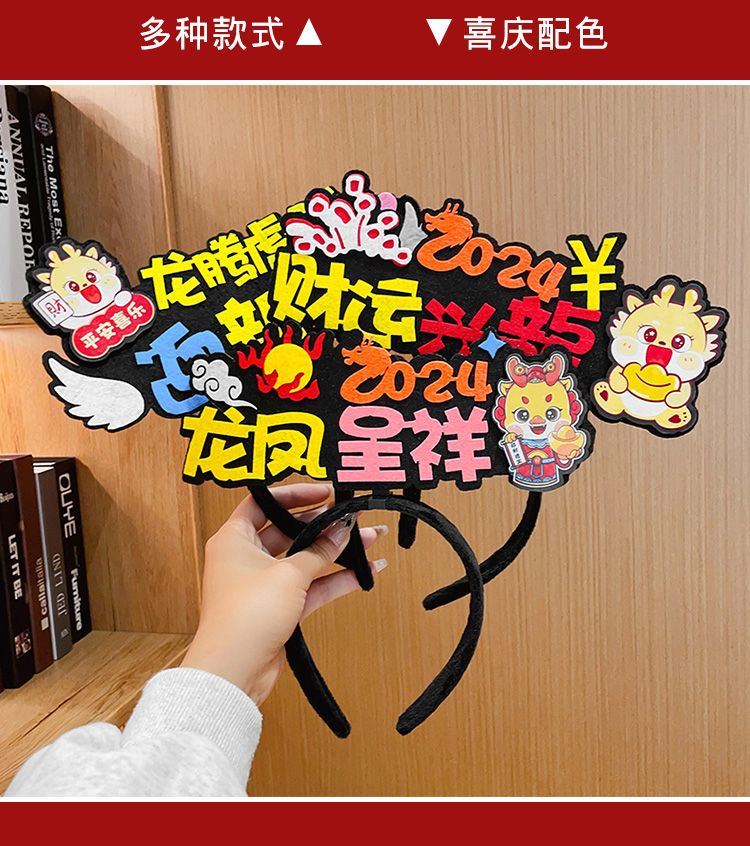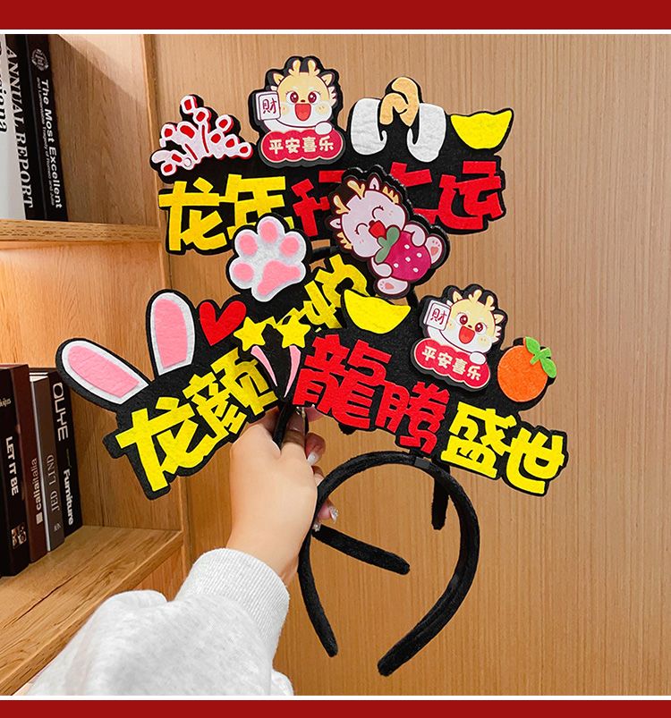 龙年创意文字发箍女2024春节元旦活动道具儿童学校幼儿园表演头箍