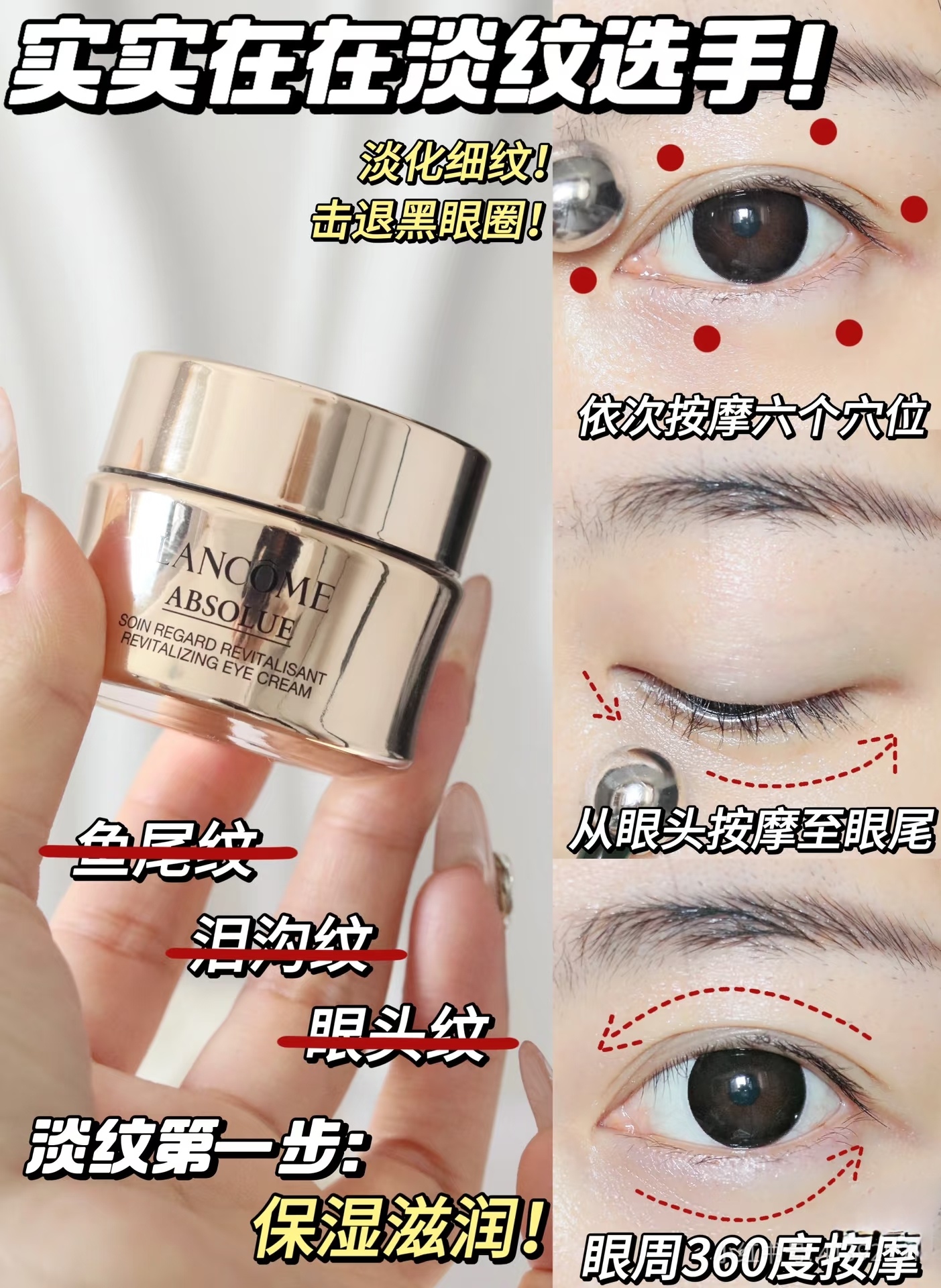 主要平滑眼纹,饱满眼周,还有抗老成分玻色因,帮助你抵御岁月的痕迹~