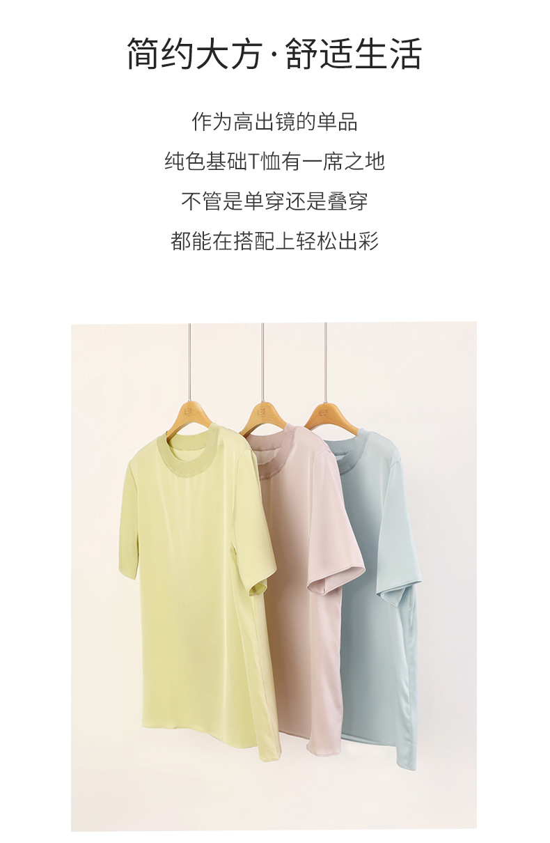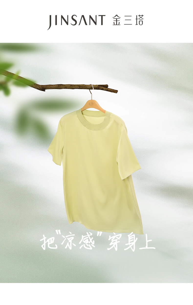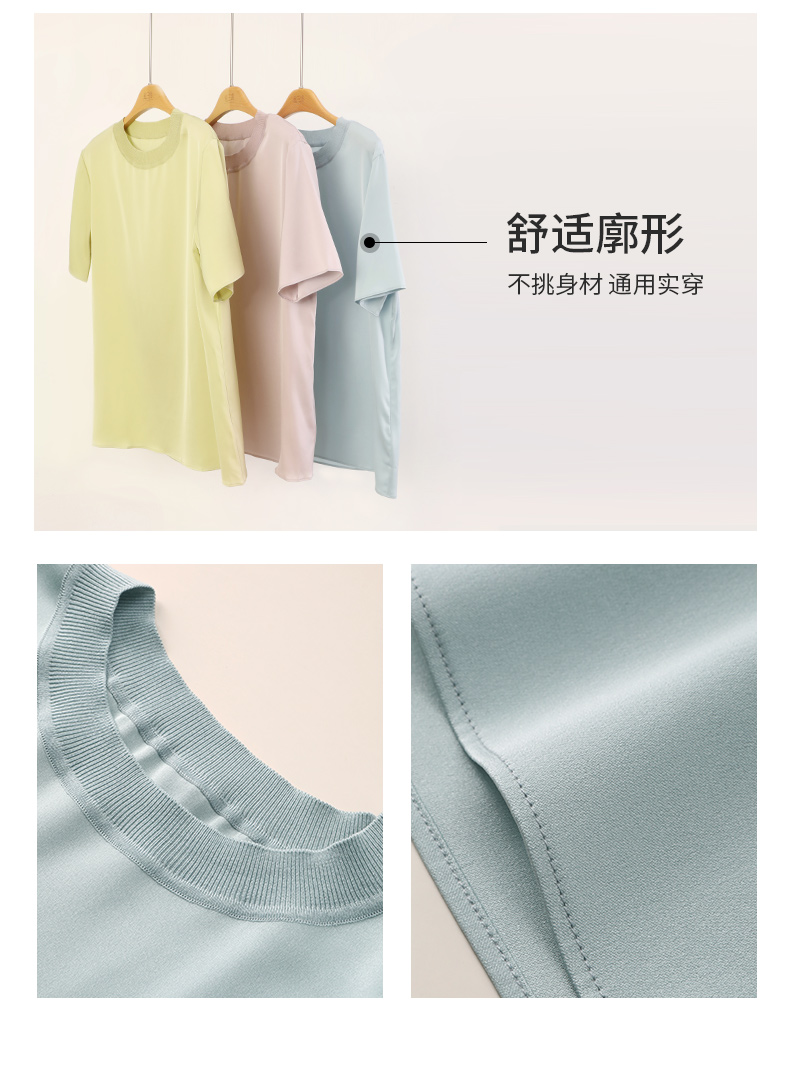 【清爽凉感】桑蚕丝舒适透气T恤女宽松打底小衫女上衣家居服金三塔 YSFEB708