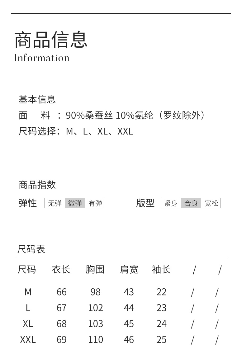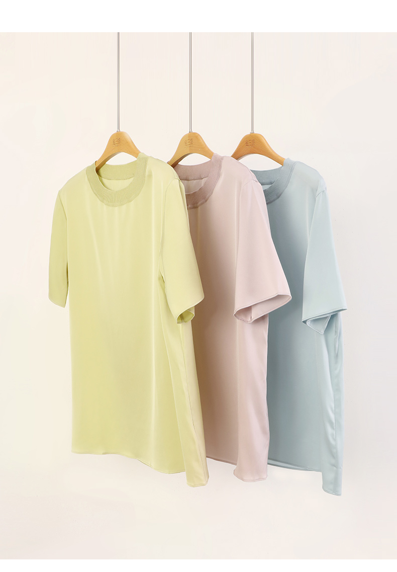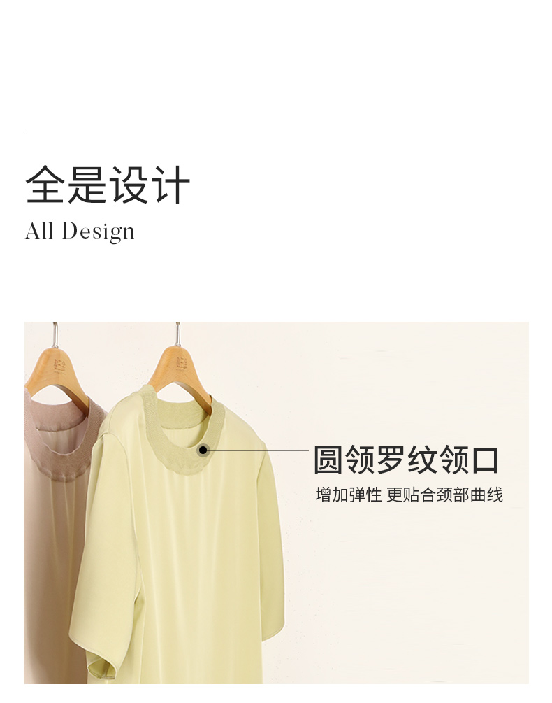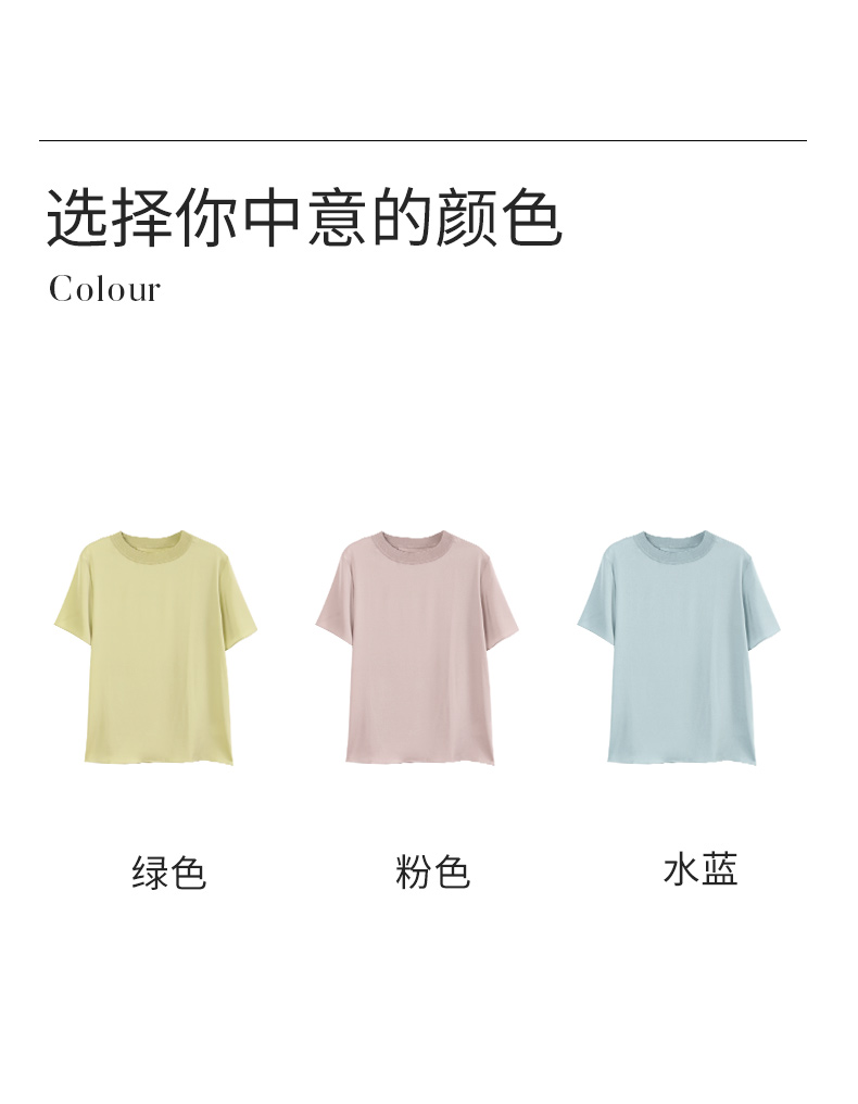 【清爽凉感】桑蚕丝舒适透气T恤女宽松打底小衫女上衣家居服金三塔 YSFEB708