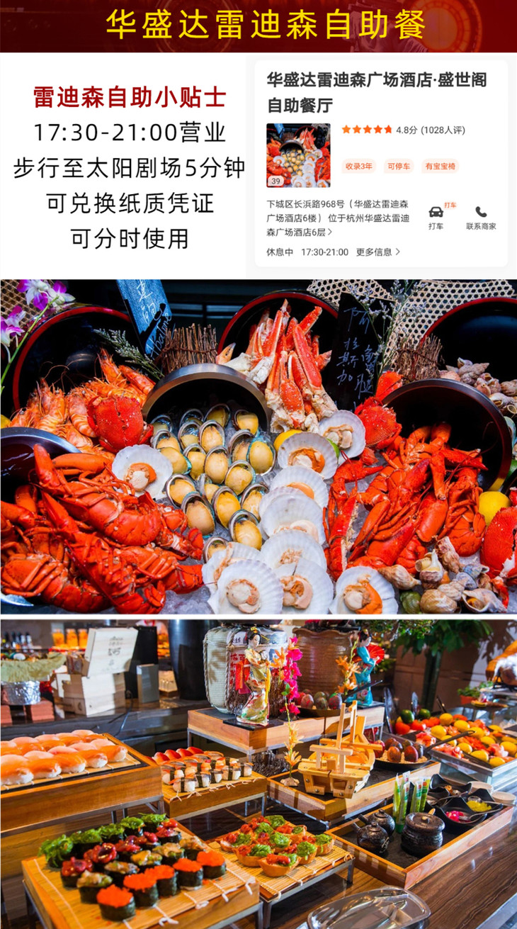 套餐内容:D区单人票+华盛达雷迪森自助晚餐1位