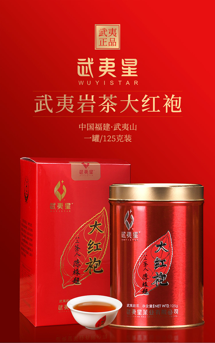 【果香浓韵】武夷星武夷大红袍125克经典红罐装,香气丰富,回甘生津!