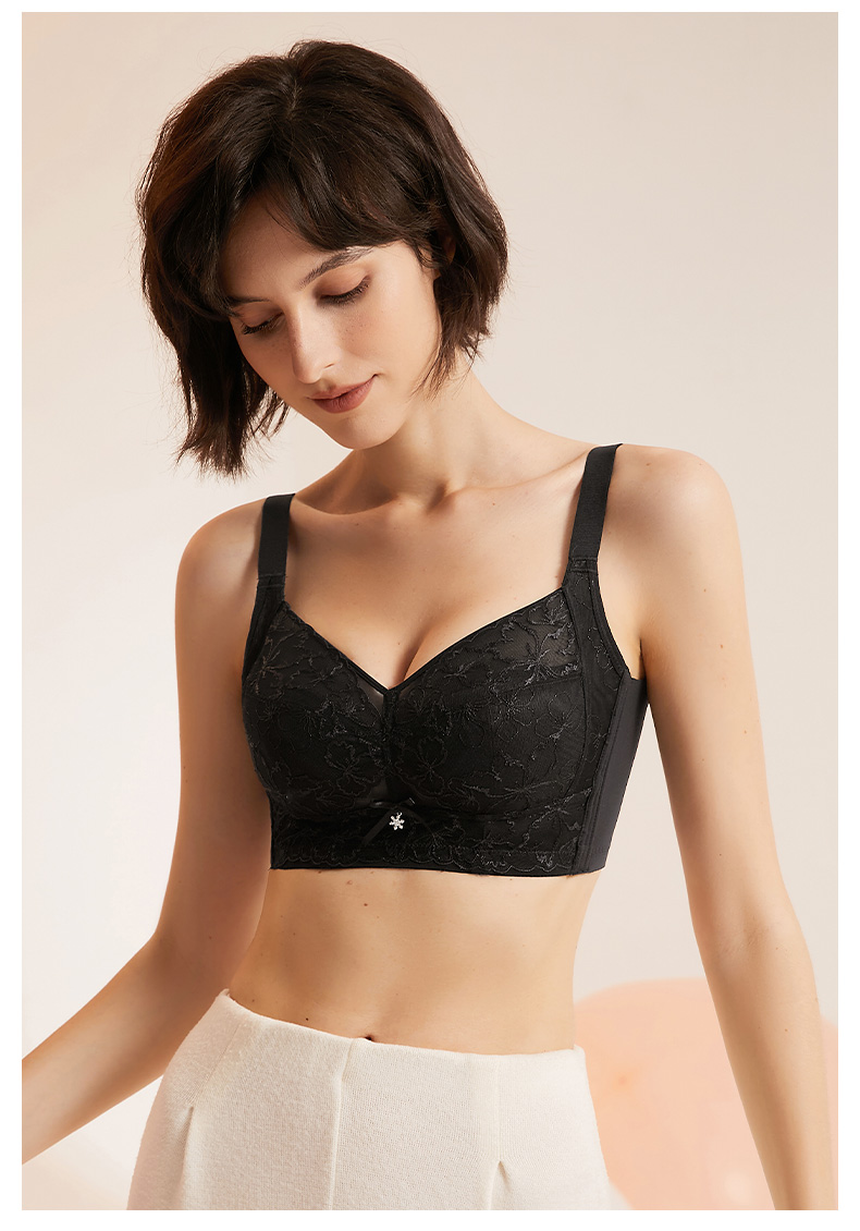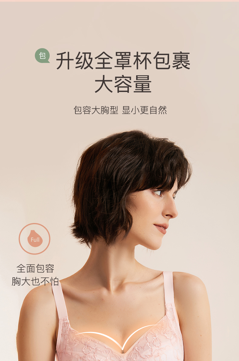 梦芭蒂大码内衣女艾草抑菌文胸大胸显小防下垂收副乳胸罩蝶恋天使