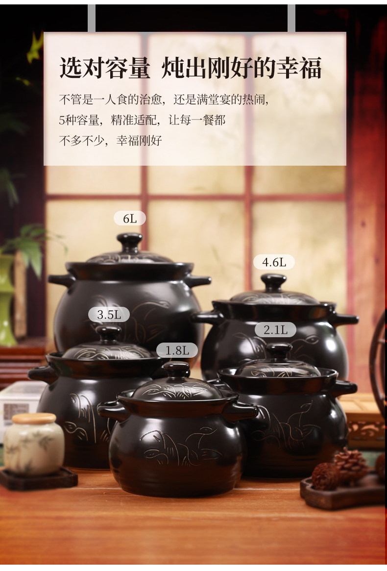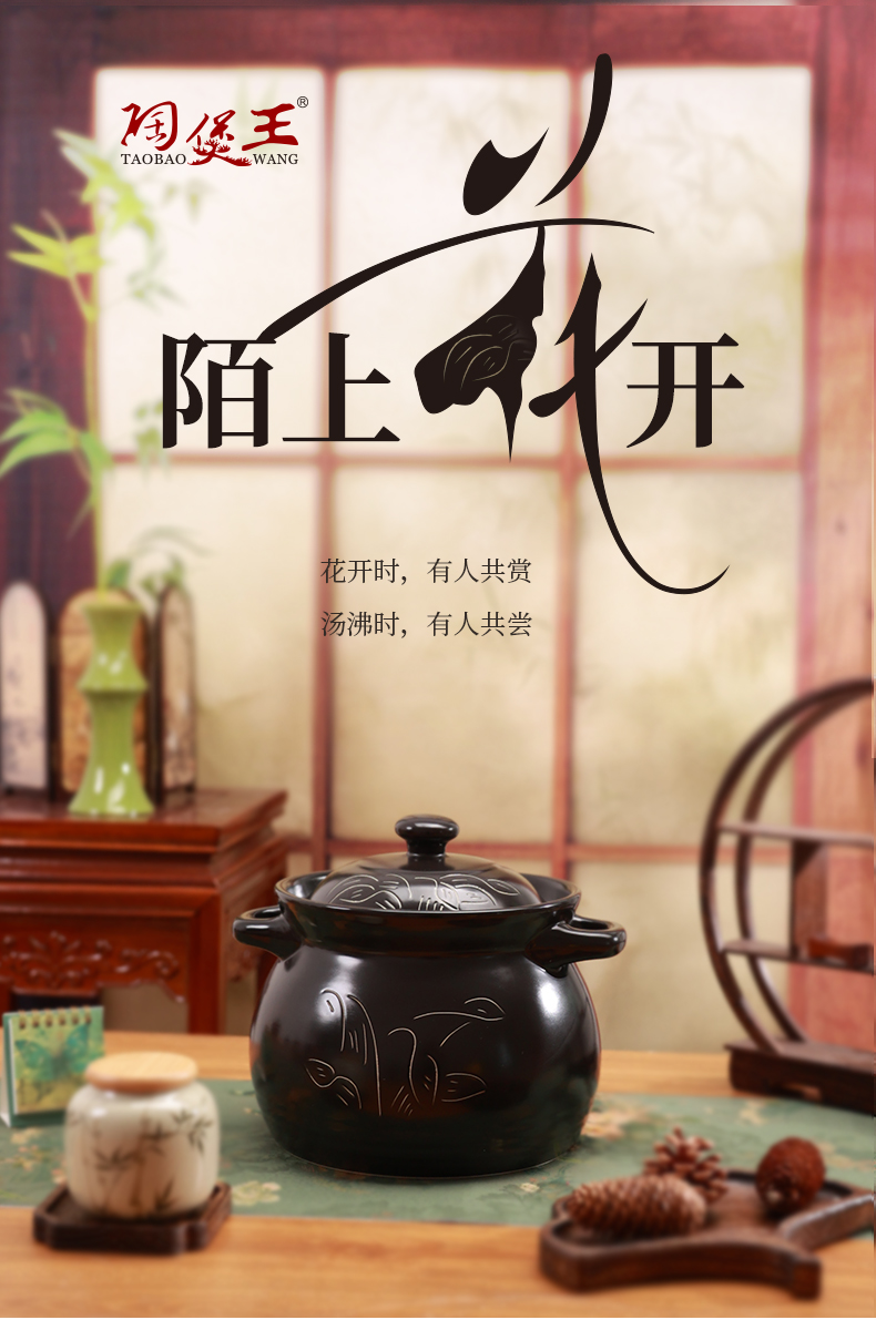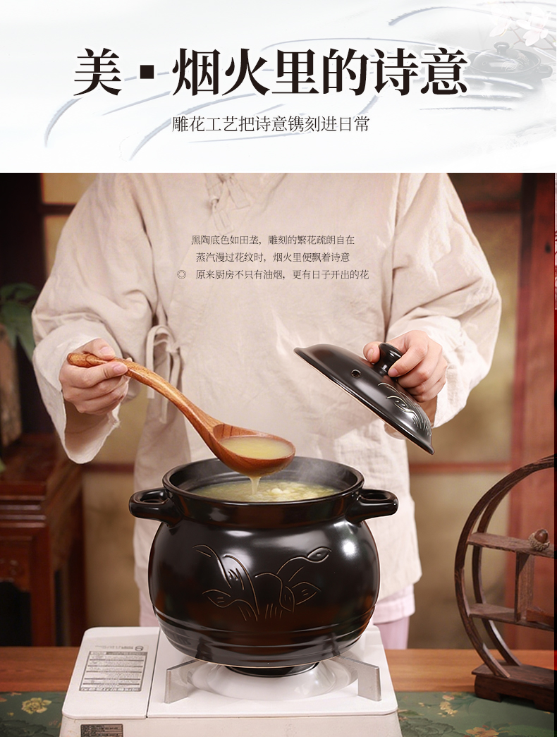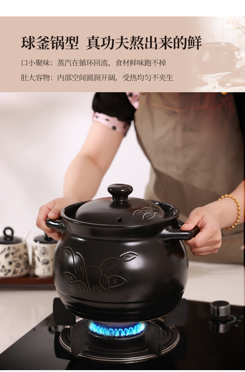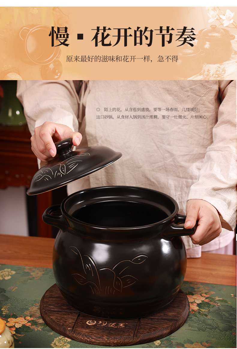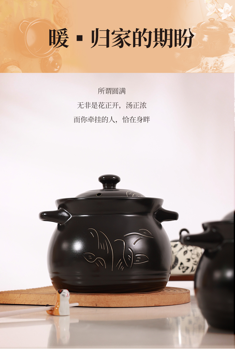 【陌上花开焖煲】陶煲王雕花耐热陶瓷煲炖锅家用明火健康汤煲瓦罐保温砂锅土沙锅
