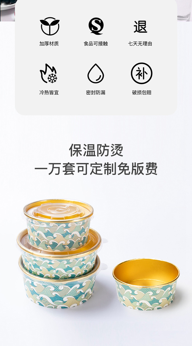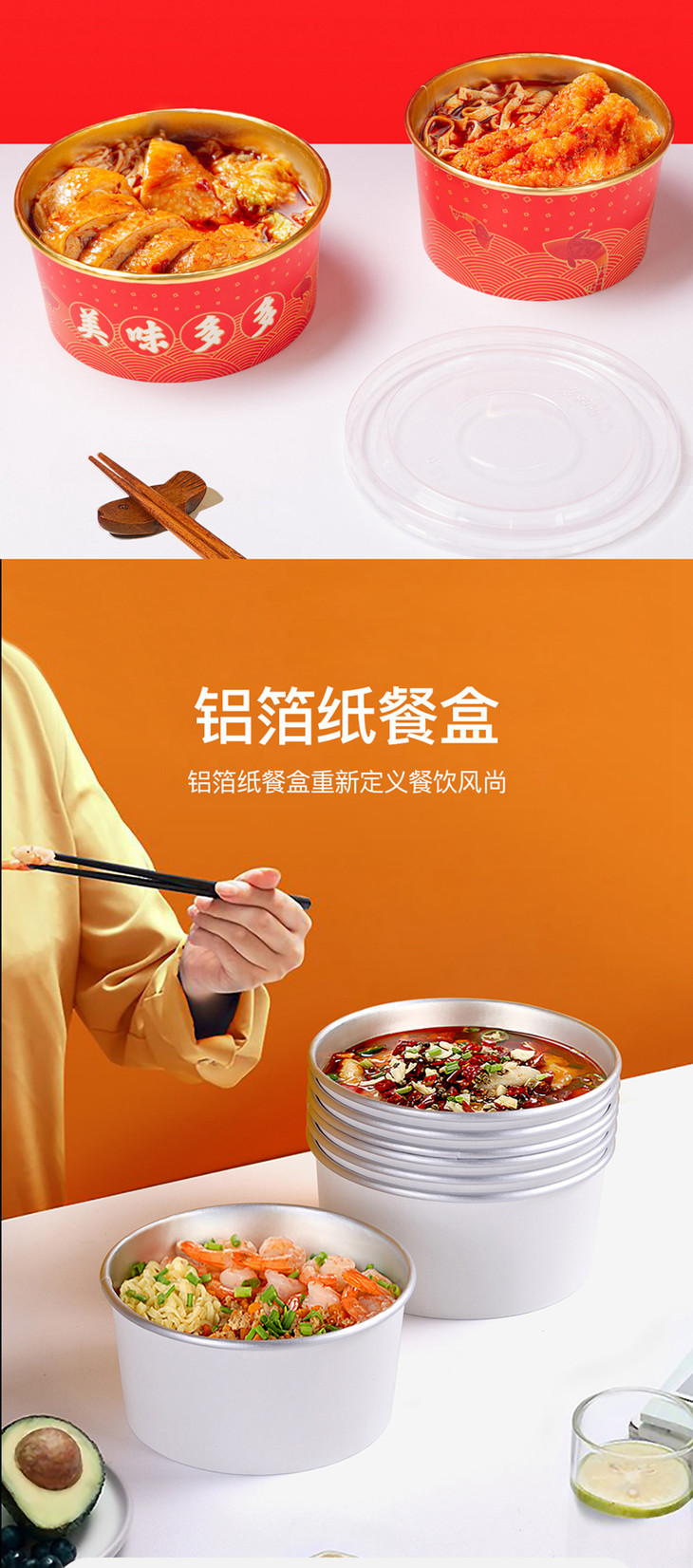 喇叭花 一次性锡箔纸碗加厚餐盒金箔一次性纸碗圆形锡纸碗外卖打包盒铝膜