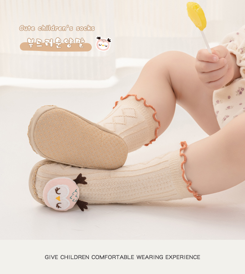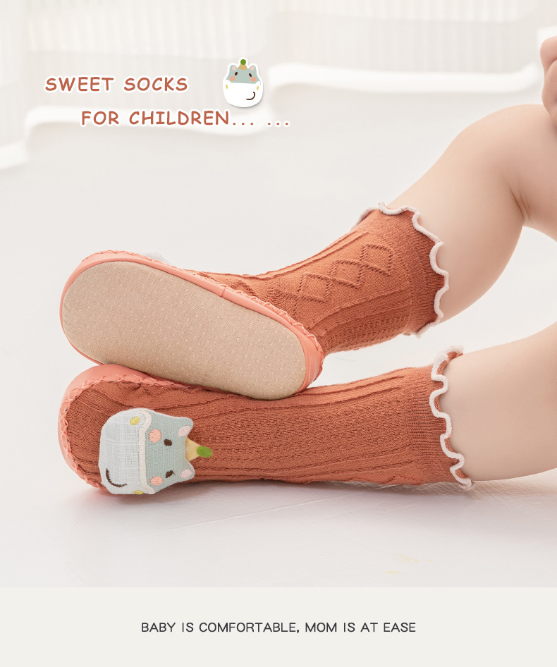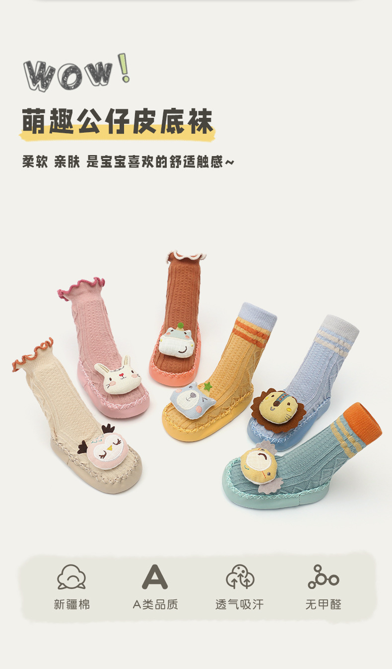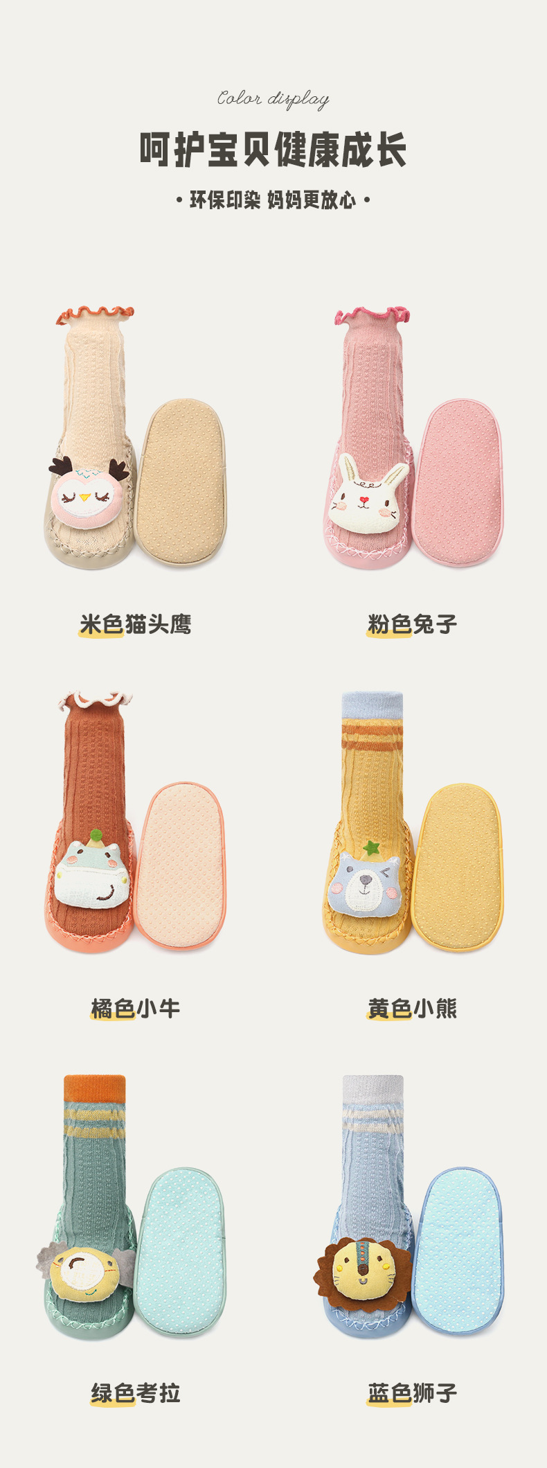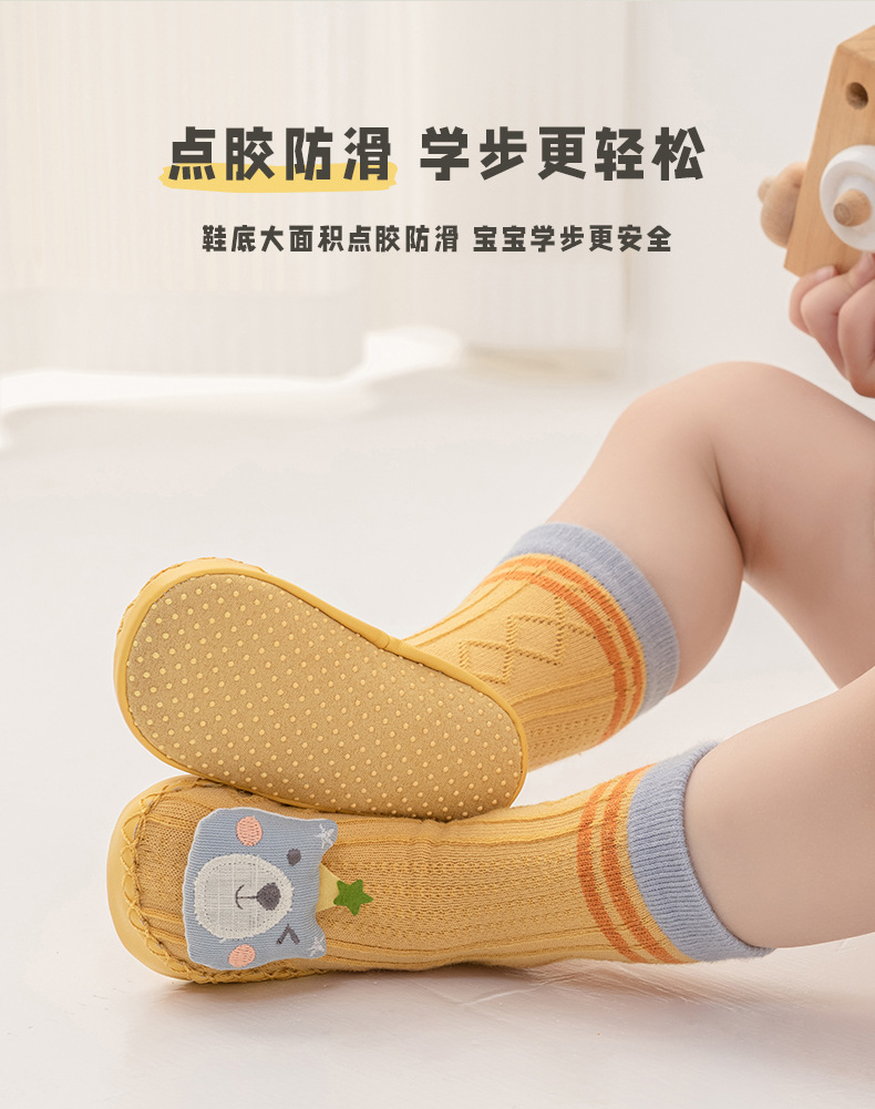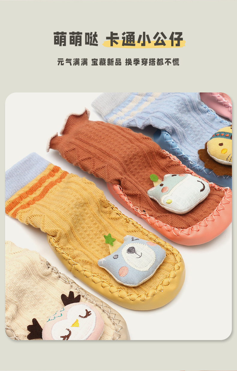【2双装 点胶防滑 学步更轻松】23秋冬卷边卡通宝宝学步鞋婴幼儿小童点胶地板袜子萌趣公仔皮底袜