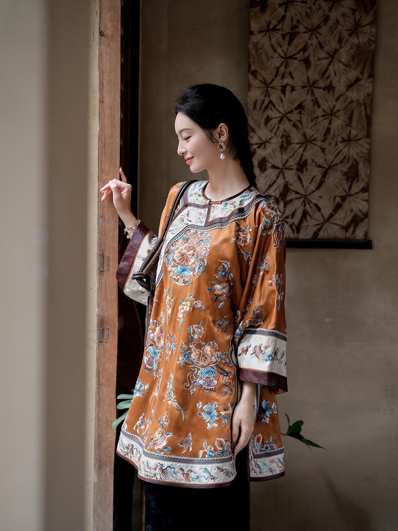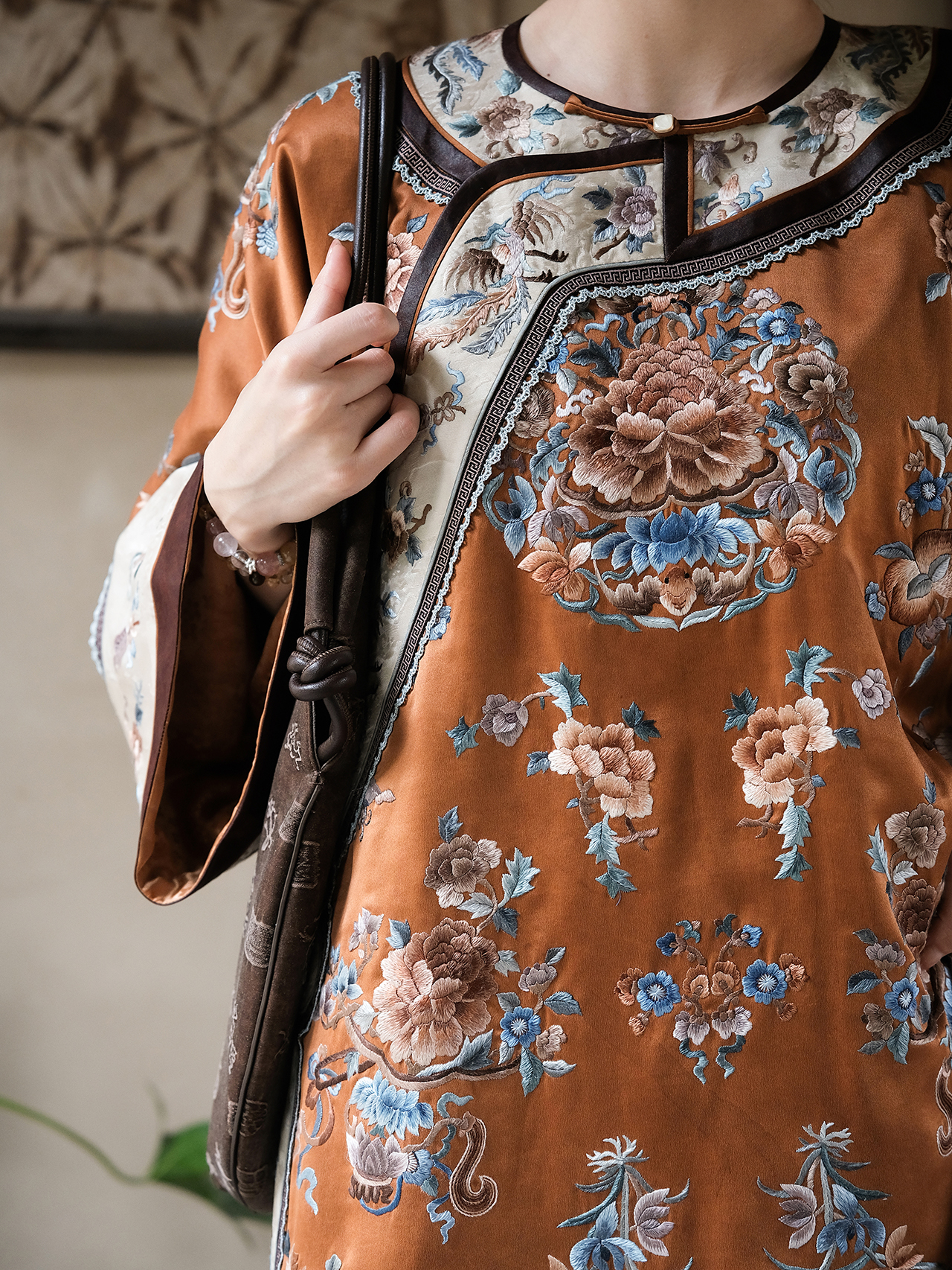 盛唐牡丹盛奢系列|真丝香云纱斜襟牡丹团纹手绣外套-橘色(特殊商品不退不换)