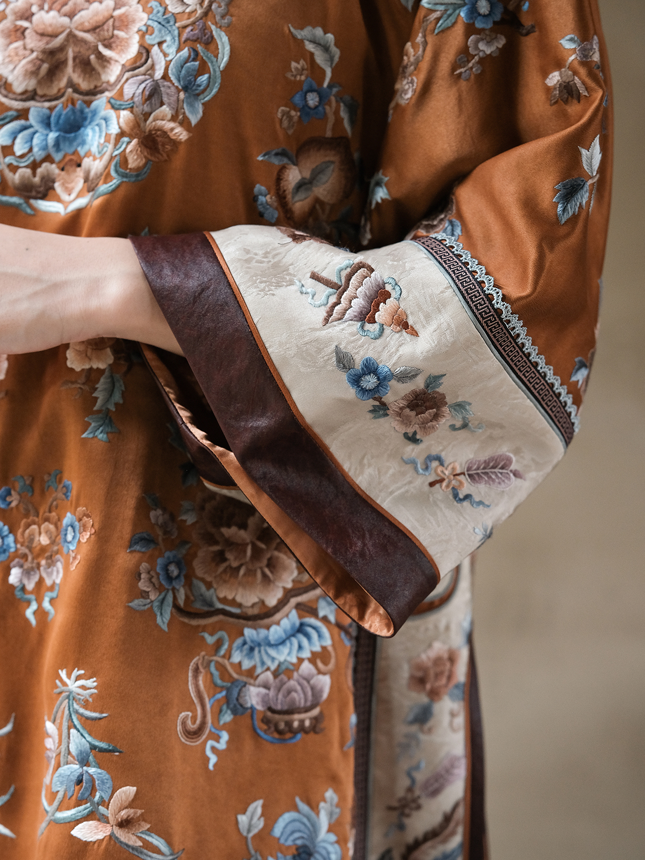 盛唐牡丹 |老工艺花蕾缎真丝马甲正反两穿