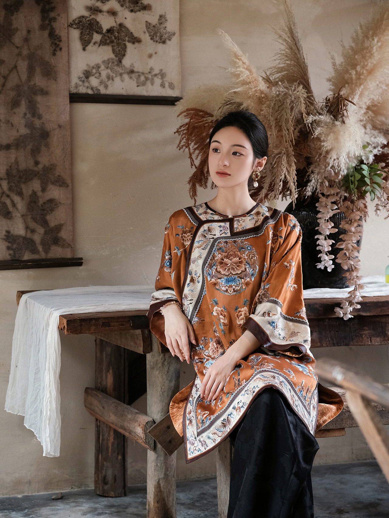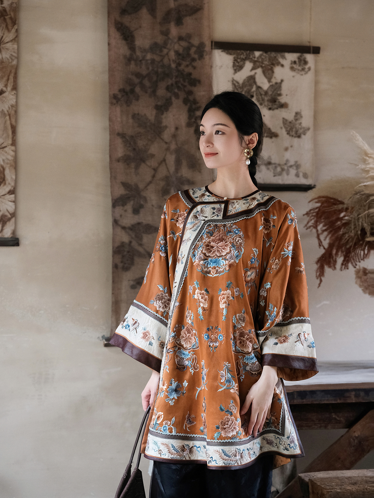 盛唐牡丹 |真丝提花梅兰竹菊外套/可正反两穿
