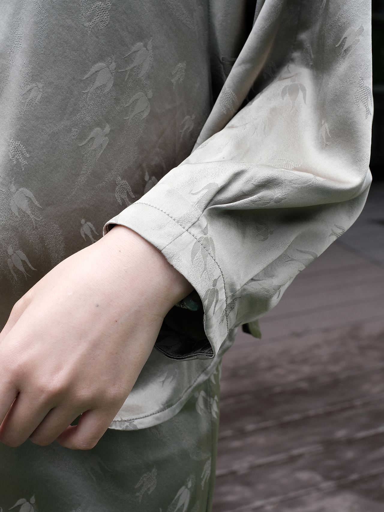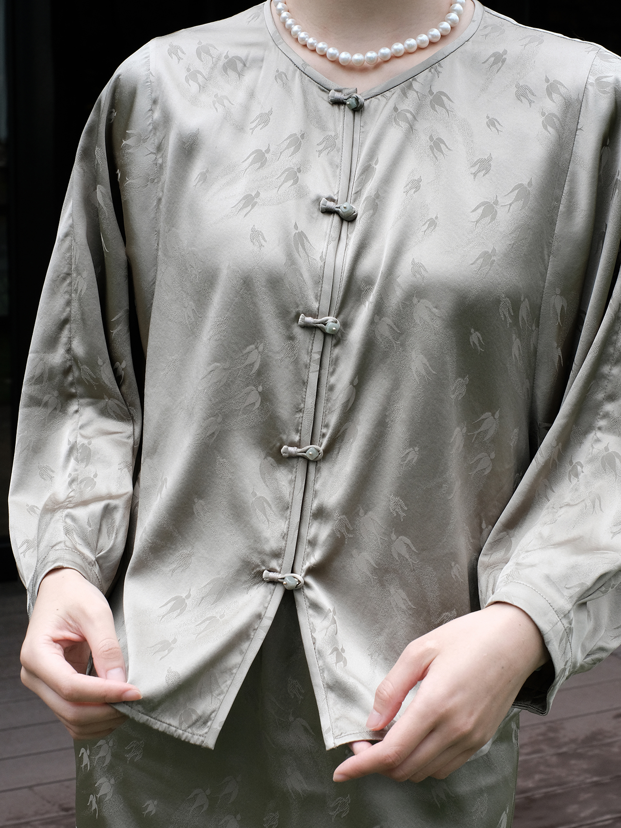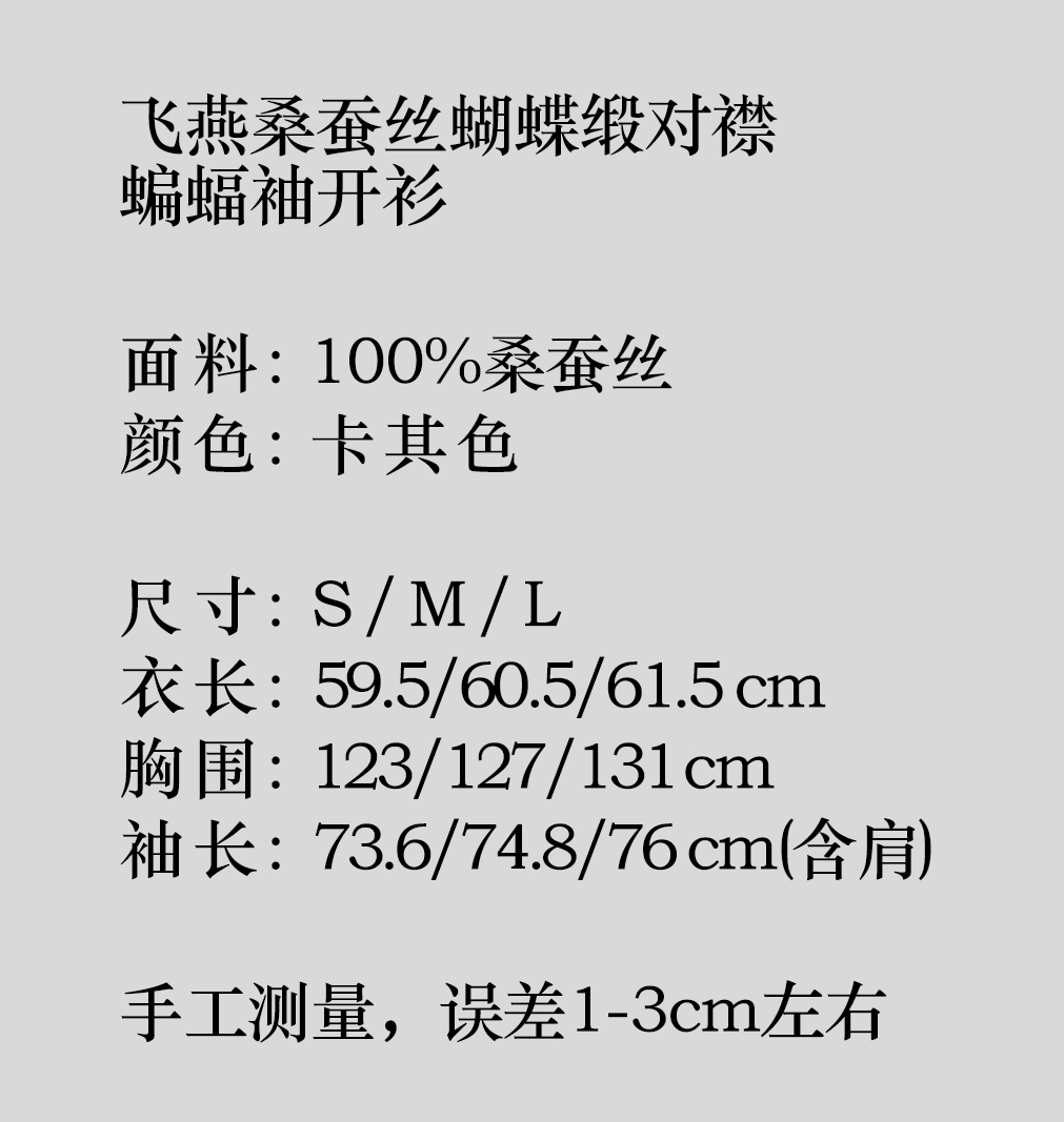 盛唐婧|飞燕桑蚕丝蝴蝶缎对襟蝙蝠袖开衫-卡其色