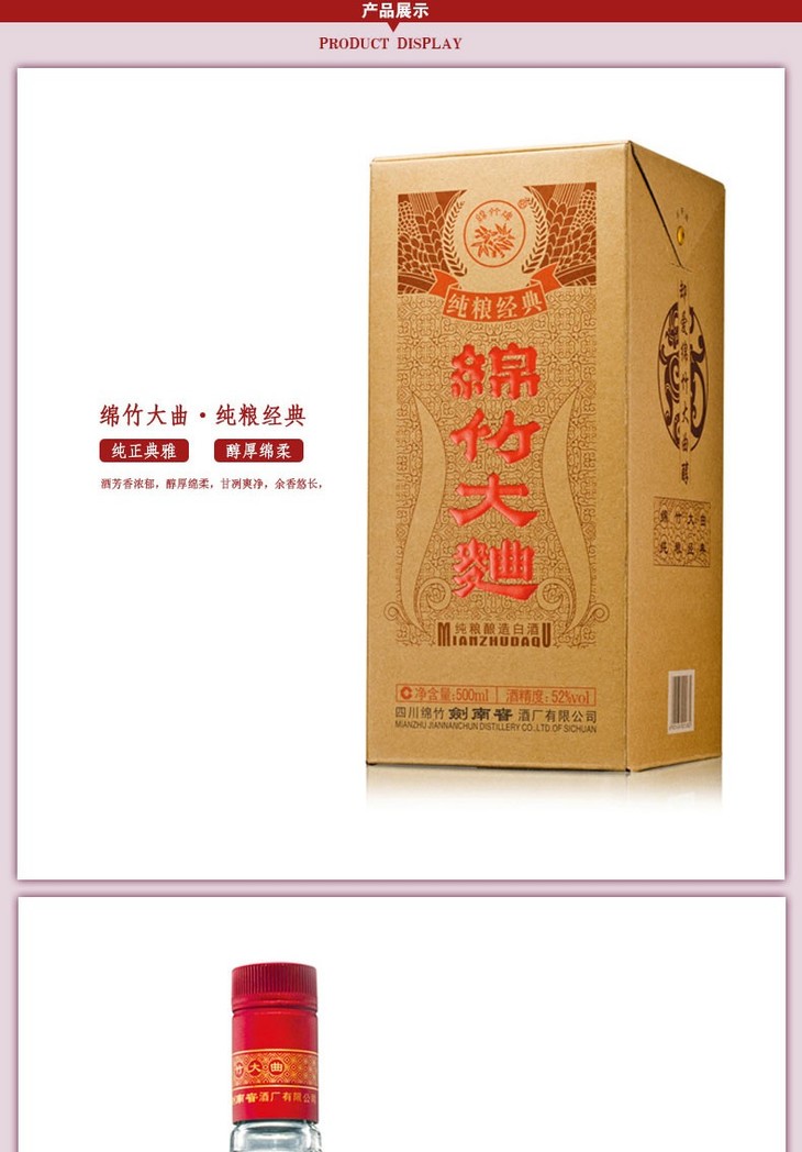 剑南春 纯粮经典绵竹大曲 52度 500ml/瓶