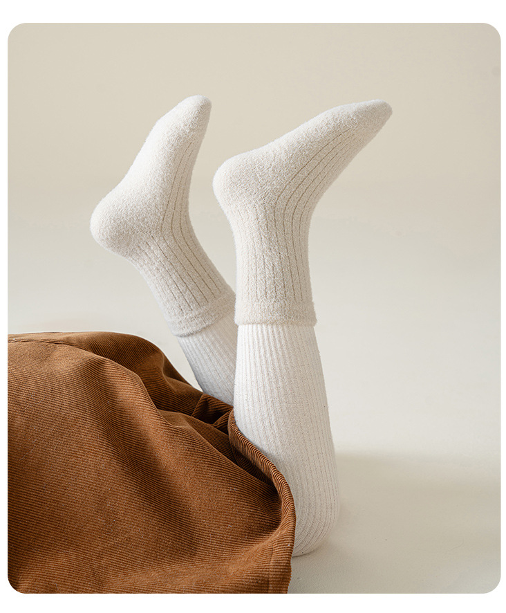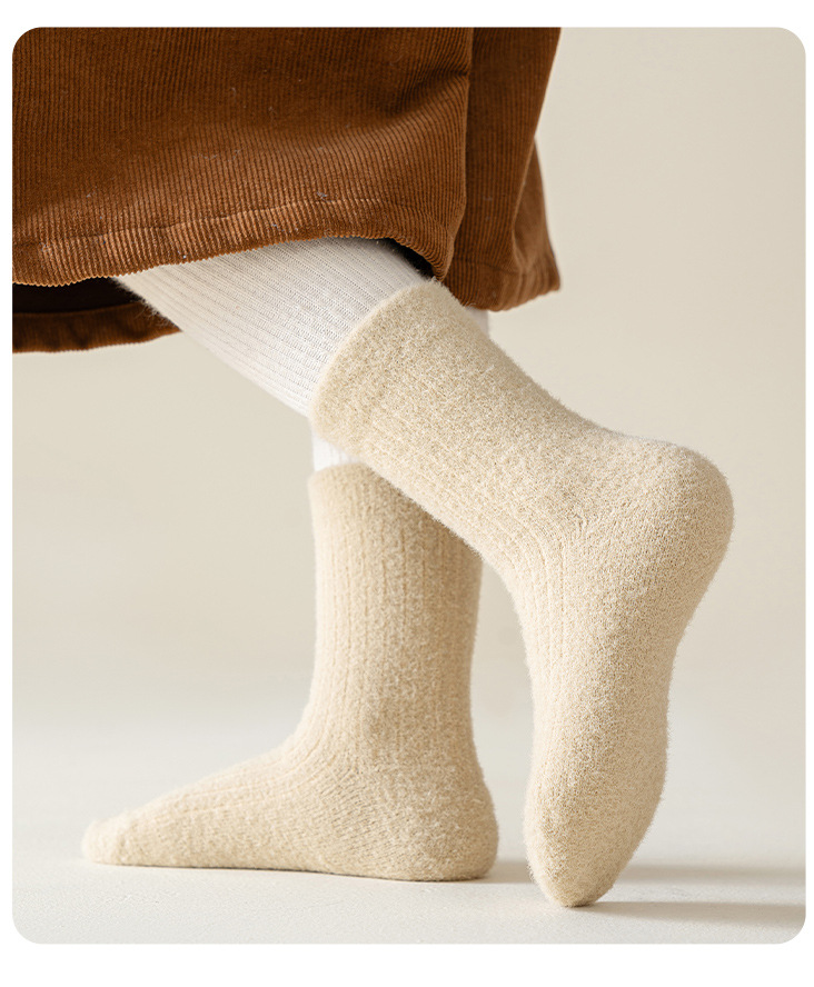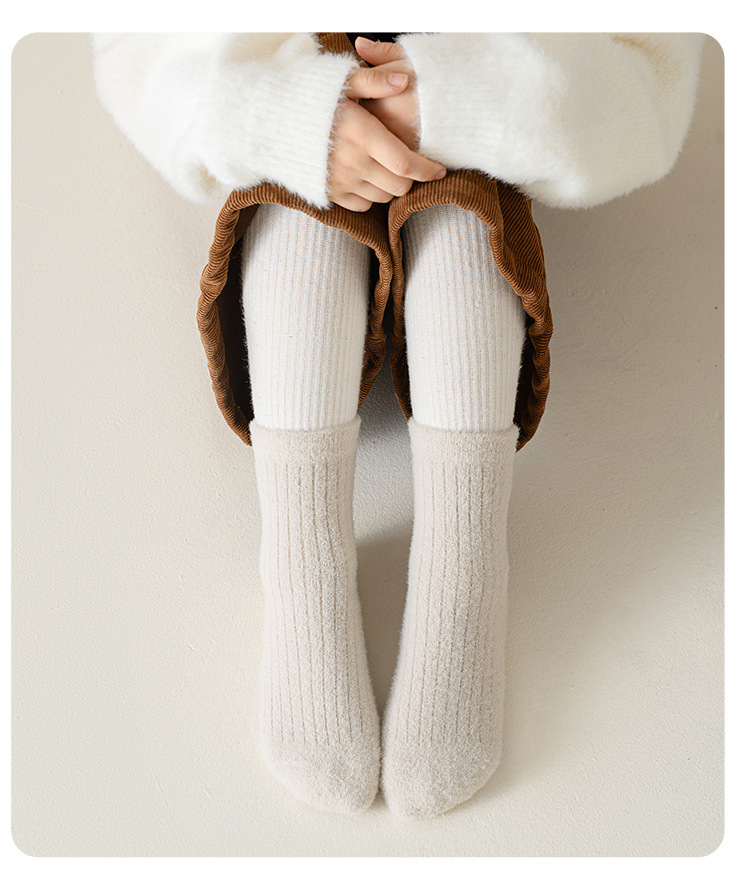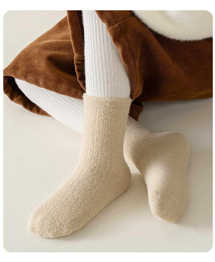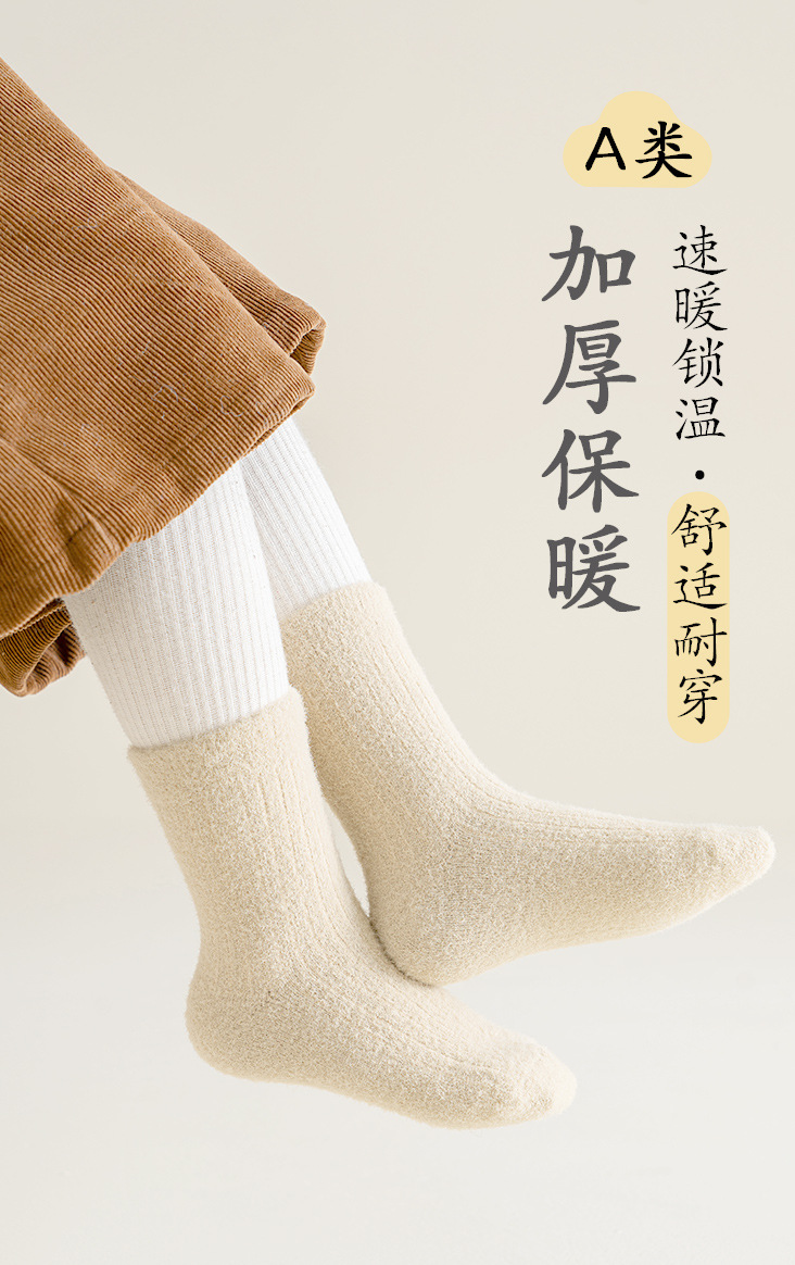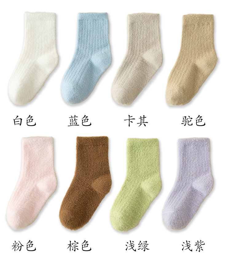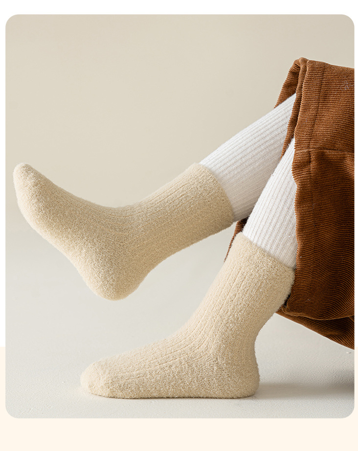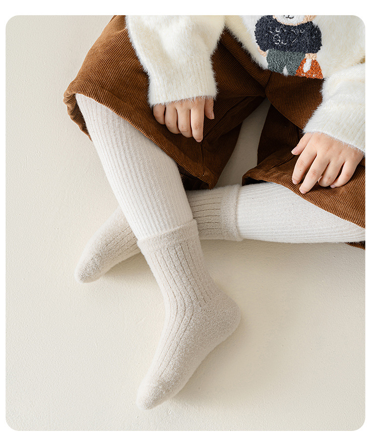 【宝妈推荐❗️儿童暖绒袜】A类标准「宝宝放心贴身穿着」加宽袜口/高弹不勒,表里如一舒适不硌脚趾头,冬季加绒加厚儿童保暖袜,纯色抽条中筒袜男女童,毛绒袜雪地袜暖绒袜L