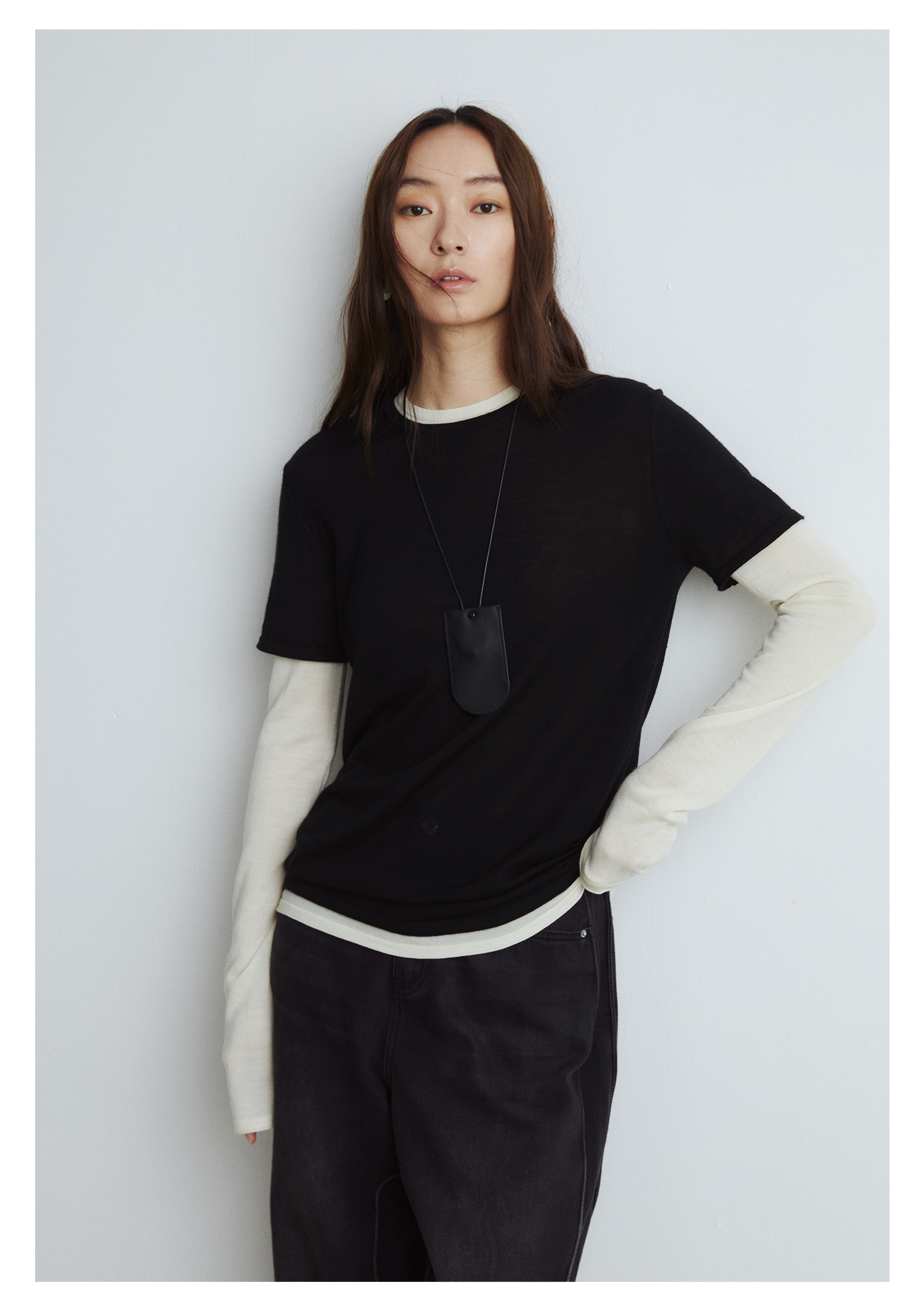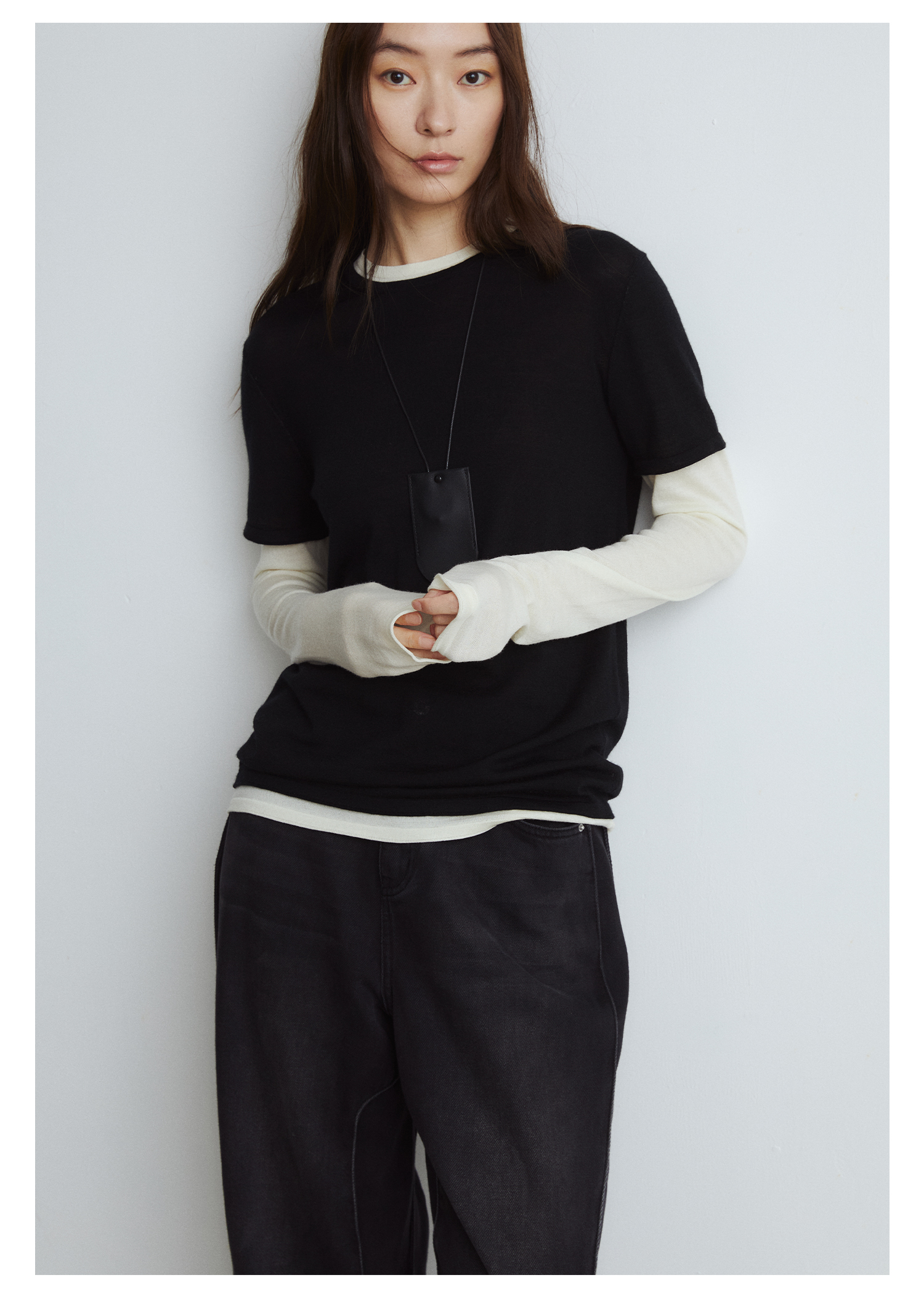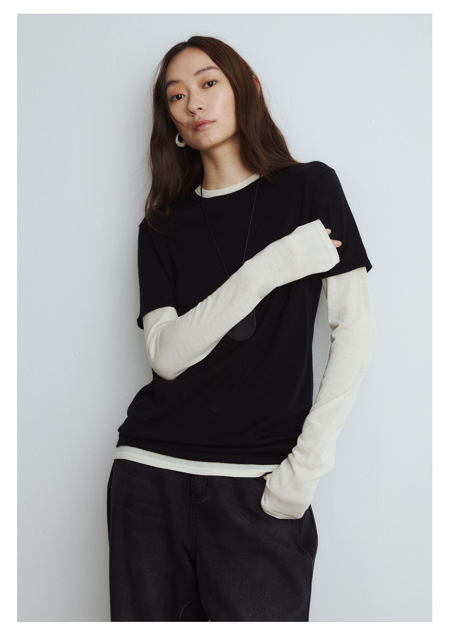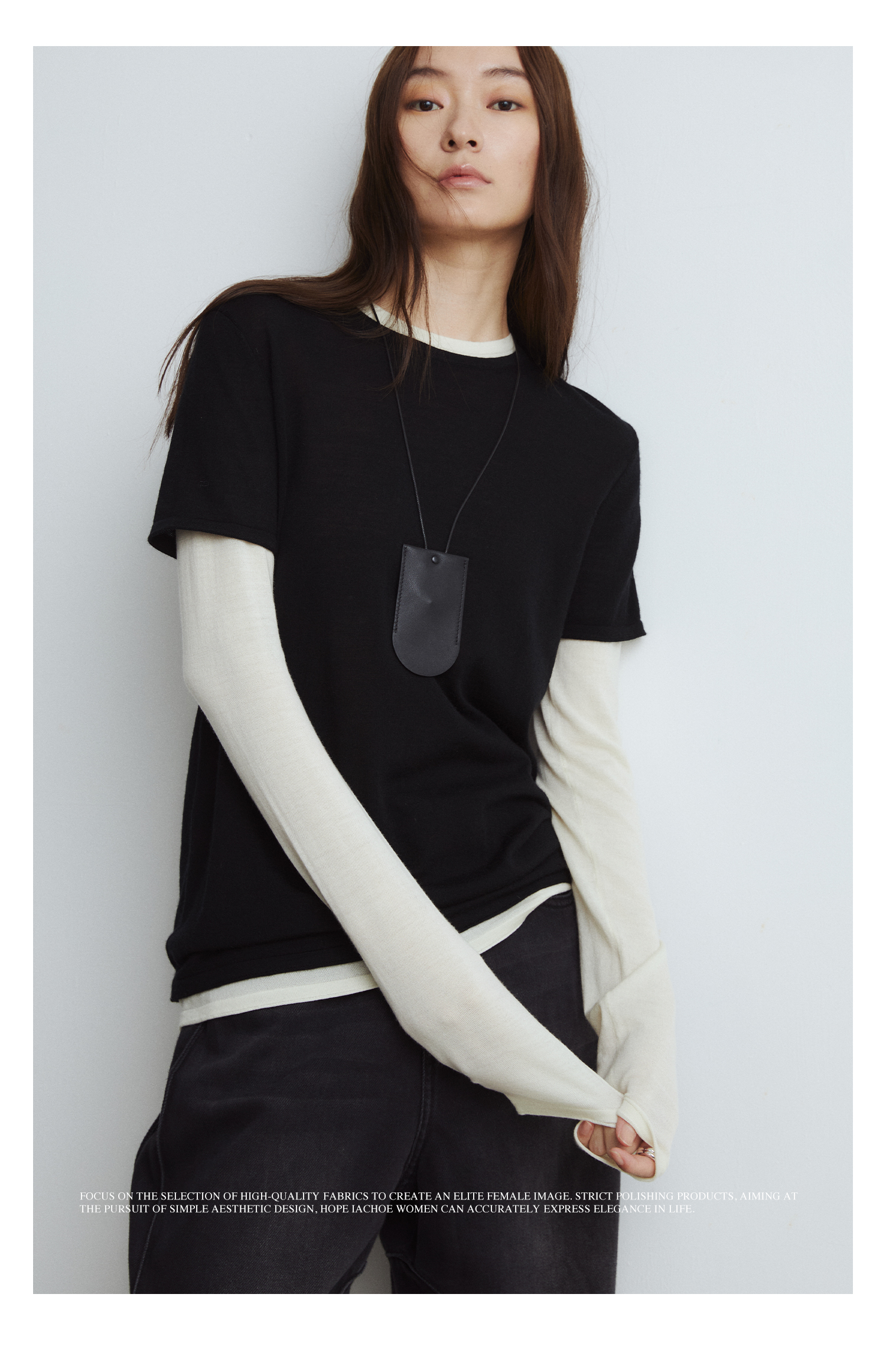 棉仓3571505003-早秋新品长袖假两件针织衫 外穿打底两用拼色100%羊毛毛衣