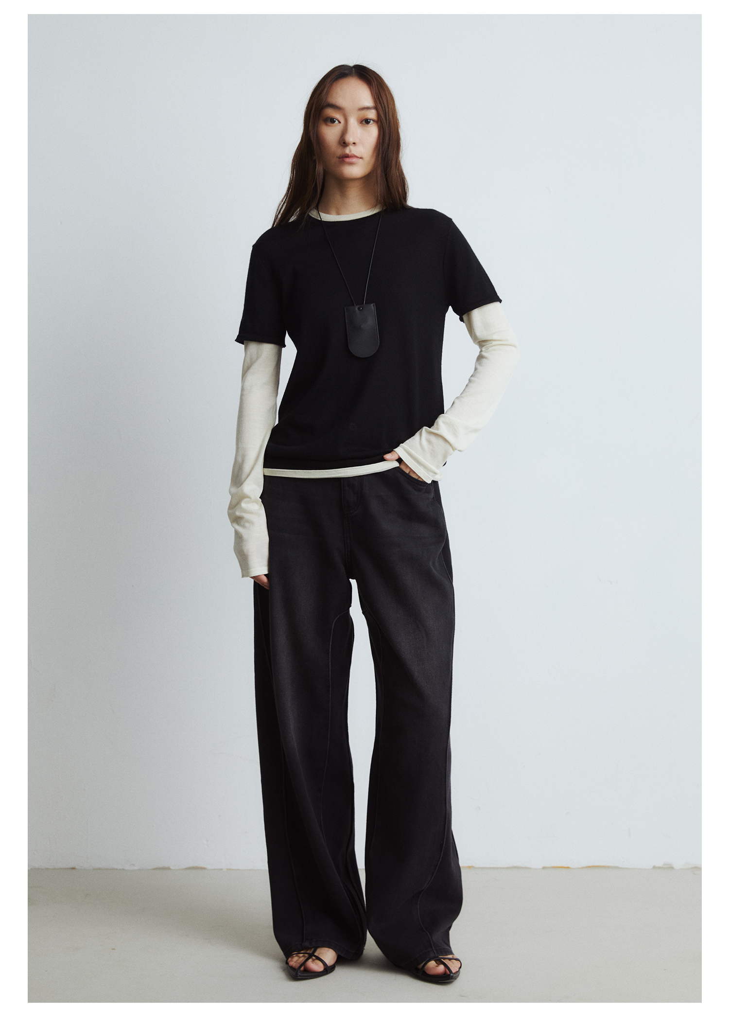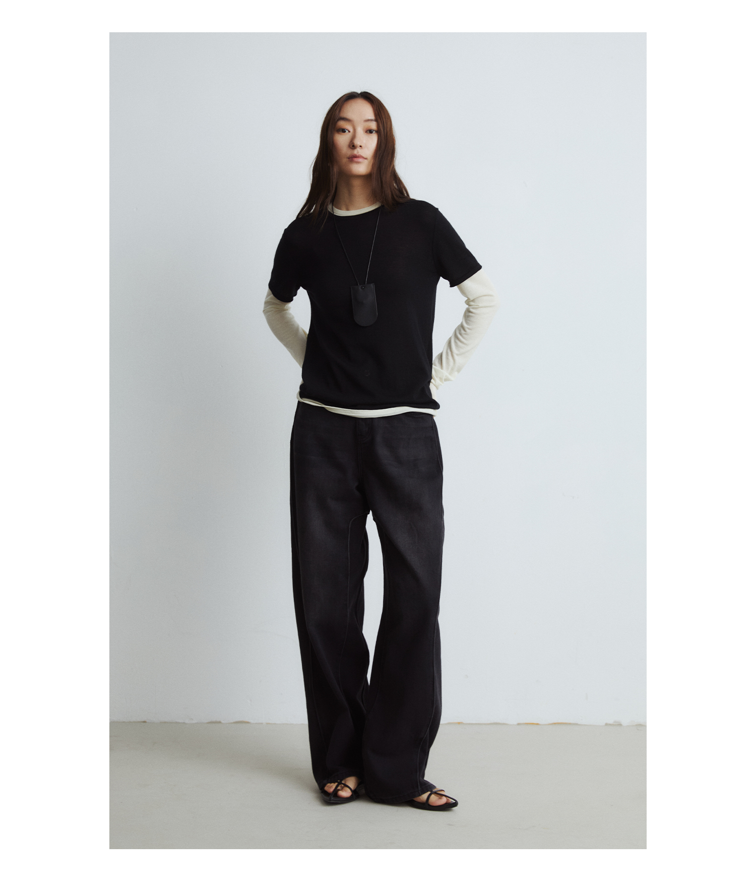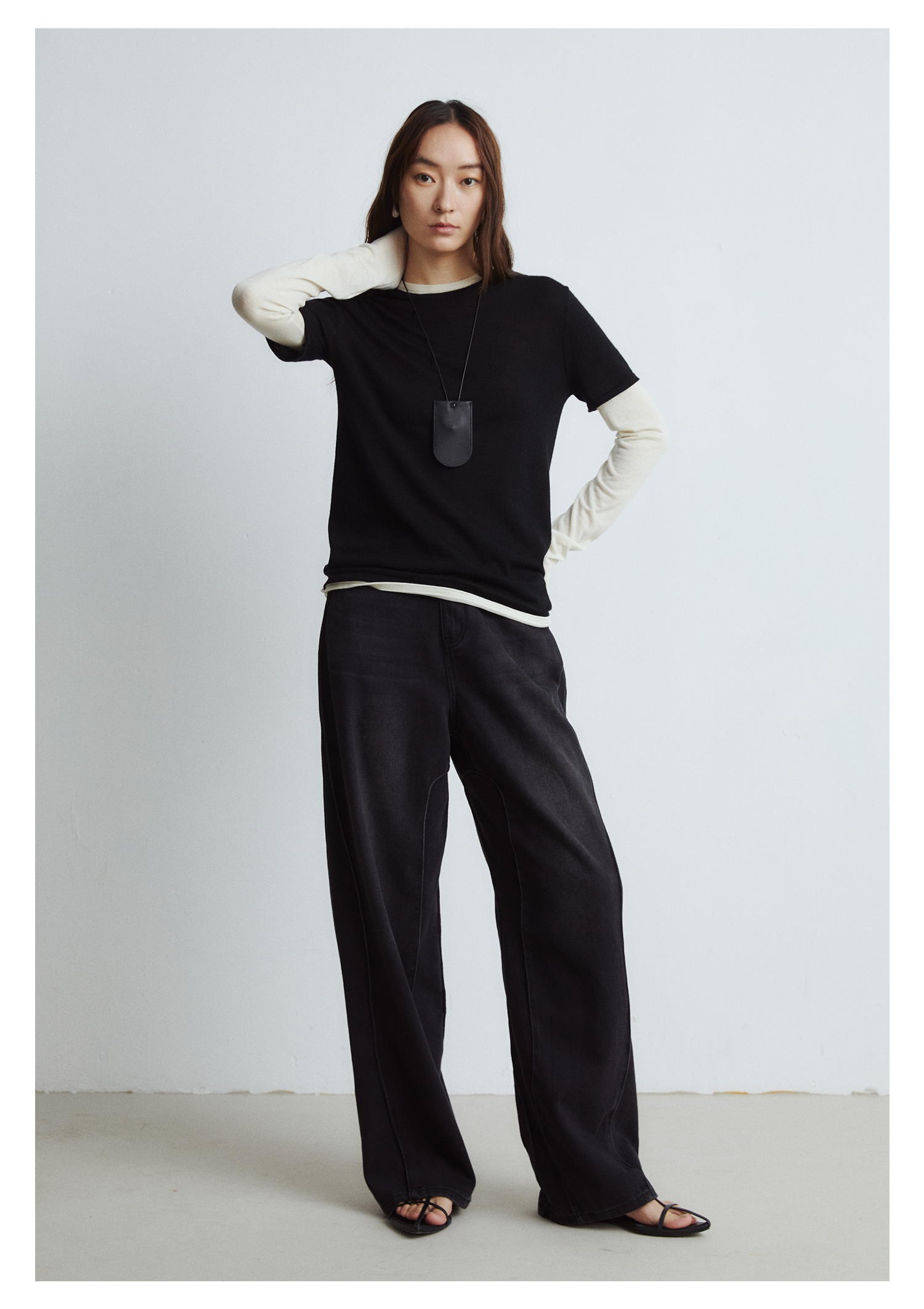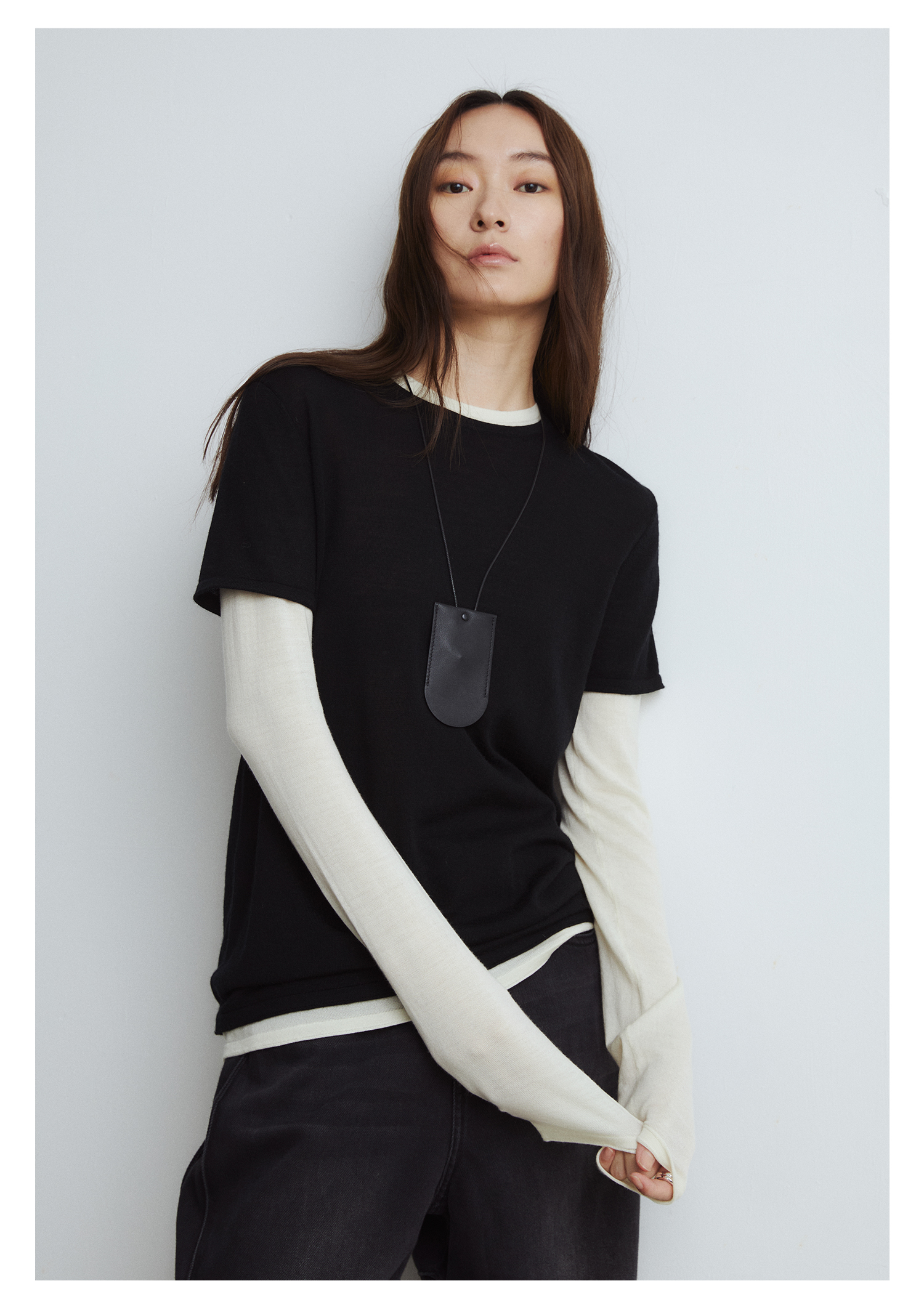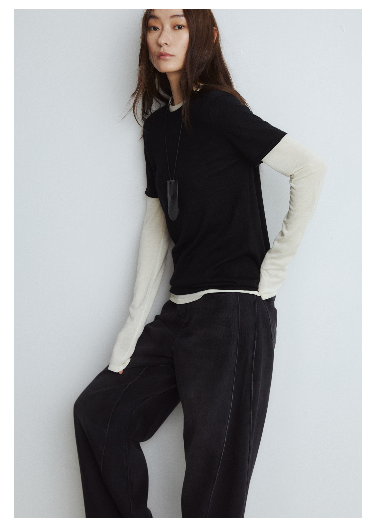 棉仓3571505003-早秋新品长袖假两件针织衫 外穿打底两用拼色100%羊毛毛衣