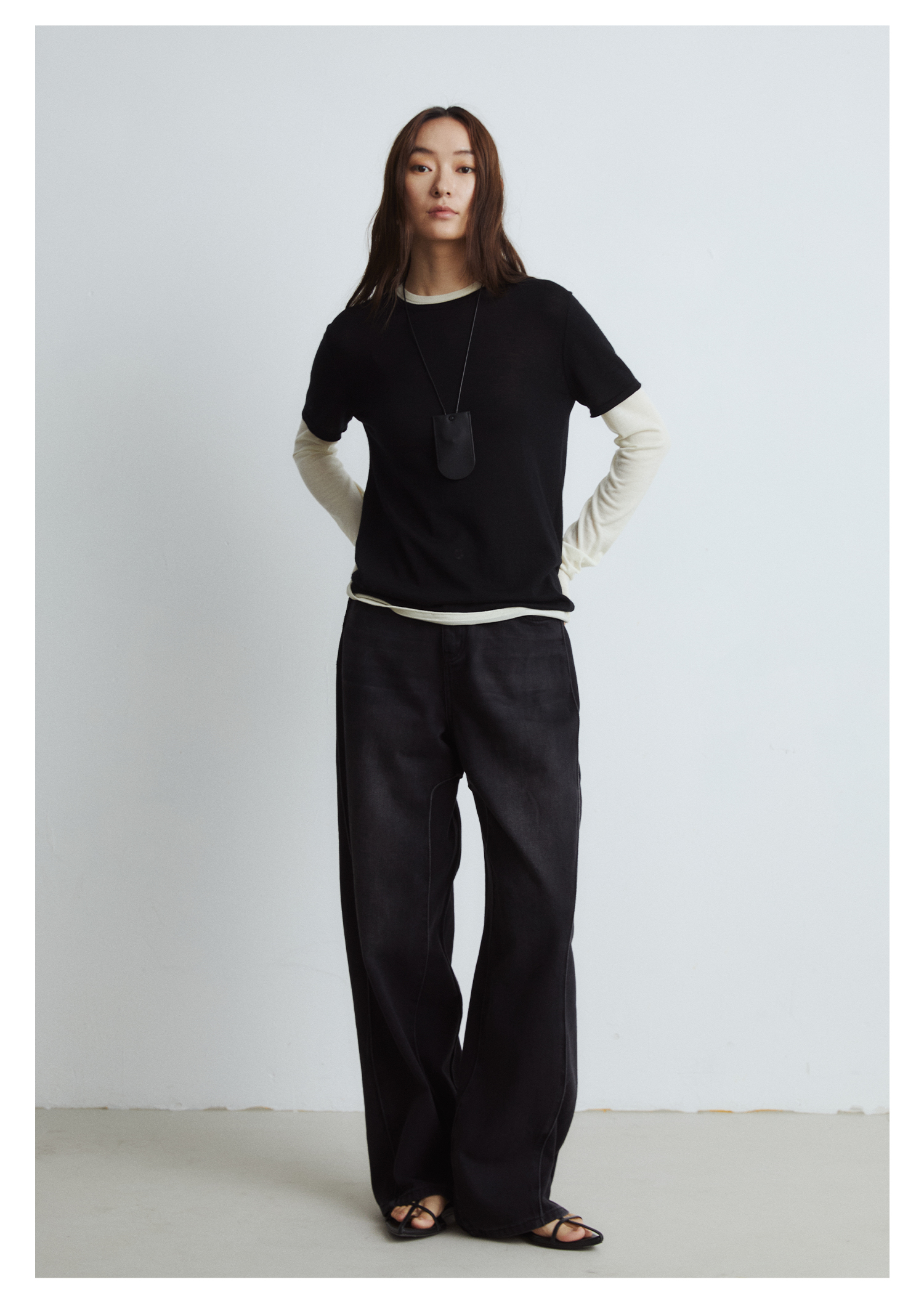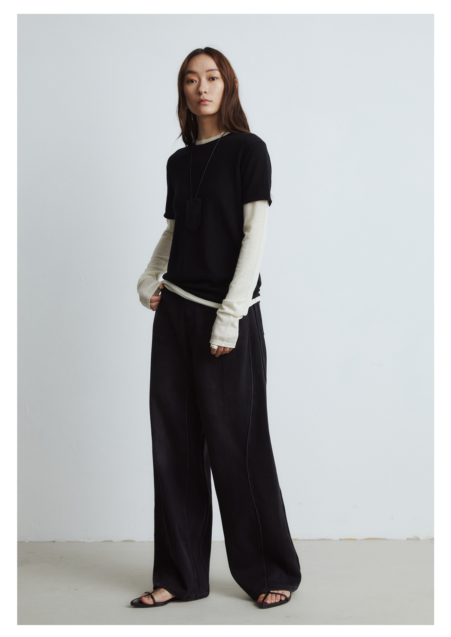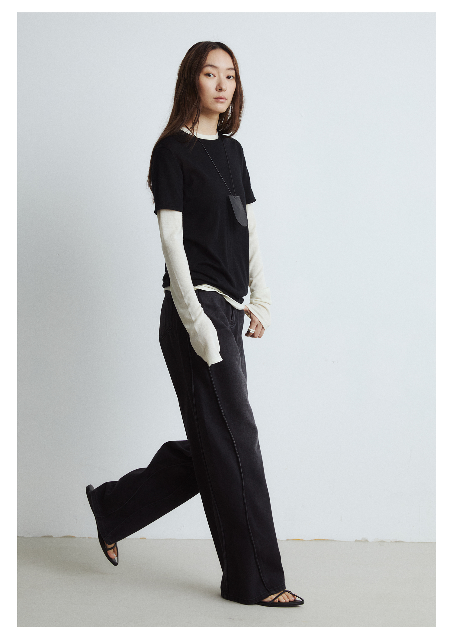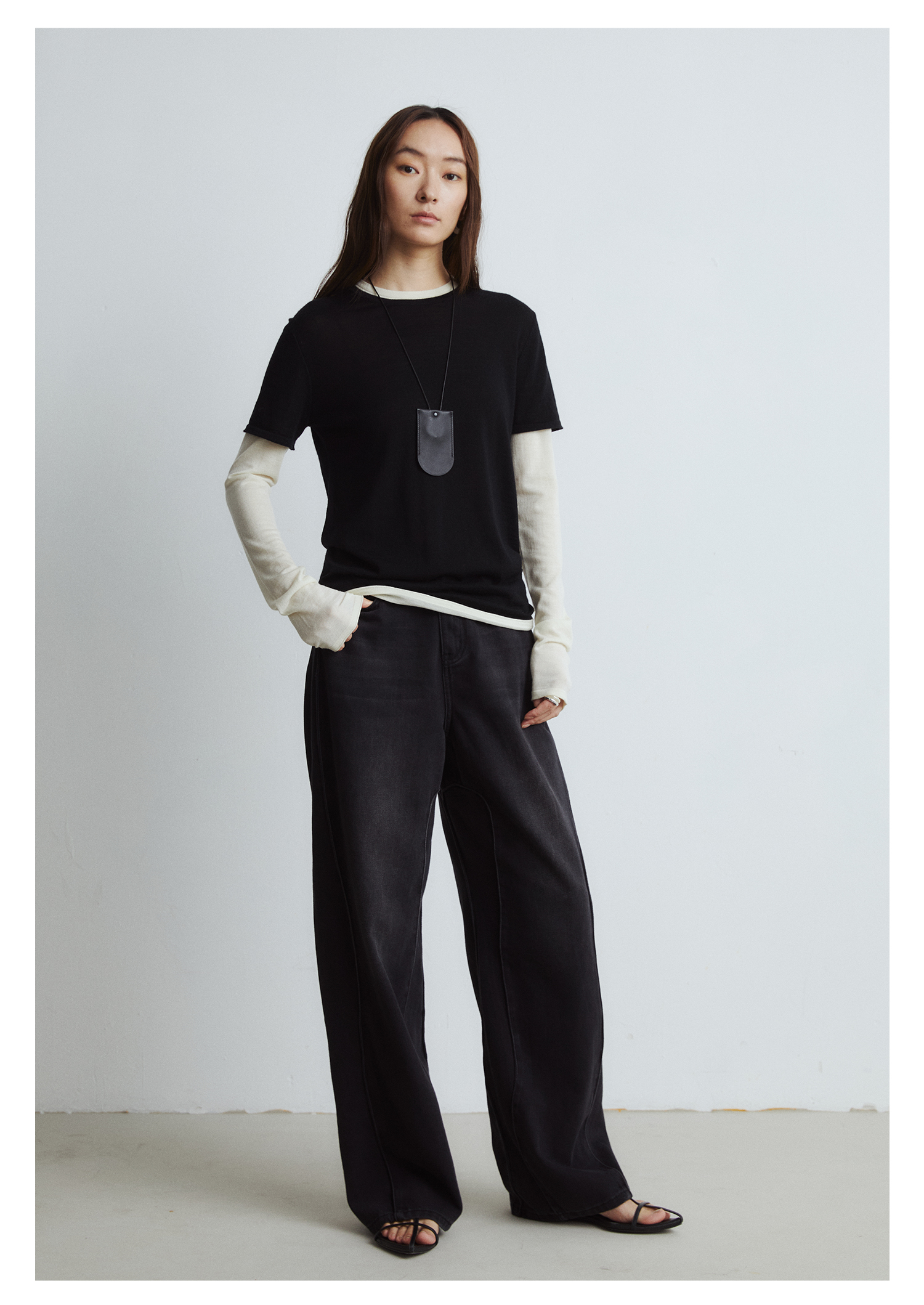棉仓3571505003-早秋新品长袖假两件针织衫 外穿打底两用拼色100%羊毛毛衣