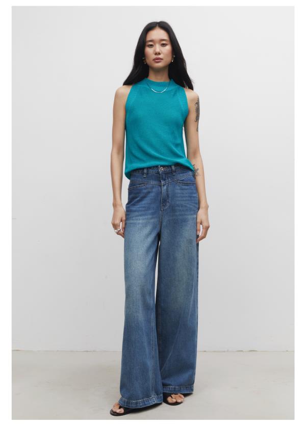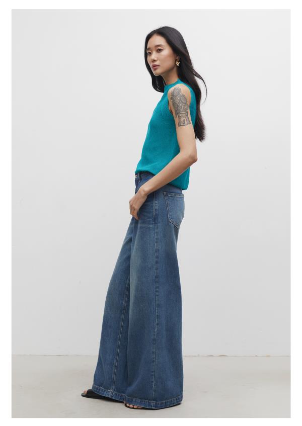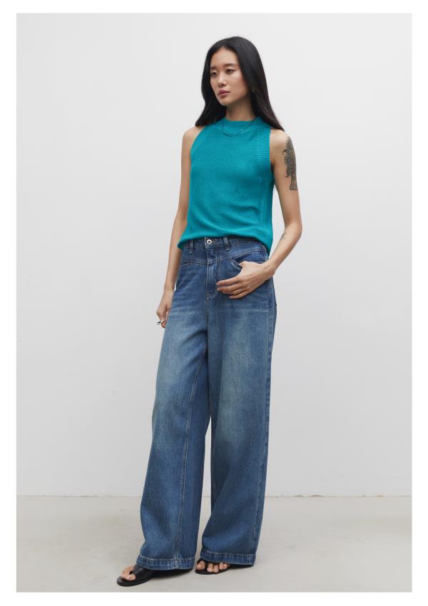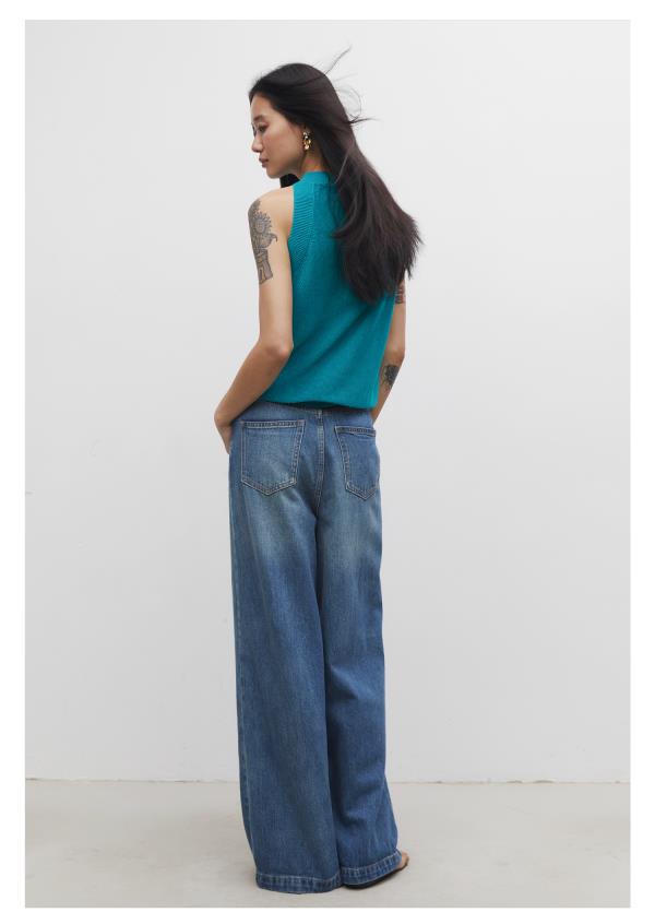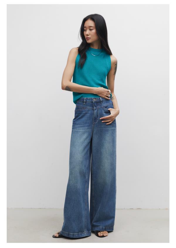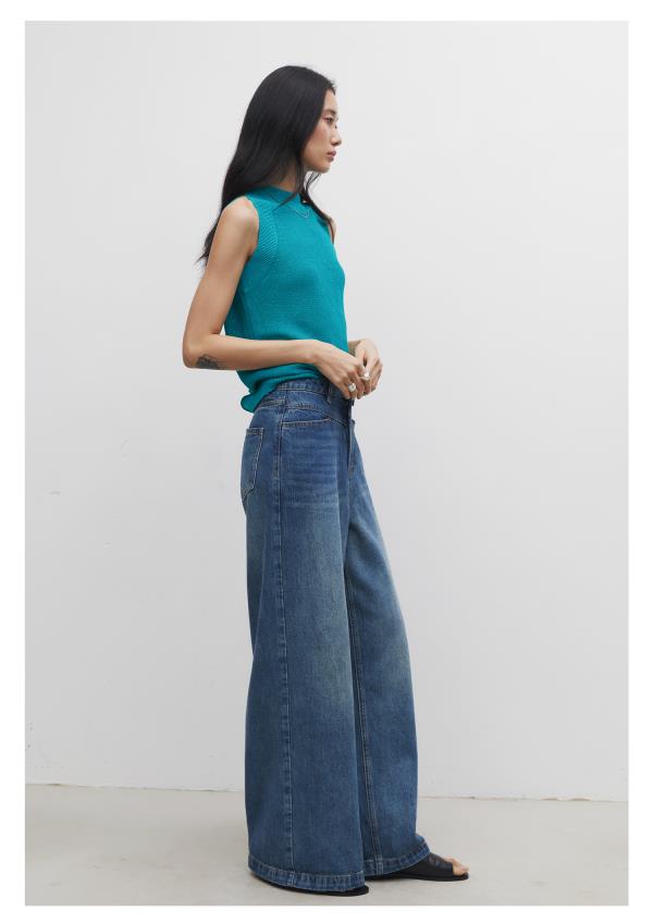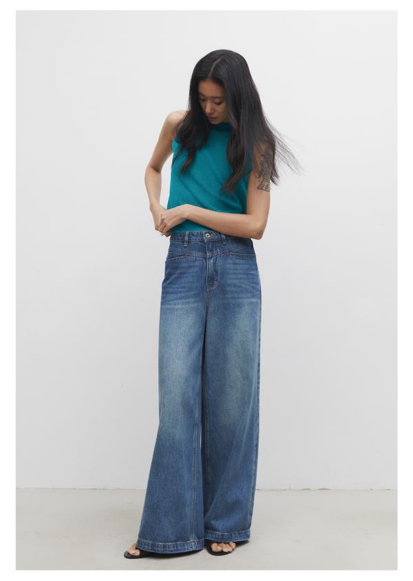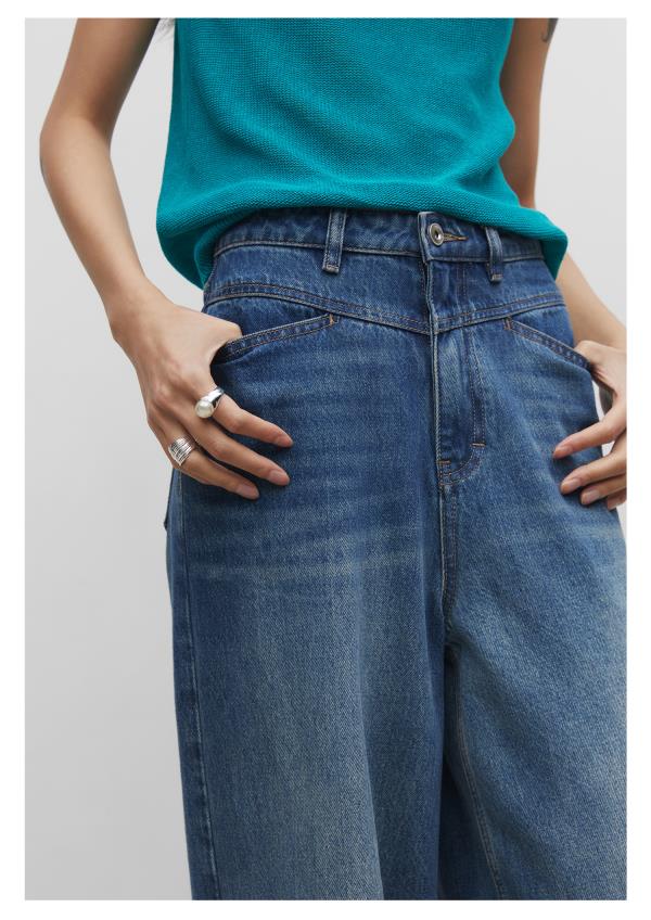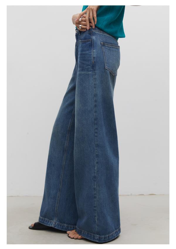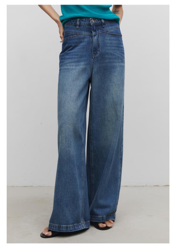 棉仓3521519003-IACHOE约克阔腿裤复古中高腰垂感直筒阔腿牛仔裤