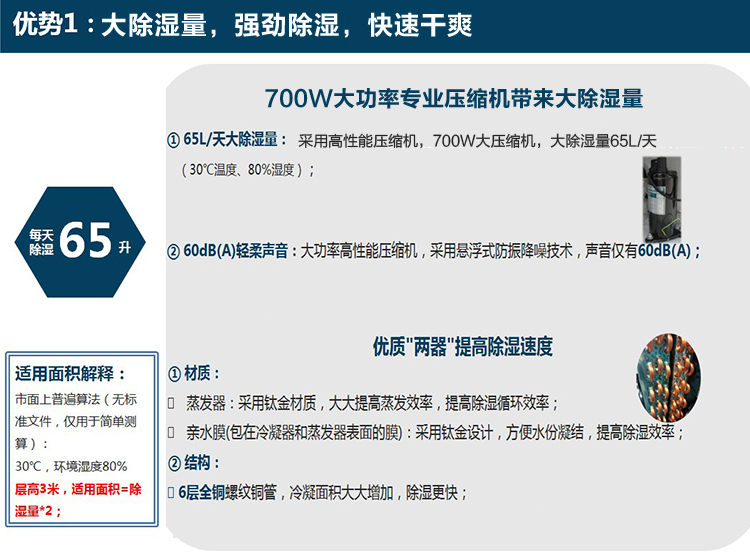 莱克(LEXY) 除湿机抽湿器别墅家用卧室办公室干衣地下室抽湿机除湿吸湿 除湿量65升/天 65L/天 DH650
