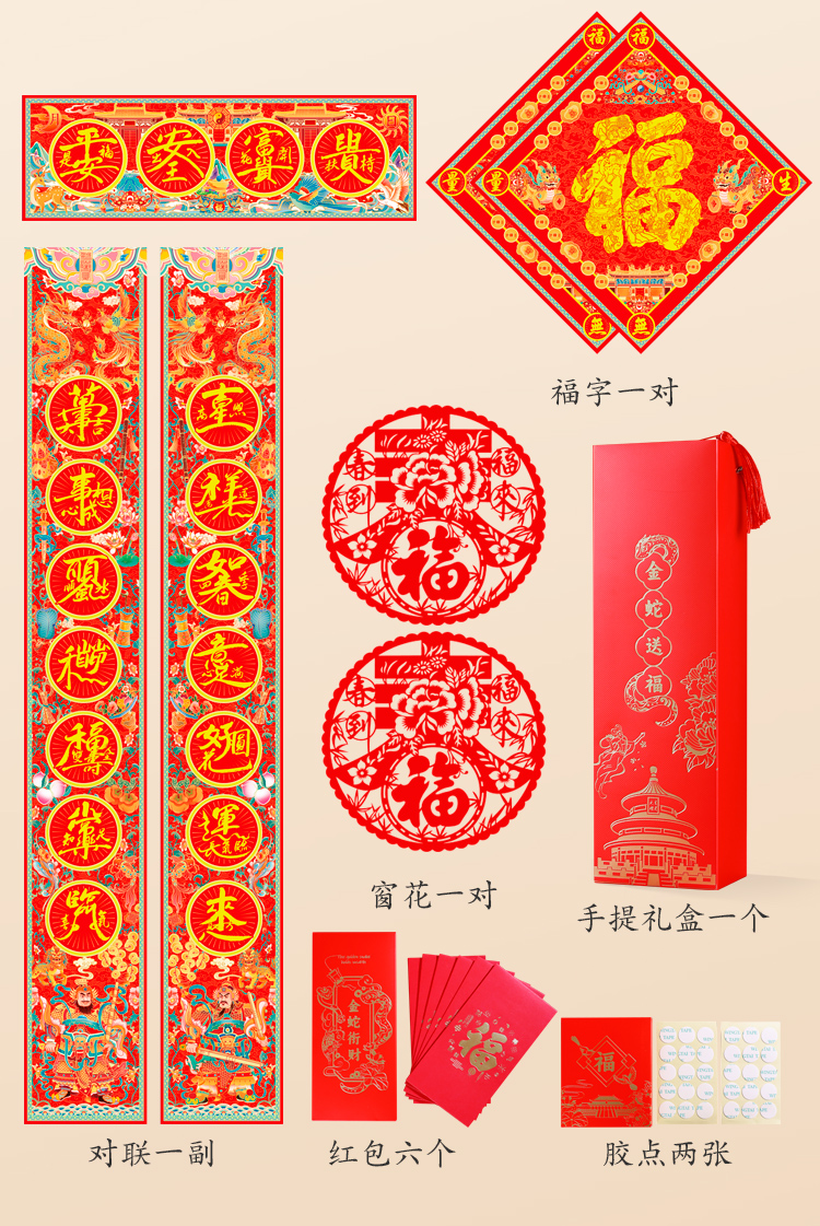 2025乙巳蛇年,金蛇送福春联礼盒套装,创意中国风春联