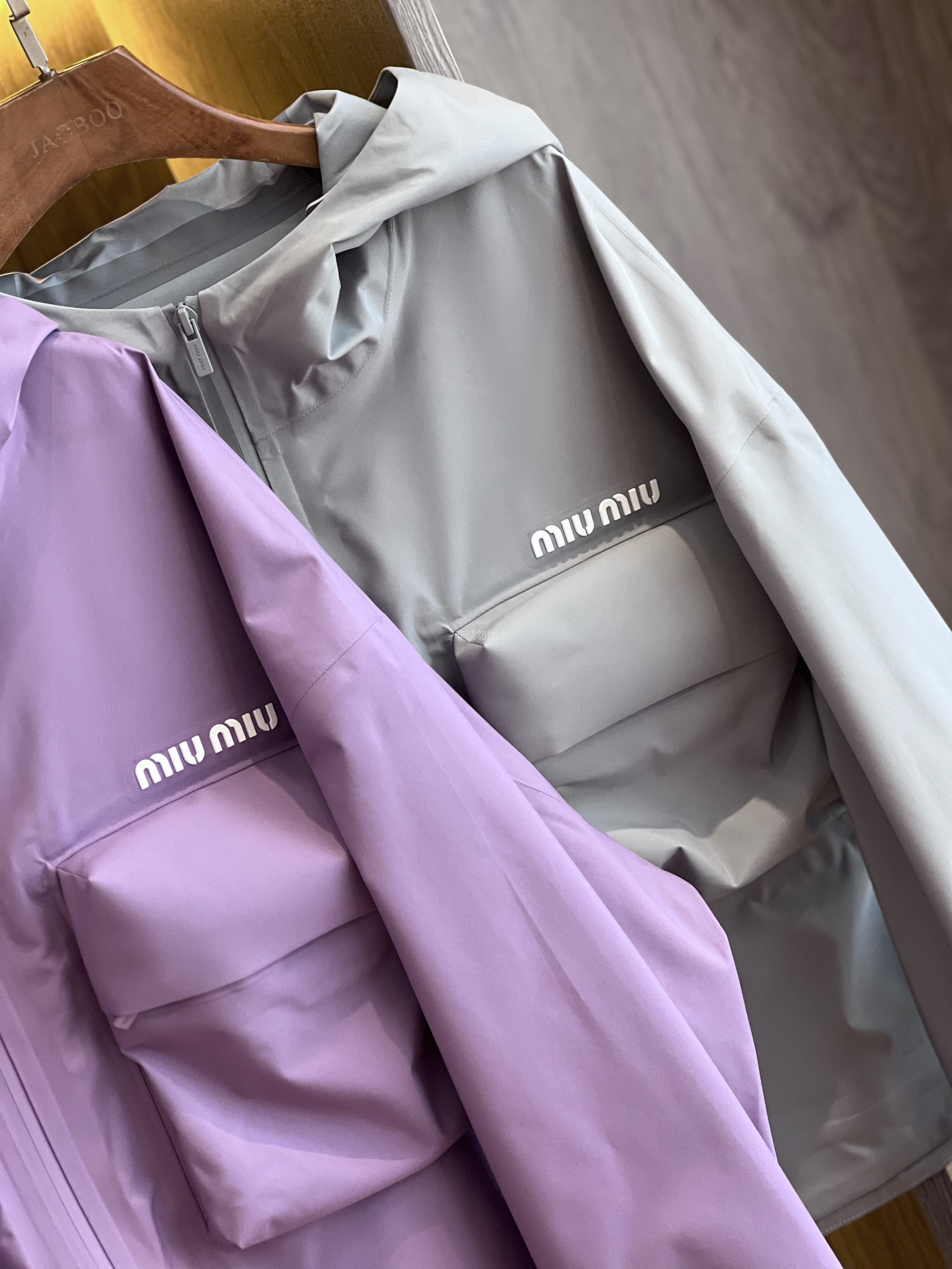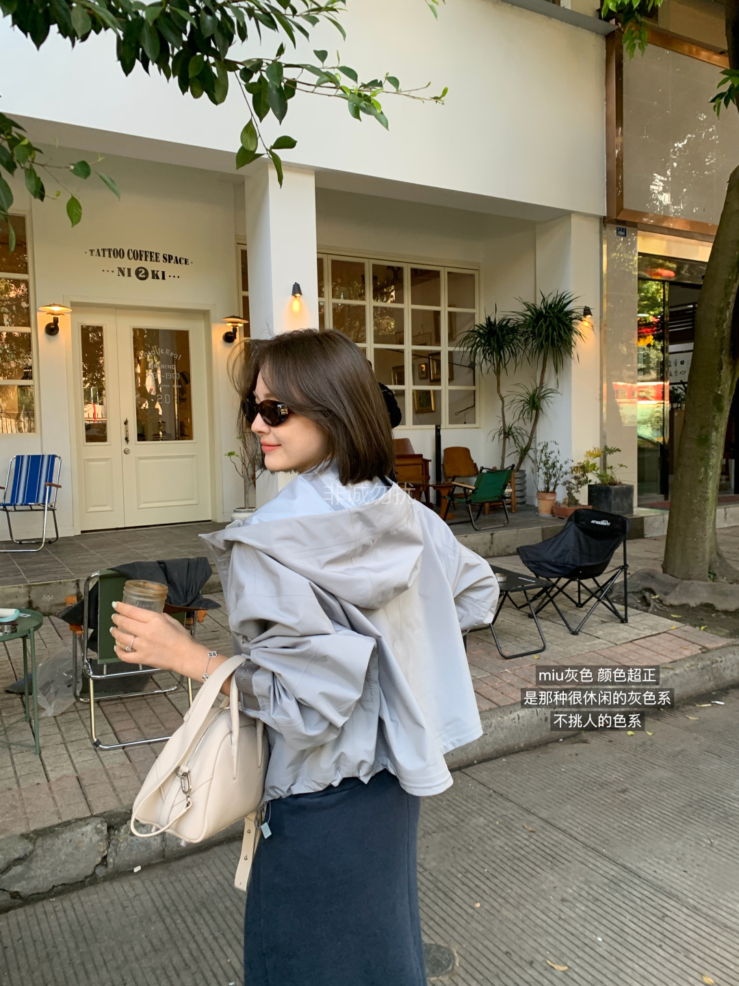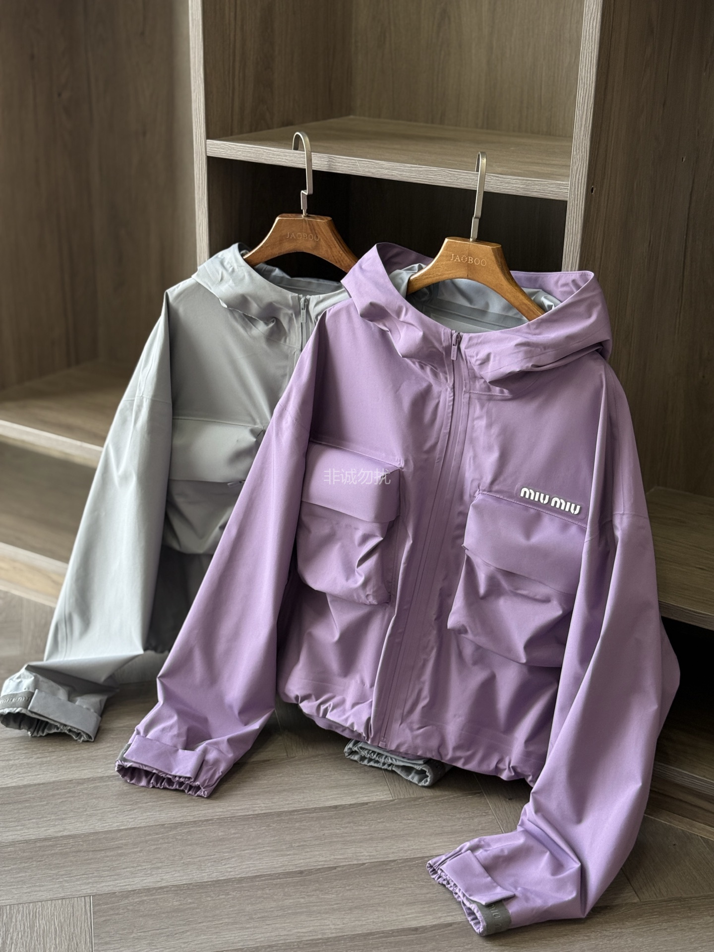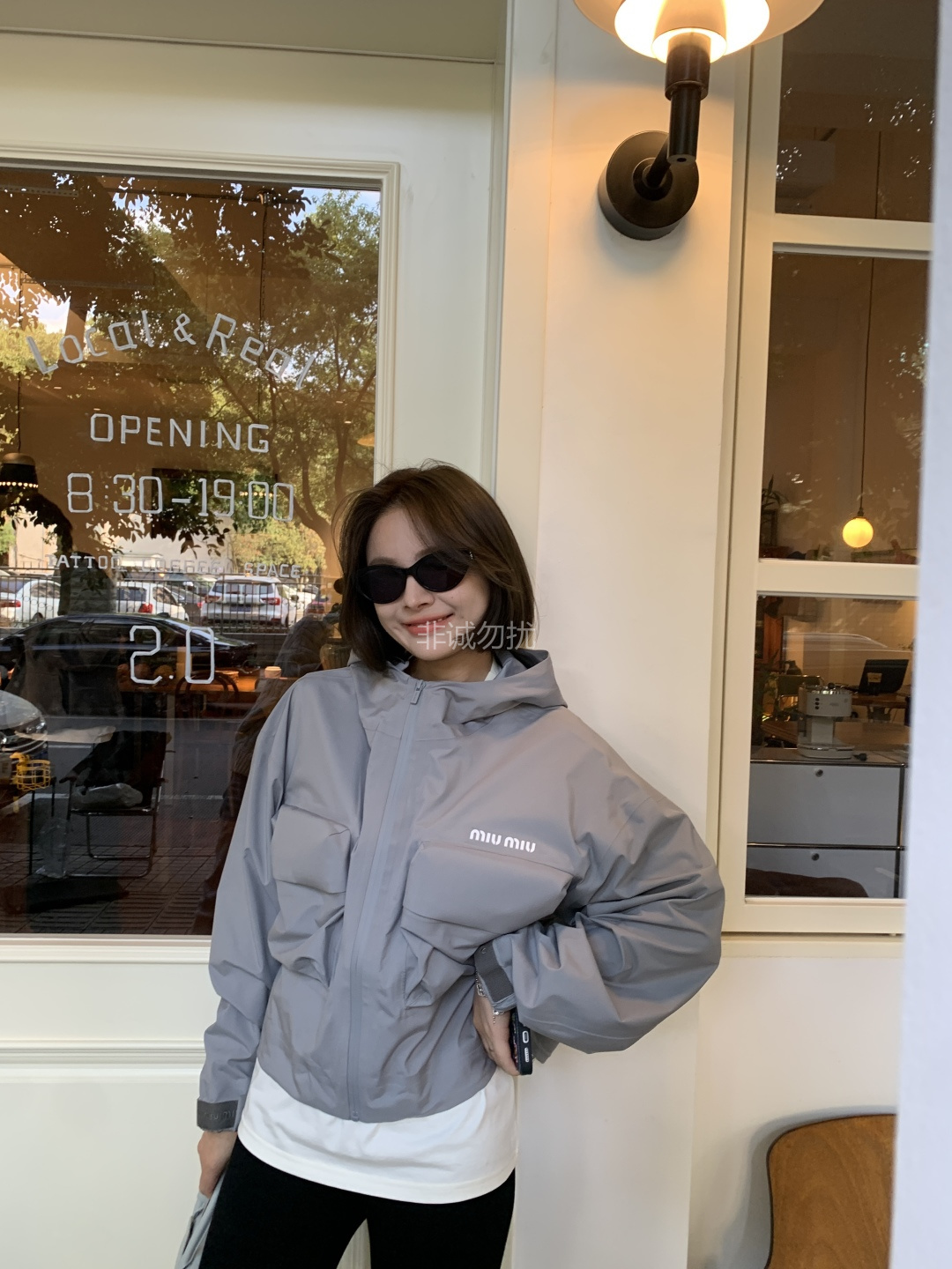miu女士连帽高科技再生纤维面料冲锋衣上身好看百搭!